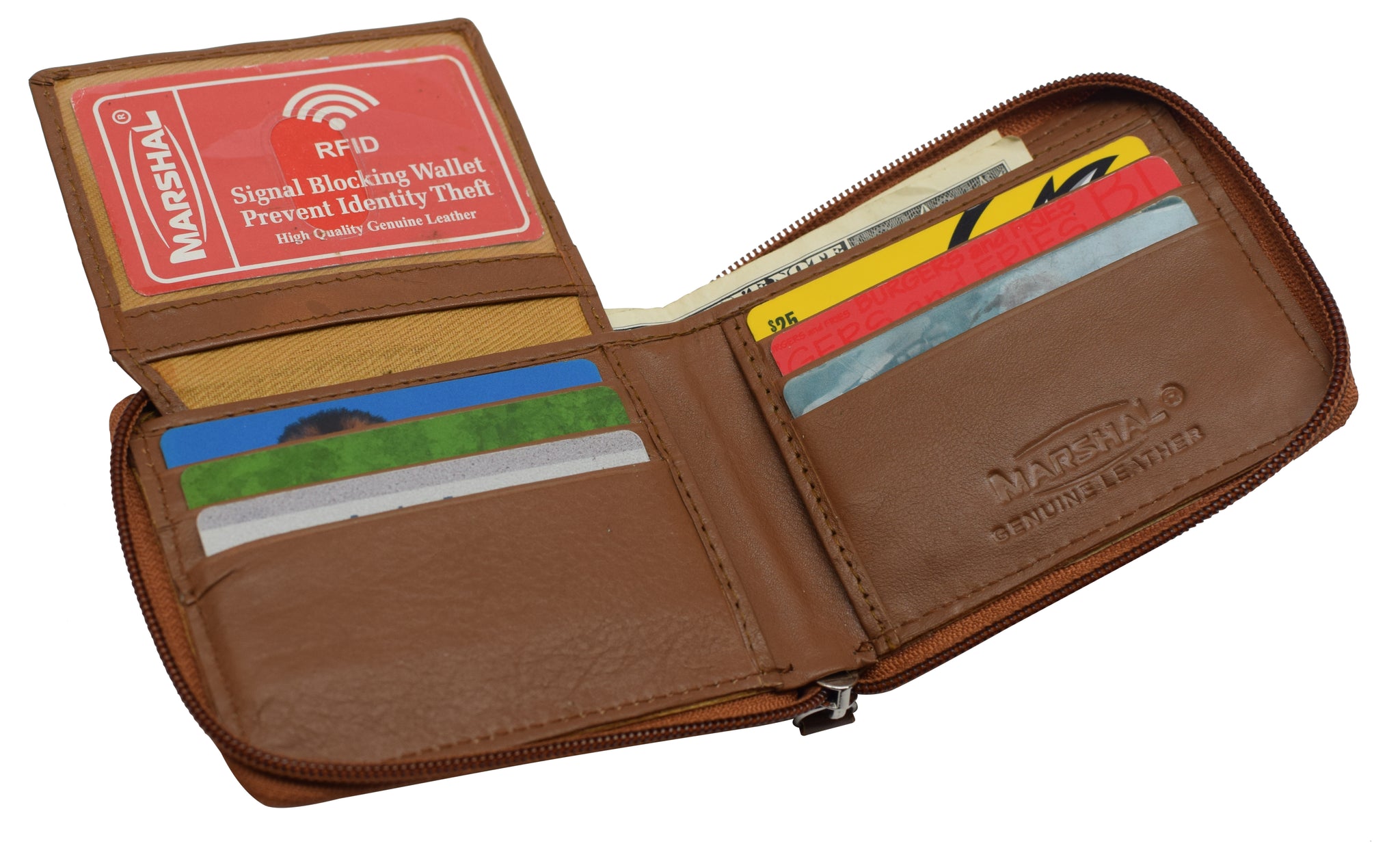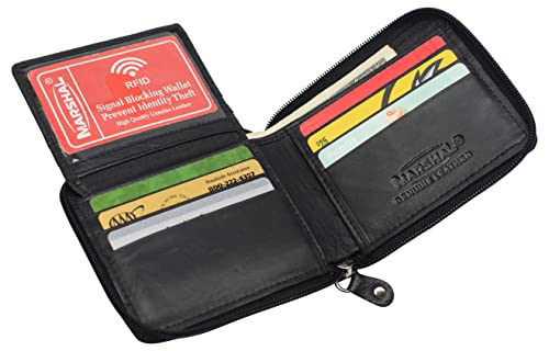 Brand: MarshalFeatures: Genuine Leather Leather lining Bifold zipper closure TOP QUALITY: RFID protection against electronic...