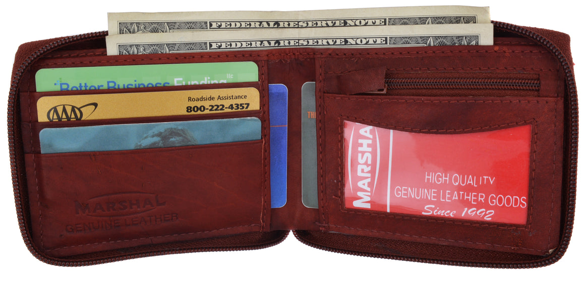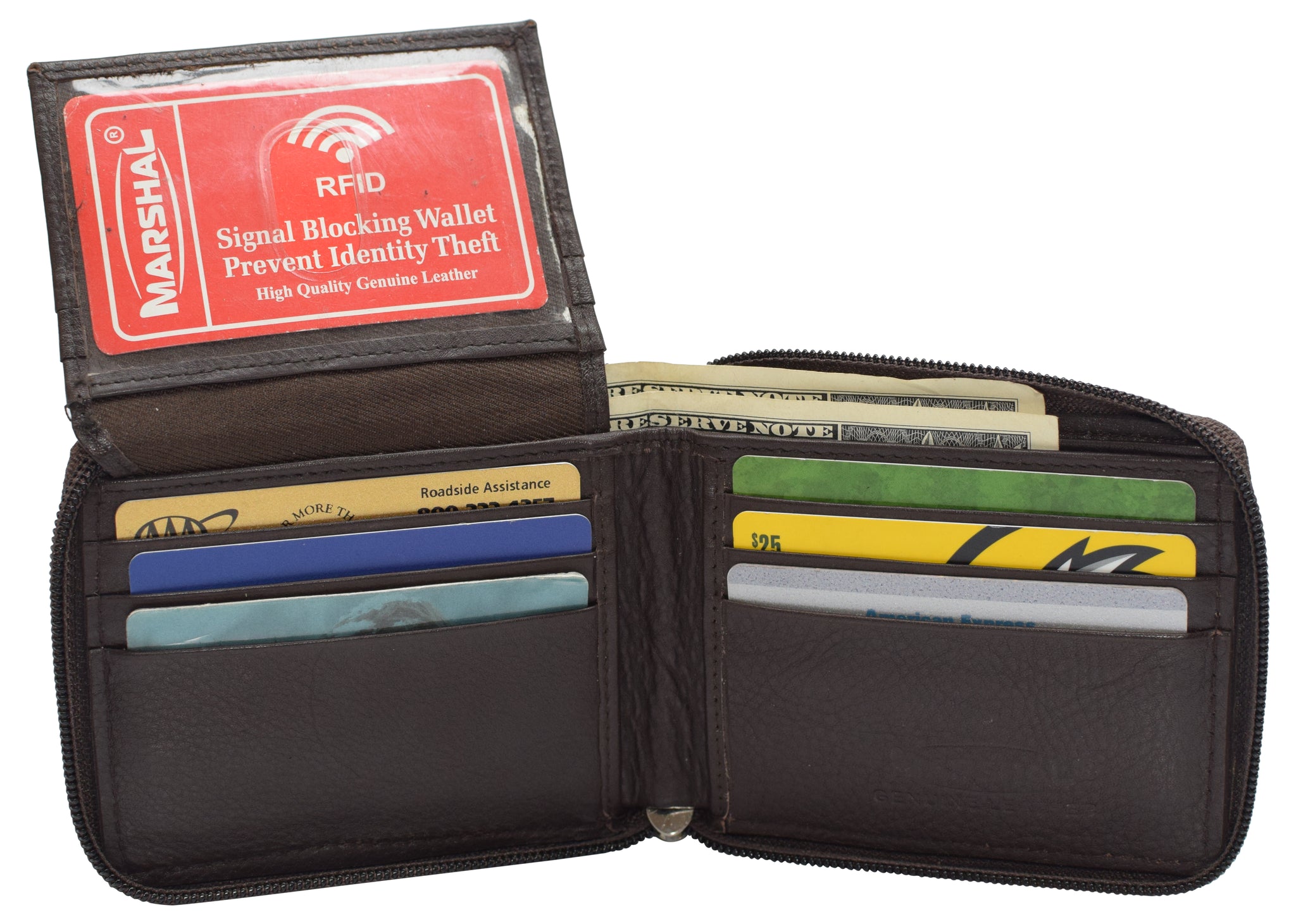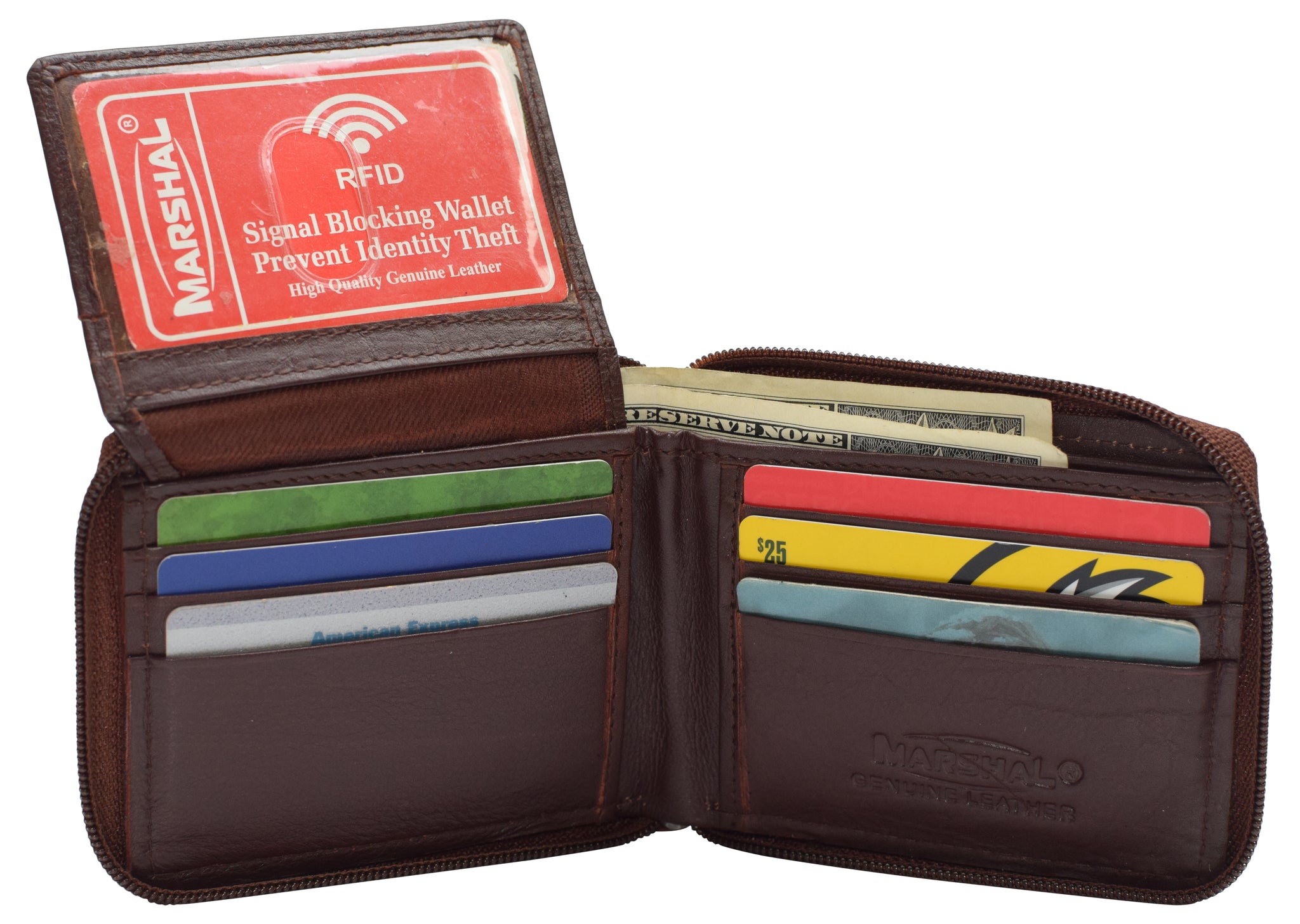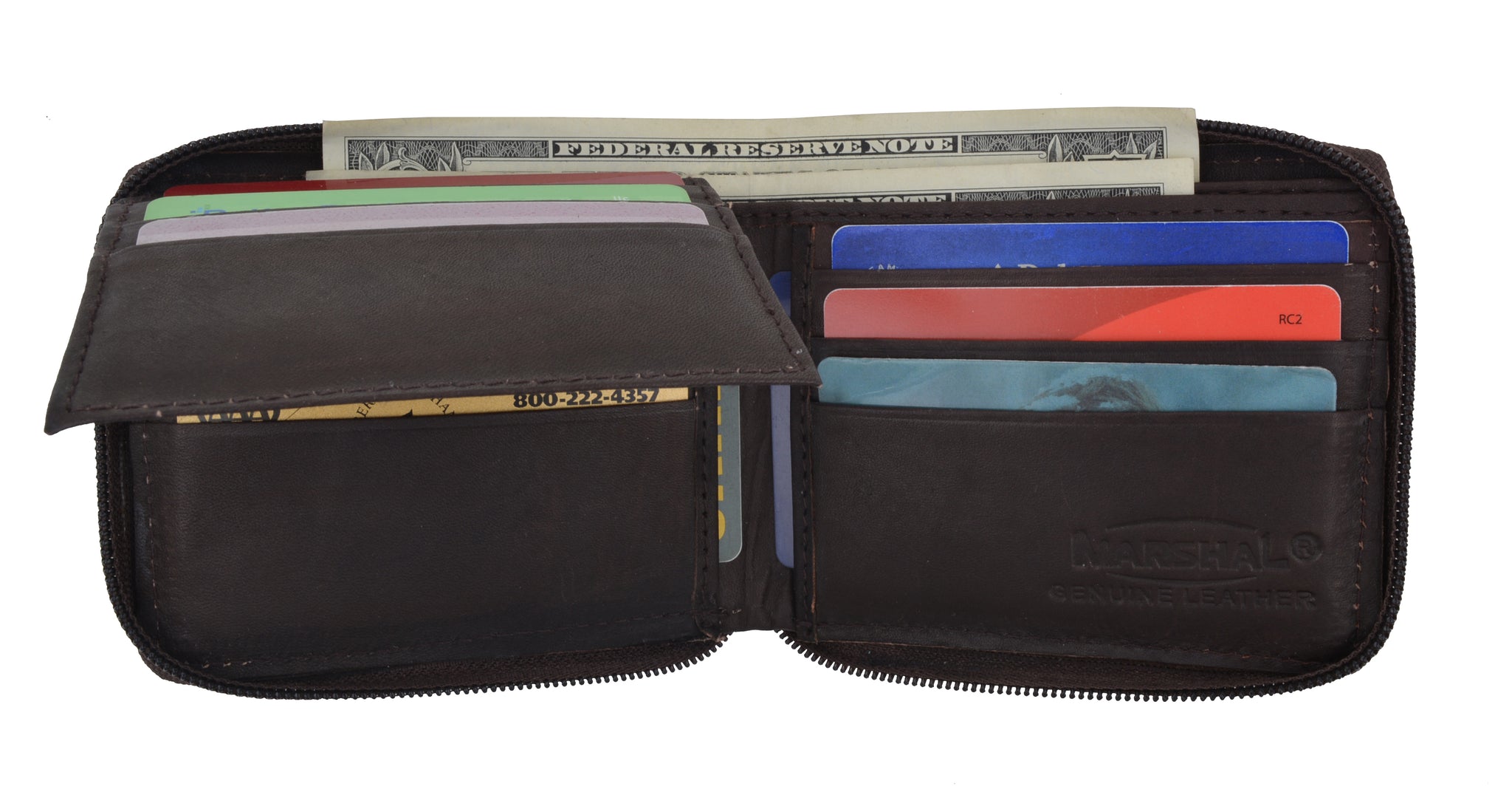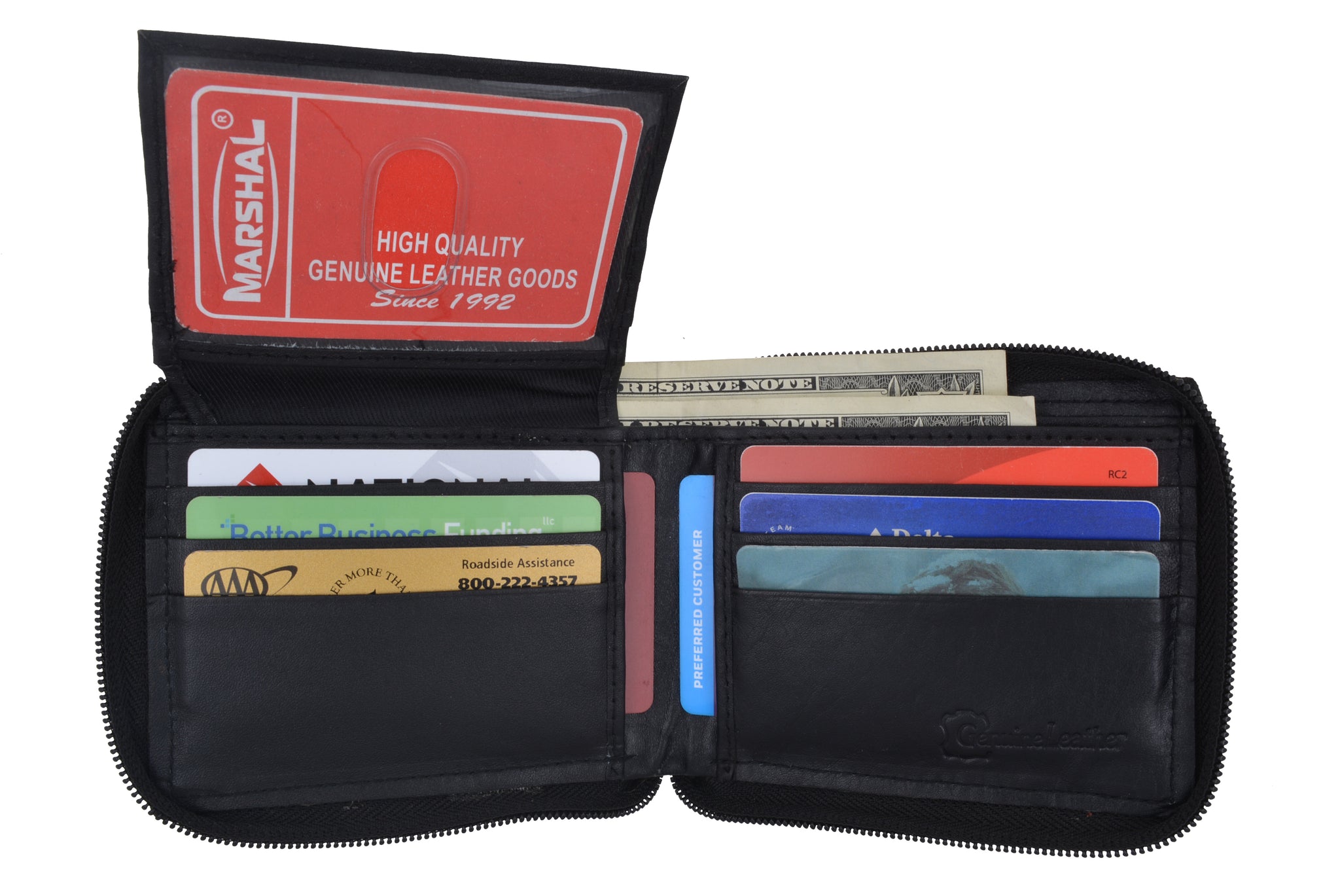 Brand: MarshalDetails: Material: Genuine Leather ID display window 2 Zippered Compartments Store and organize Multi-cards,...