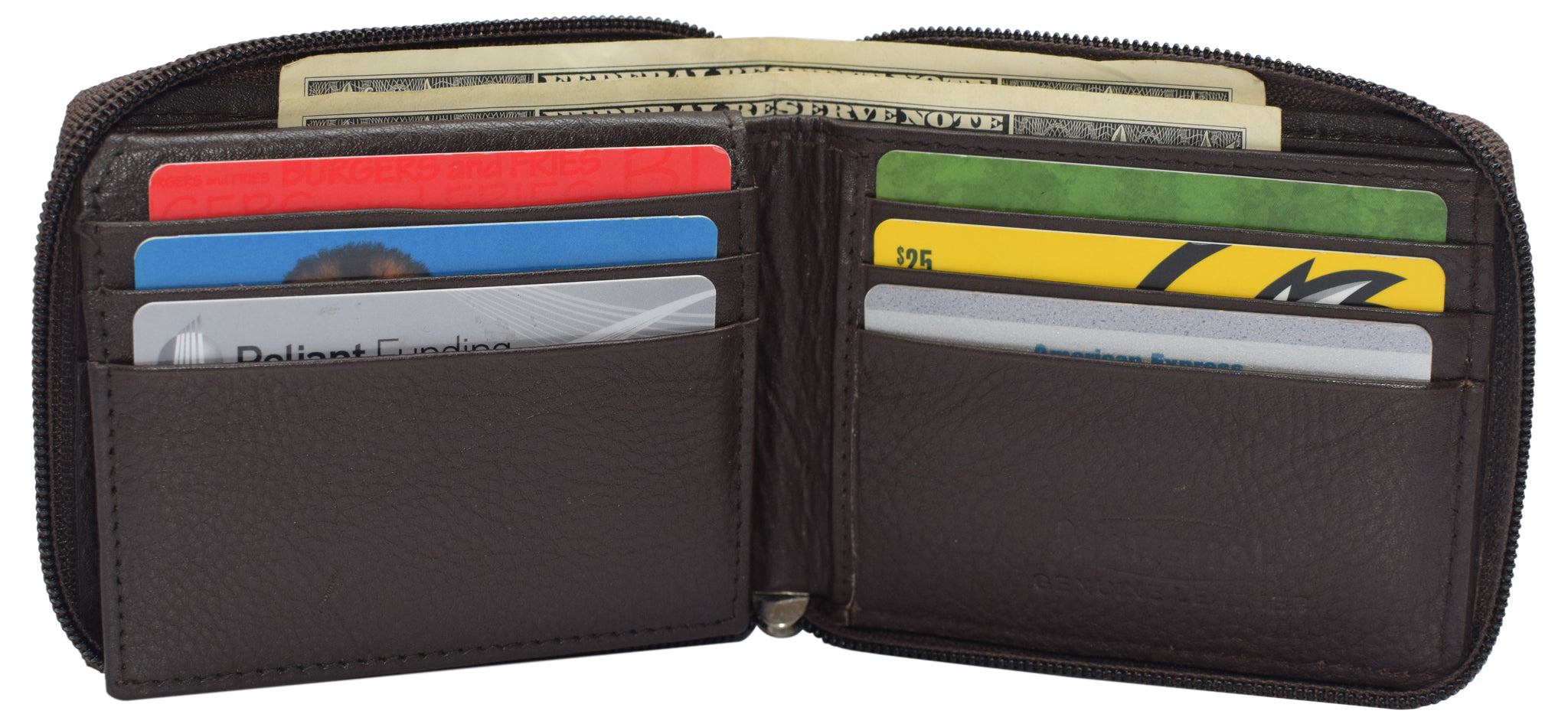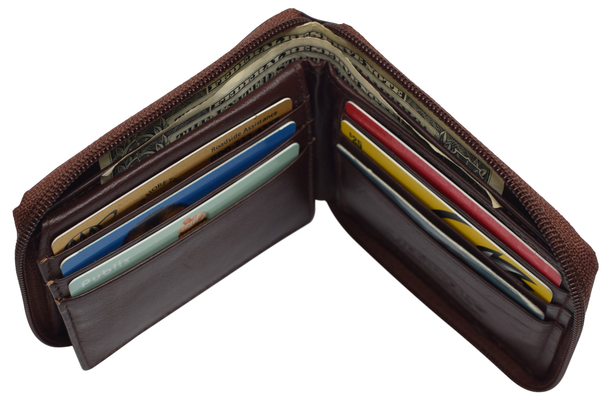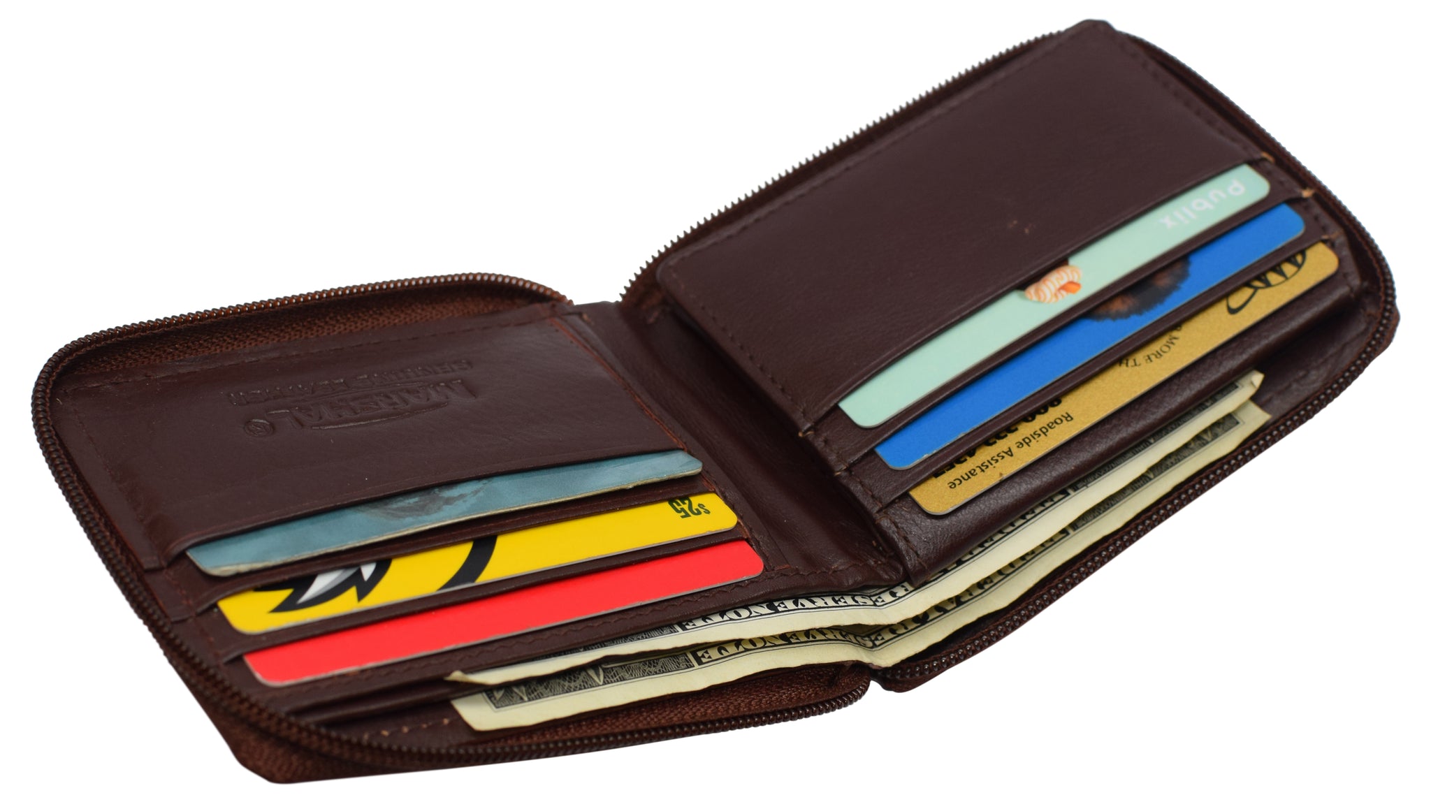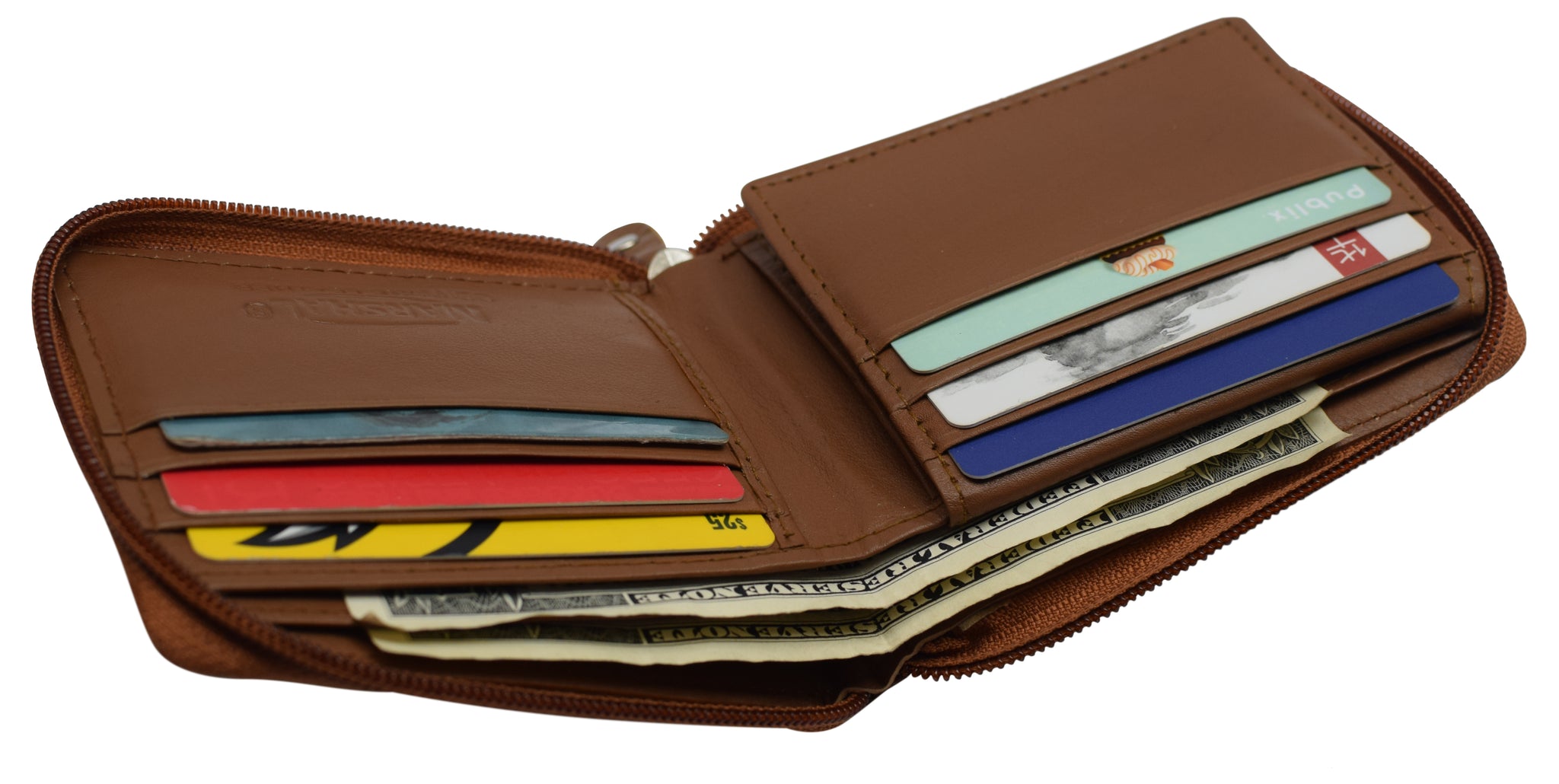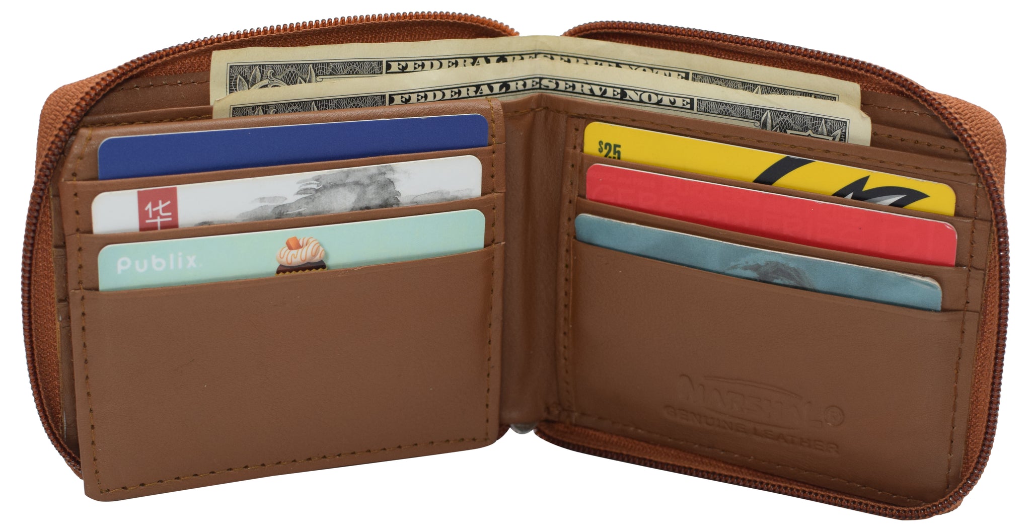 Brand: MarshalDetails: Material: Genuine Leather ID display window 2 Zippered Compartments Store and organize Multi-cards,...