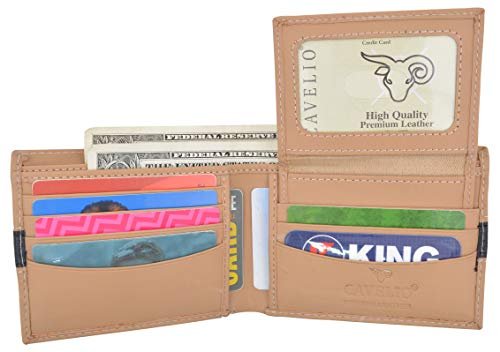 Brand: CavelioColor: TanFeatures: Premium Leather Mens Bifold Wallet 10 Credit Card Slots, ID Window (Flap)...