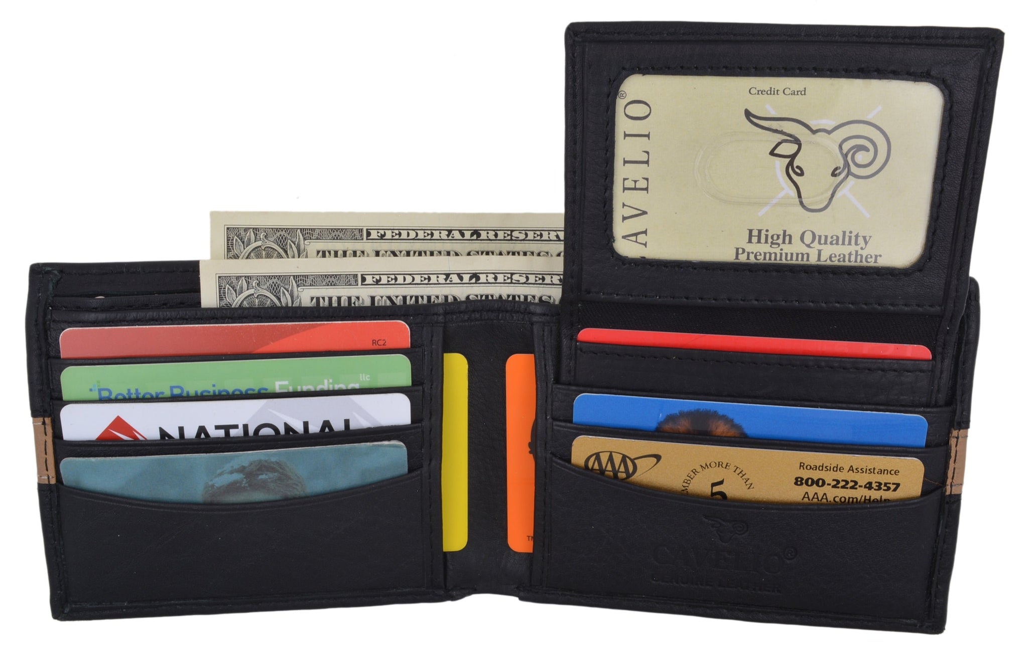 Brand: CavelioDetails: Genuine Leather Mens Bifold Wallet 11 Credit Card Slots 3 ID Windows 2...