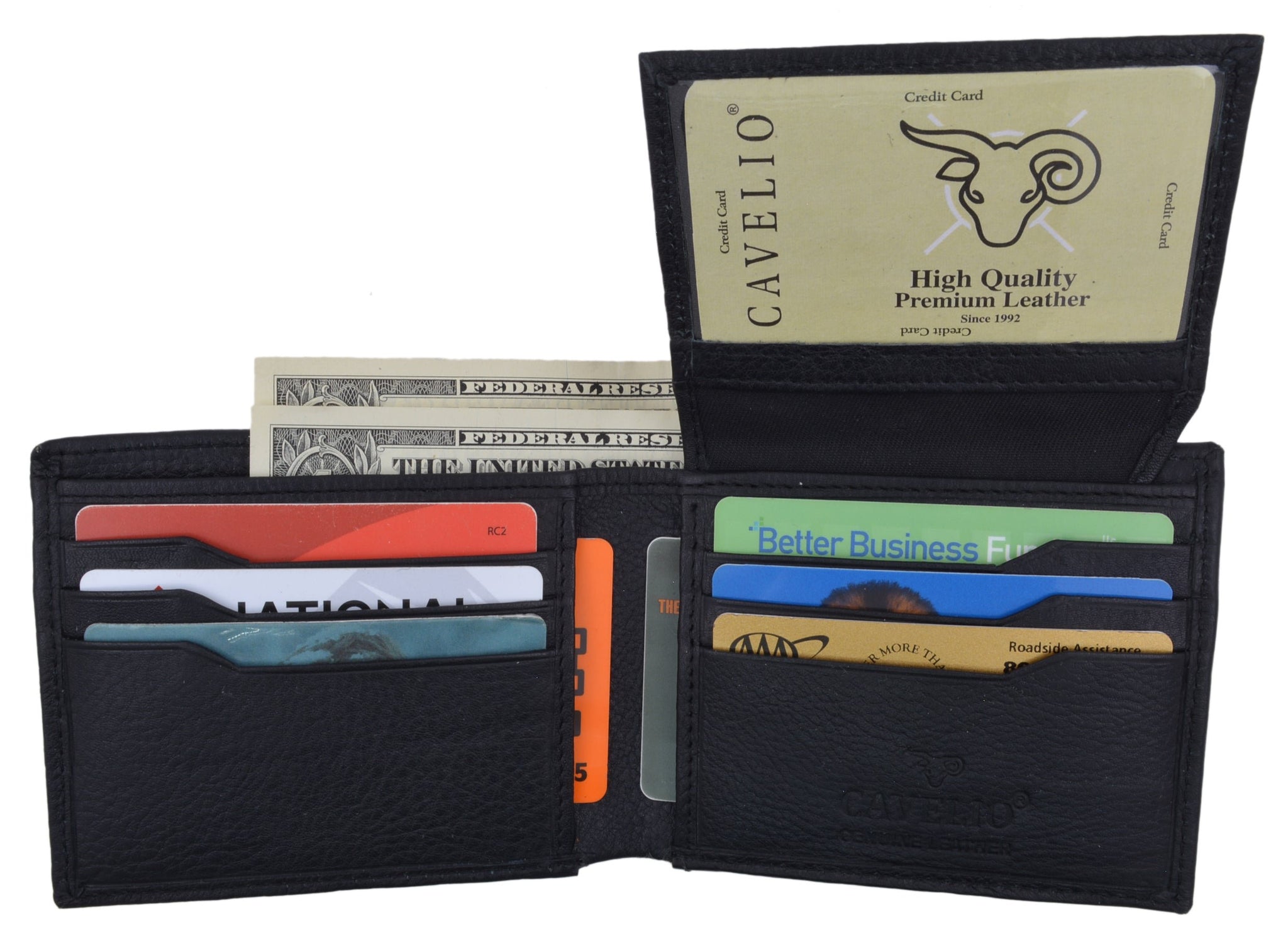 Brand: Cavelio Features: Premium Leather Bifold Wallet 11 Credit Card Slots, 3 ID Windows 2...