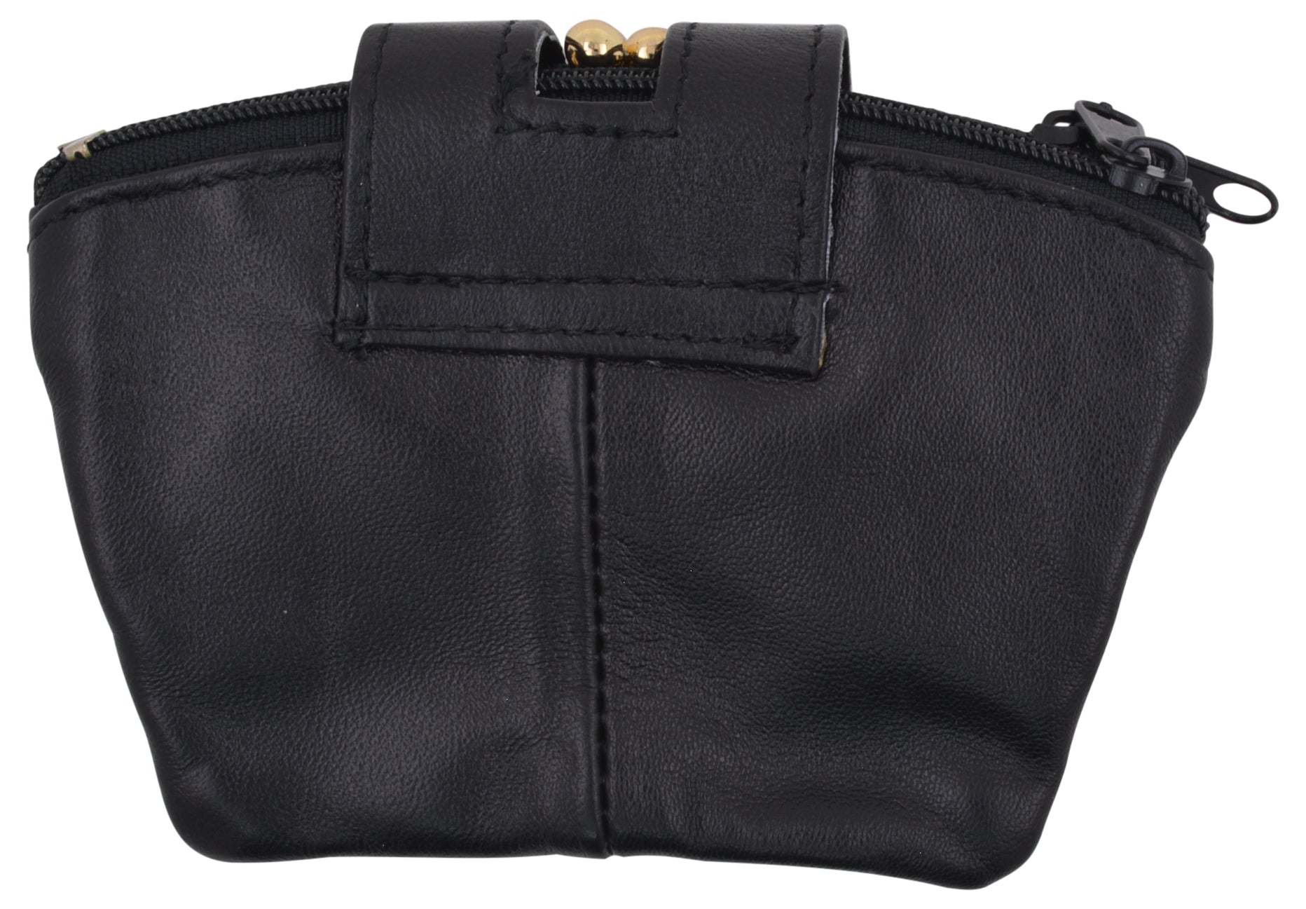 Leather change purse with snap button enclosureSize: 4" x 3.25" approxOther Features: Contains zipper compartment...