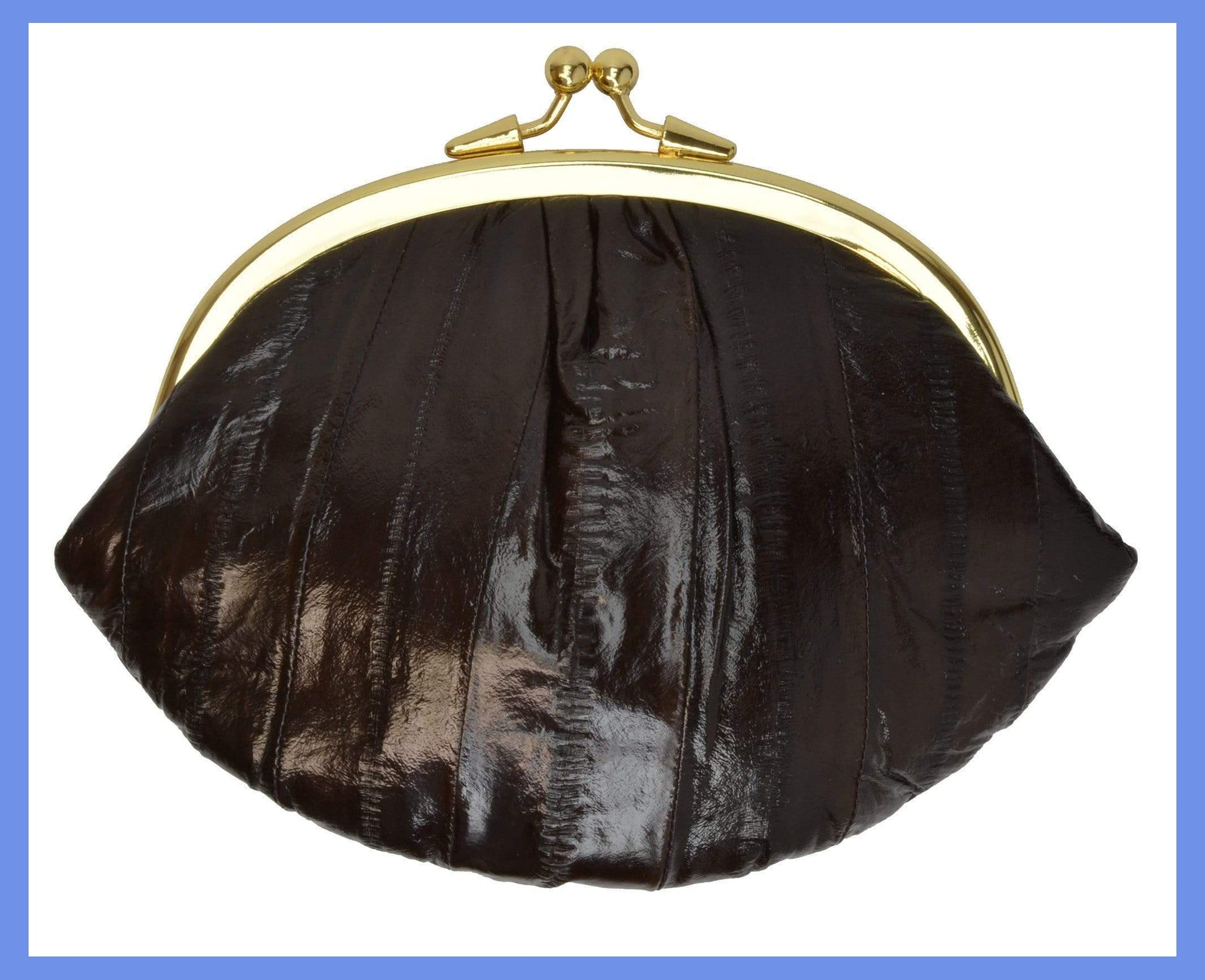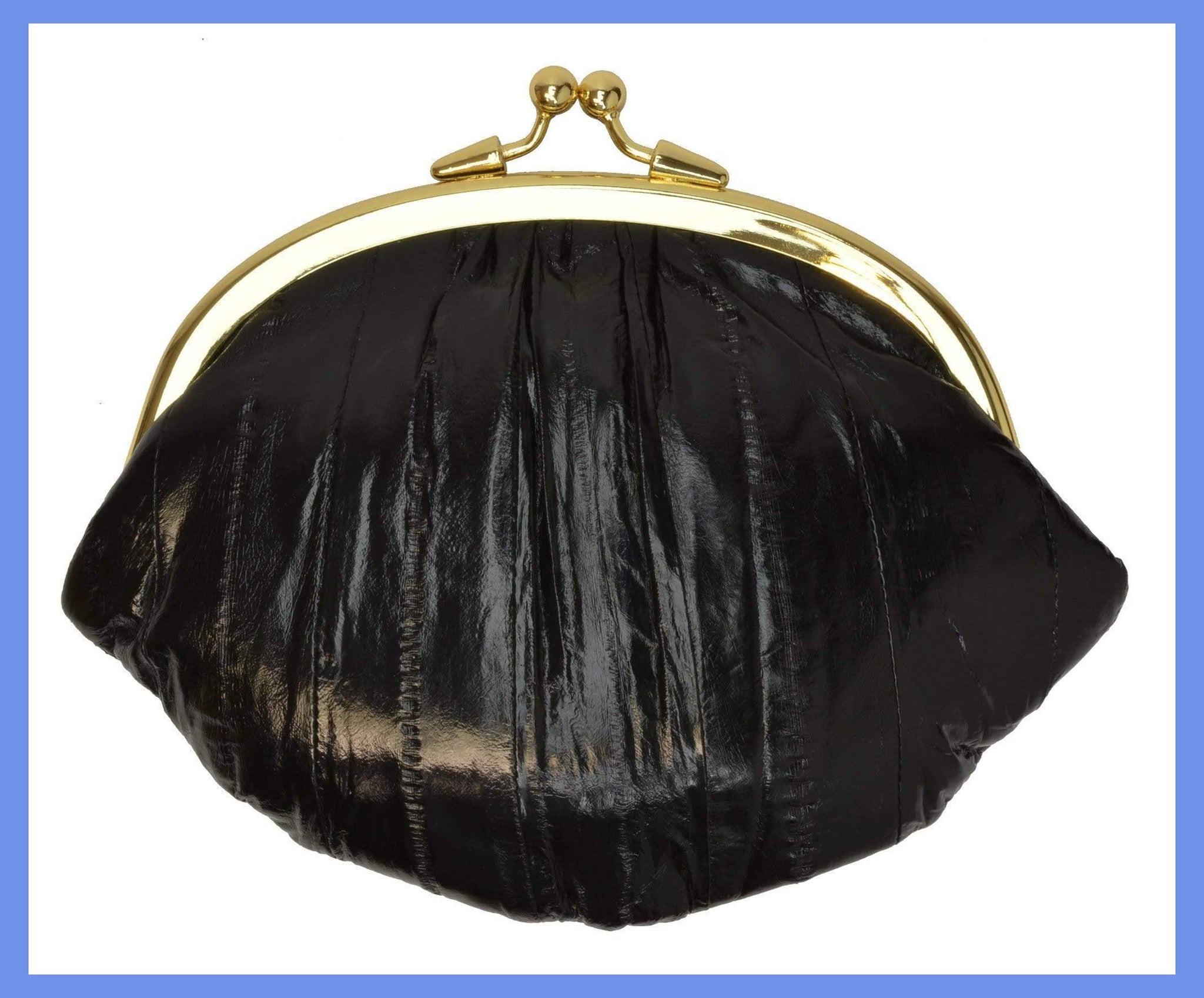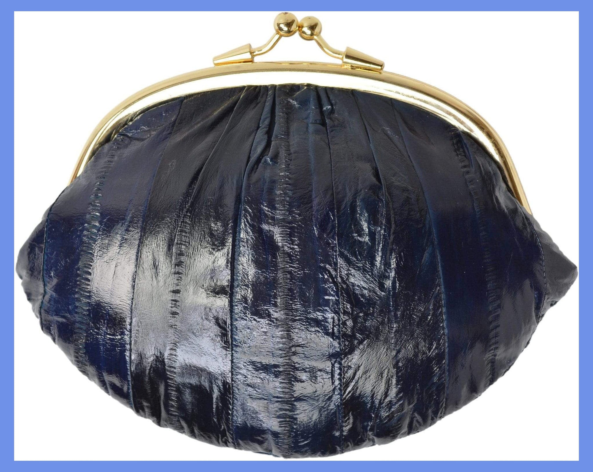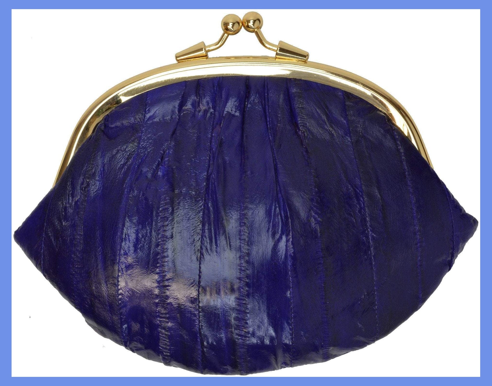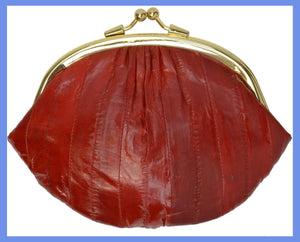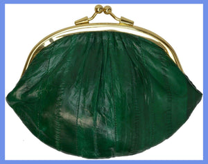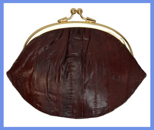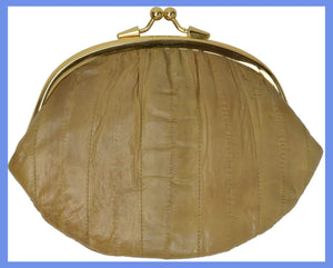 Material: Genuine Eel Skin Size: 7" x 5" approxTwist snap enclosure for bagInterior twist snap...