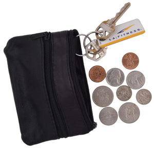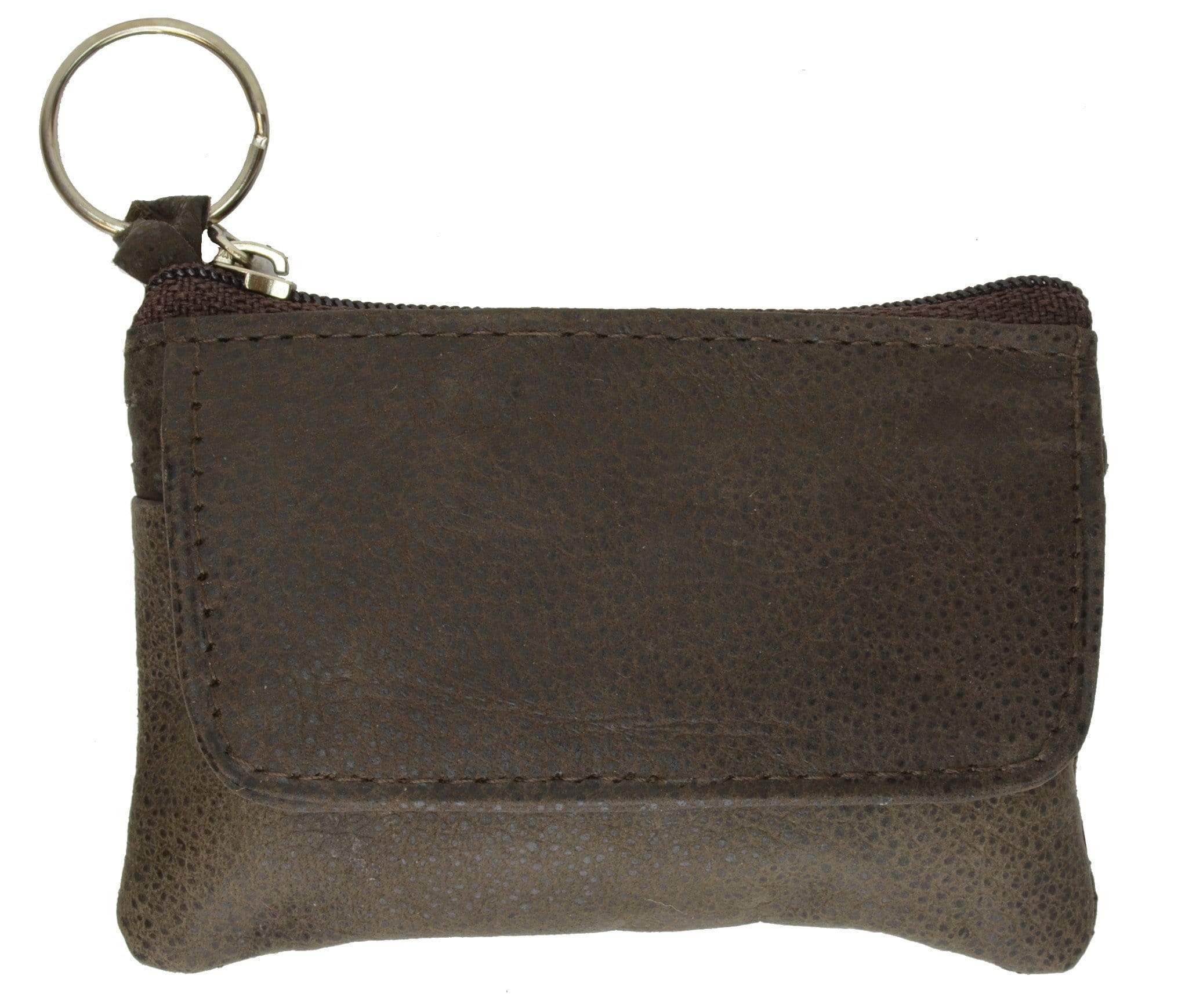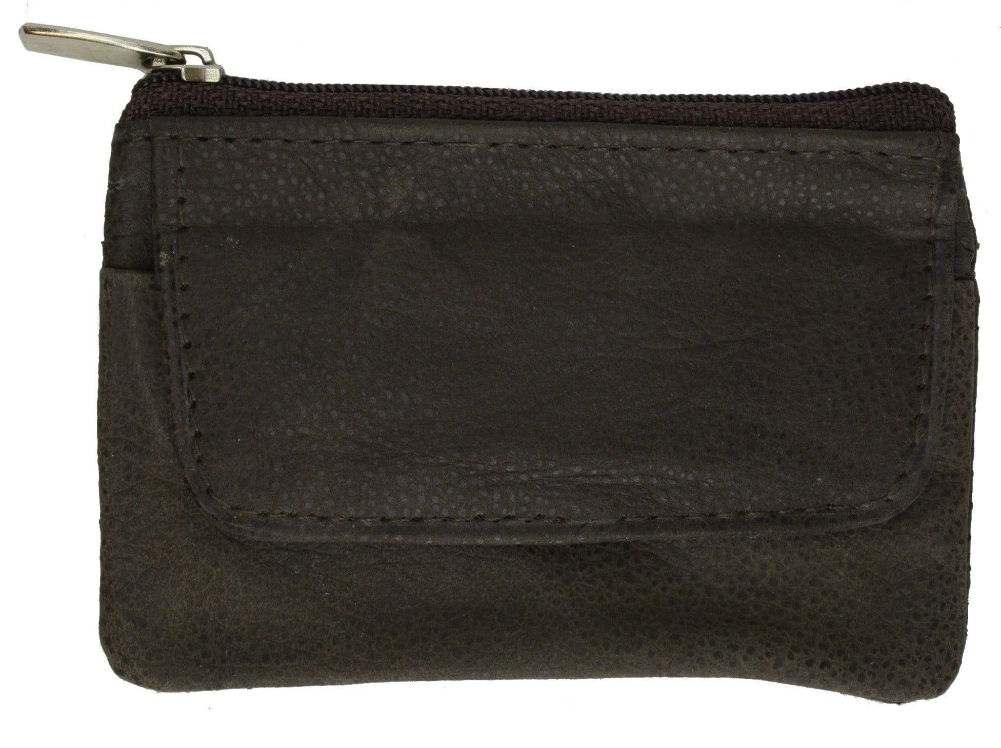 Leather change purse with zippered main pocketSize: 4" x 3" approxOther Features: Front pocket with...