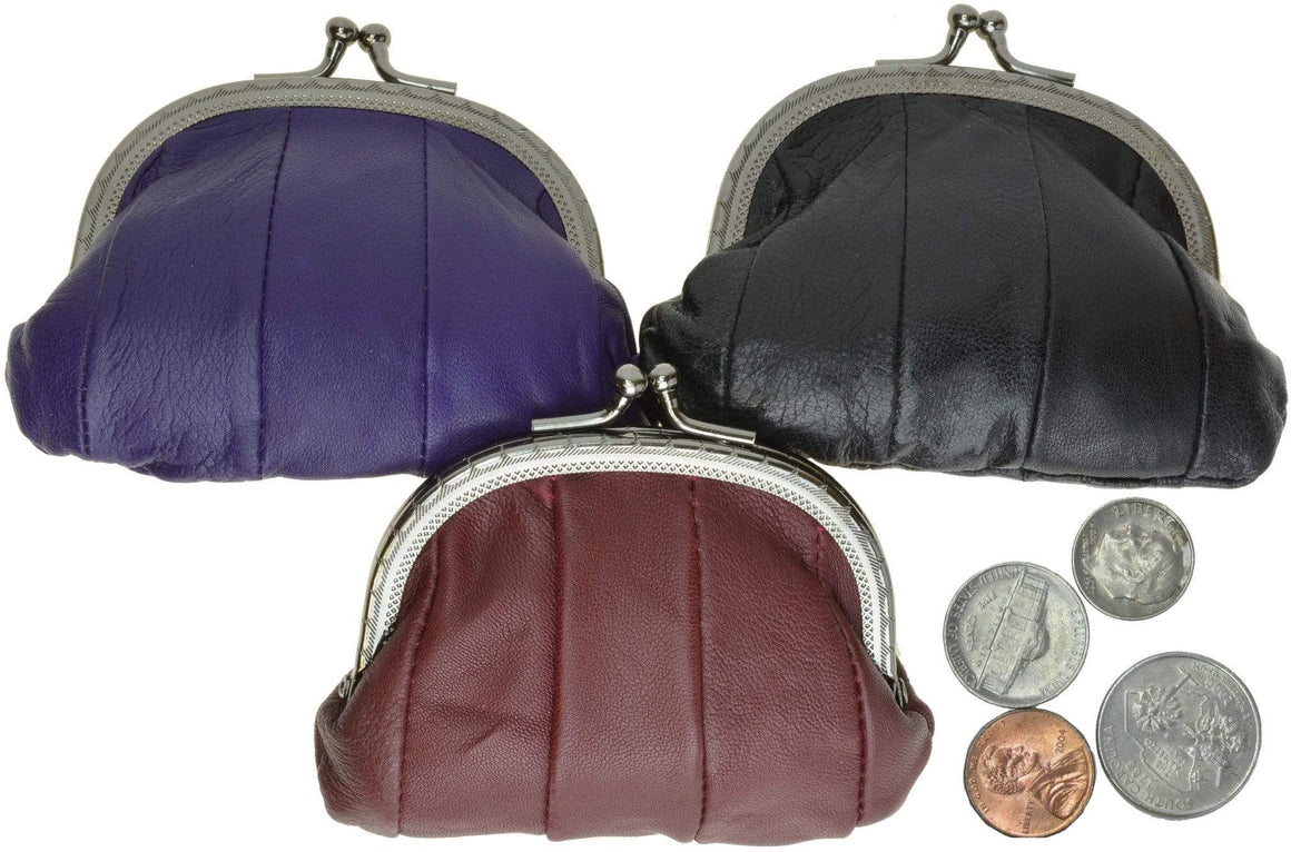 FREE SHIPPING Leather Squeeze Change Pouch Product Features: Measures 2 5/8" Diameter (Width) Made of...