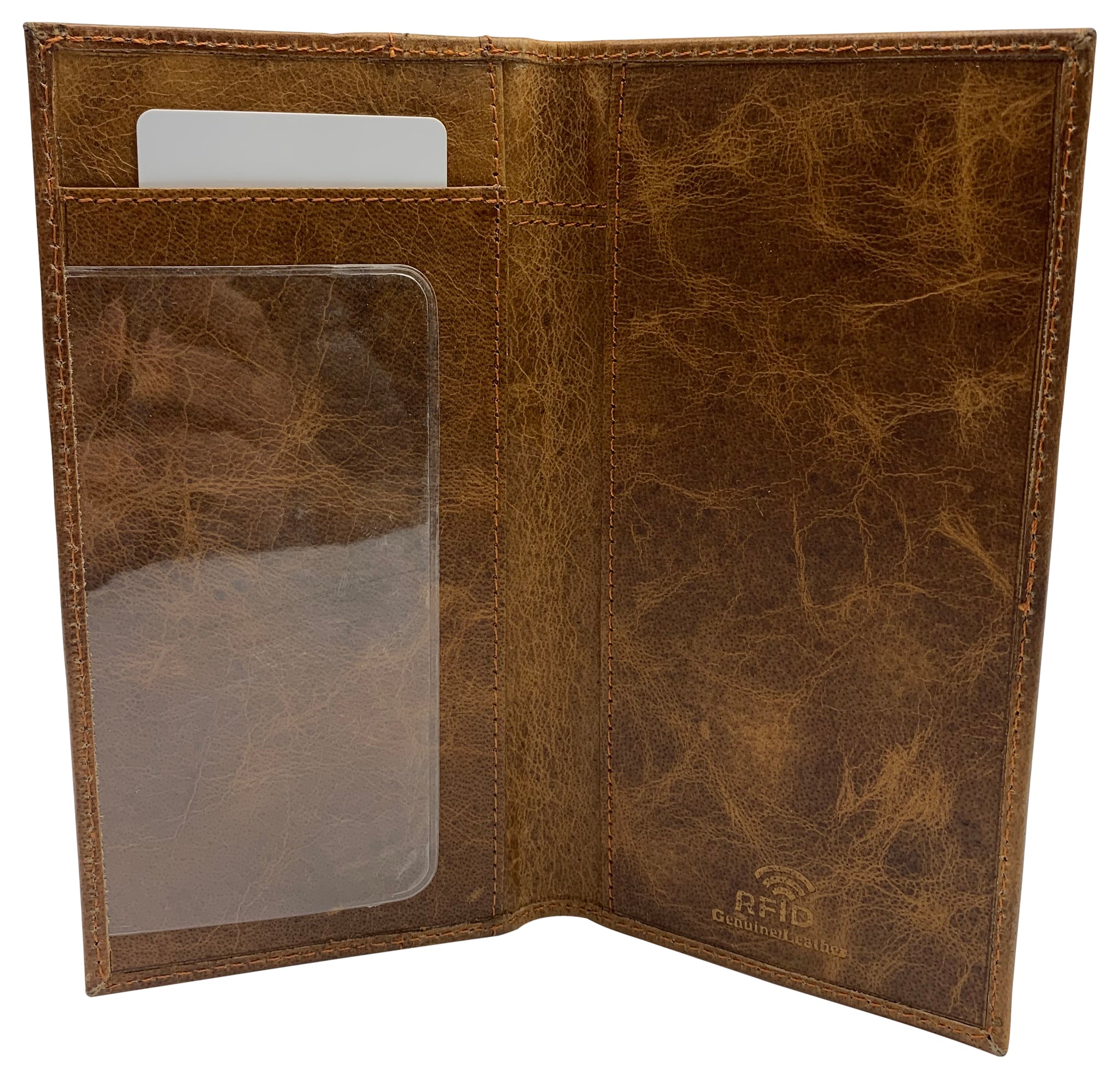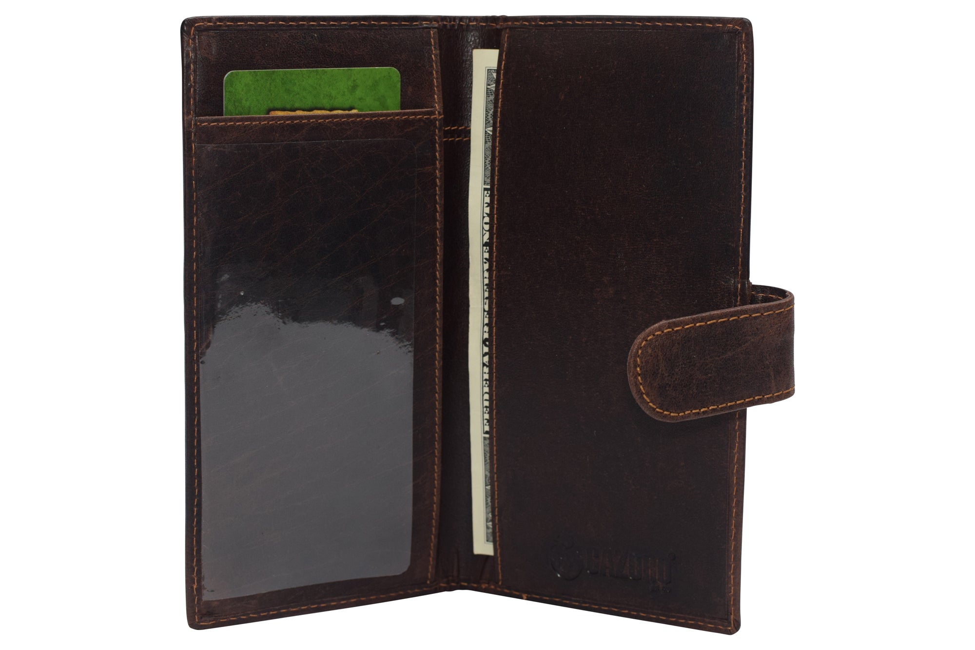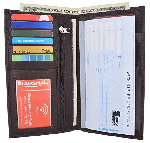 Material: Genuine LeatherCredit Card Slots: 5+ID Window: YesOther Features: Checkbook Compartment, Zippered Compartment, Snap ClosureMeasurement:...