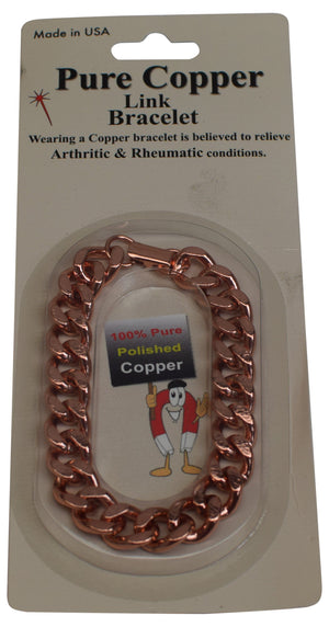 Details: SOLID COPPER ABOUT 3/8 INCHES WIDE HEAVY CHAIN LINKED BRACELET ABOUT 8.5 INCHES LONG...