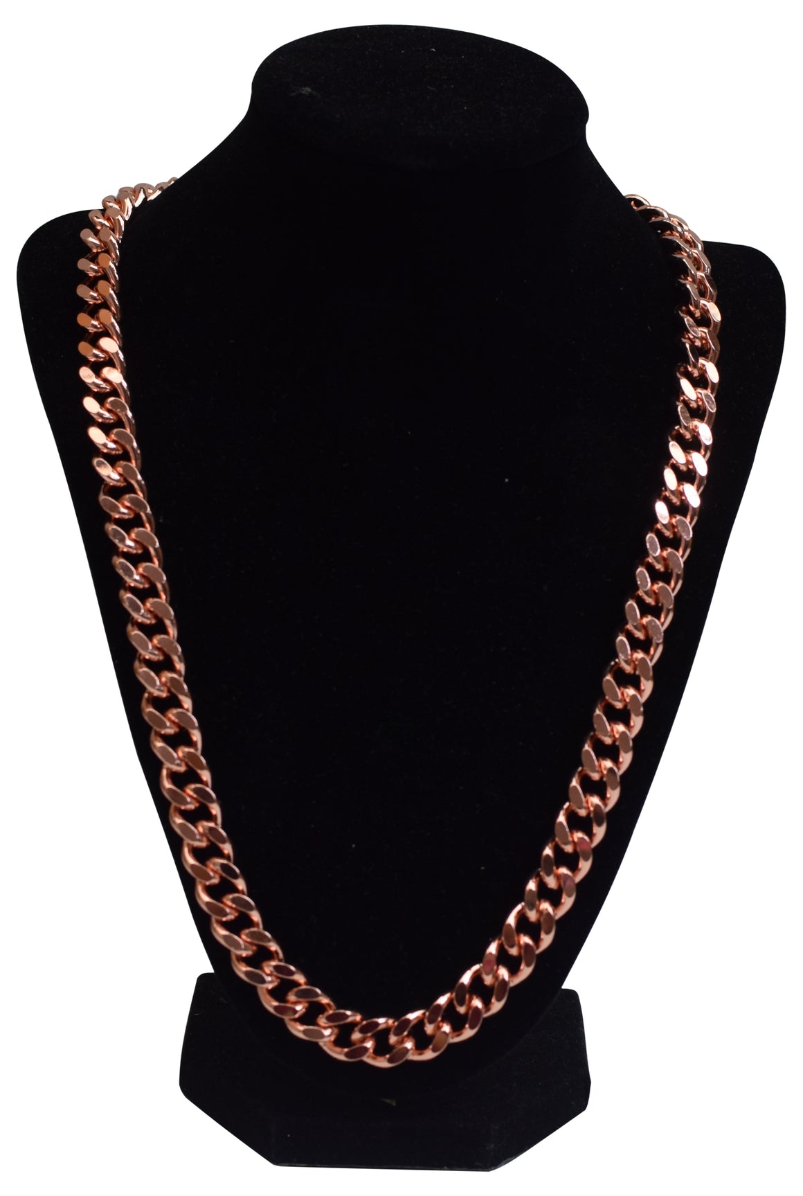 Details: SOLID COPPER ABOUT 3/8 INCHES WIDE HEAVY CHAIN LINKED NECKLACE ABOUT 24 INCHES LONG...