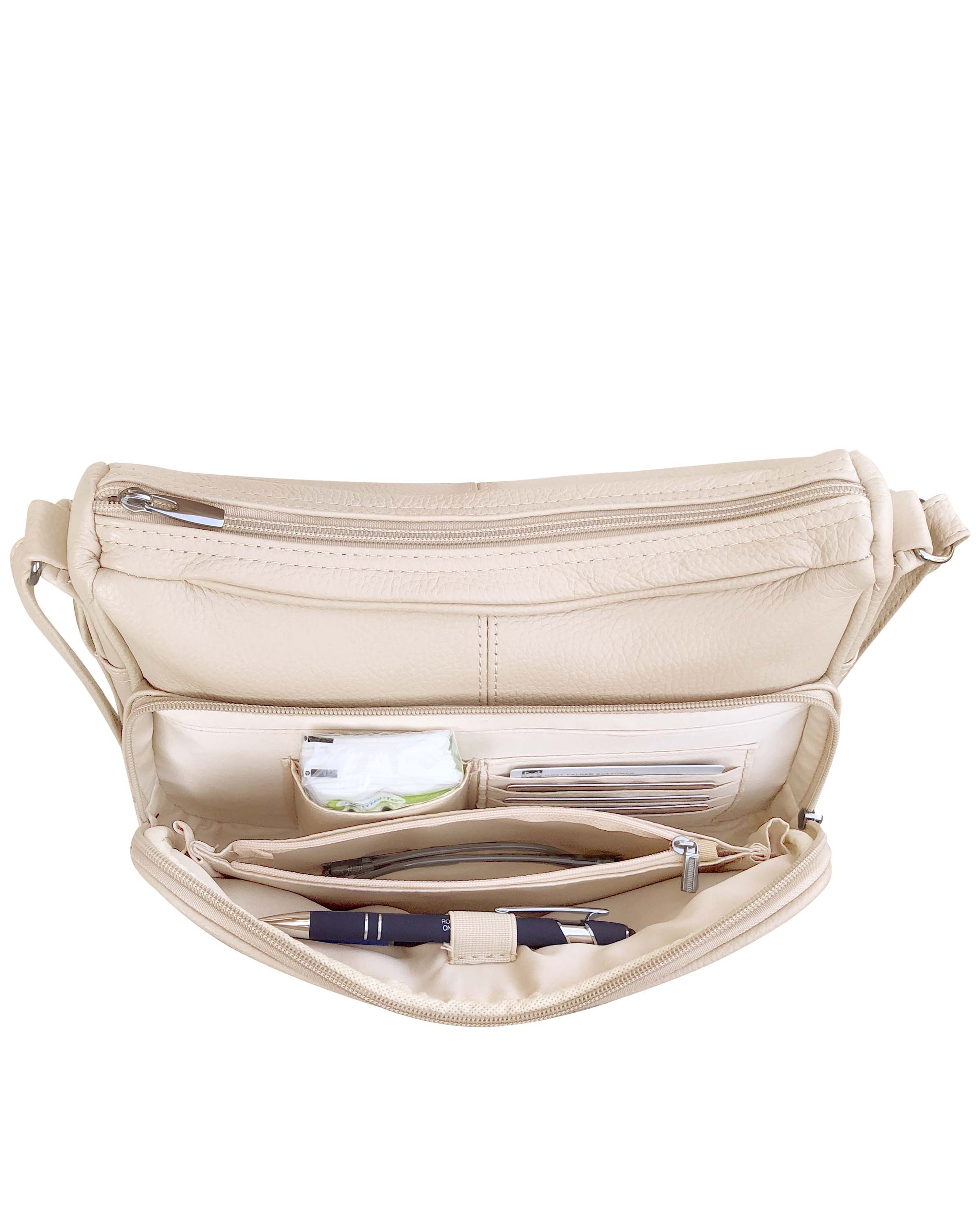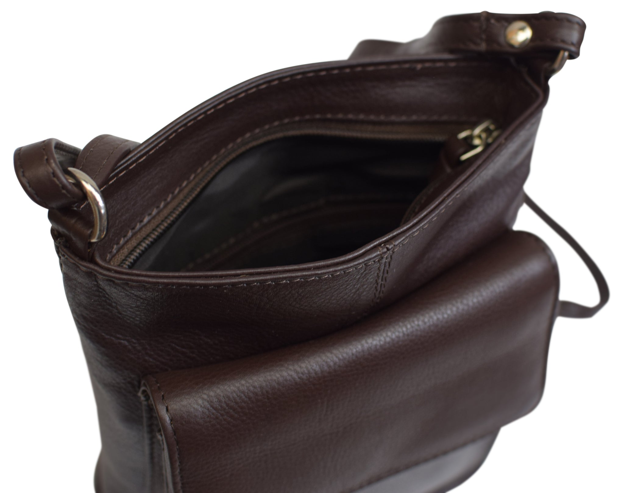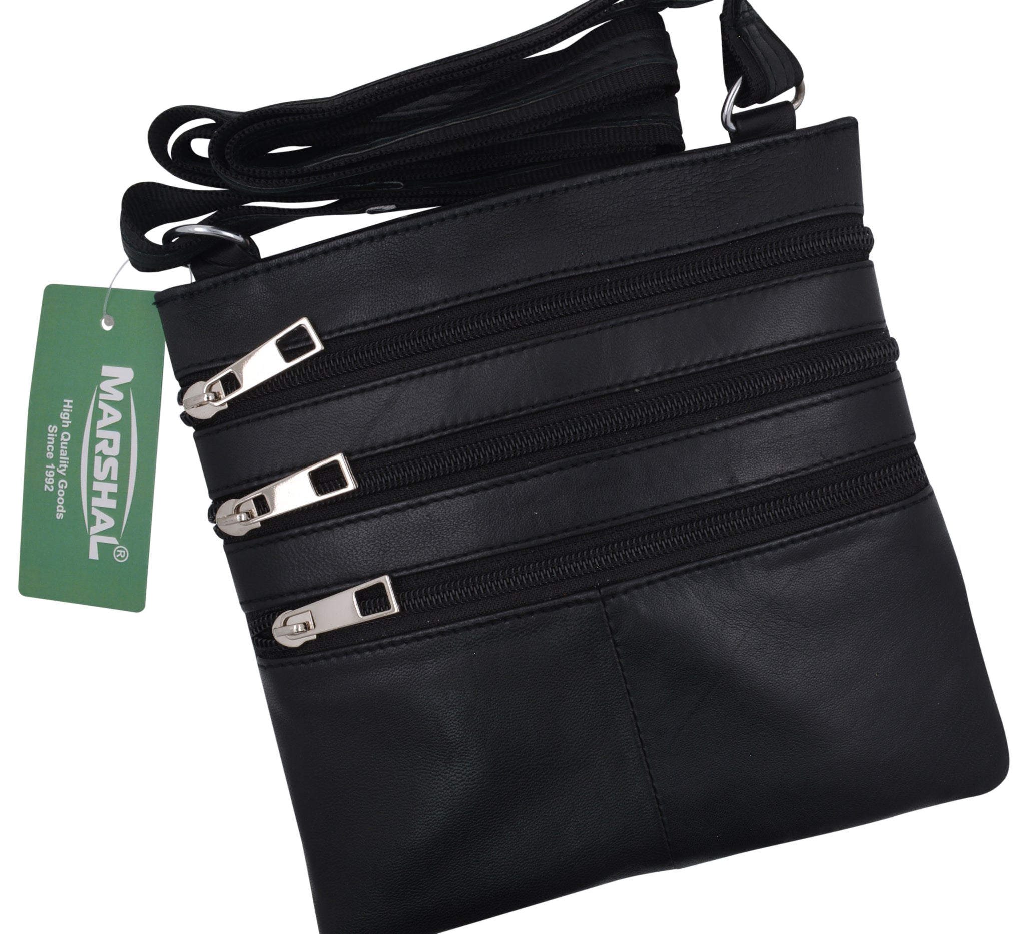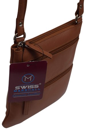 Brand: Marshal Details: Genuine Leather Hand Crafted Ladies Crossbody Bag Front: 3 Front Zipper...