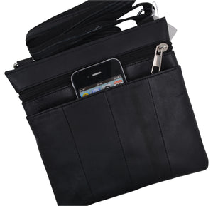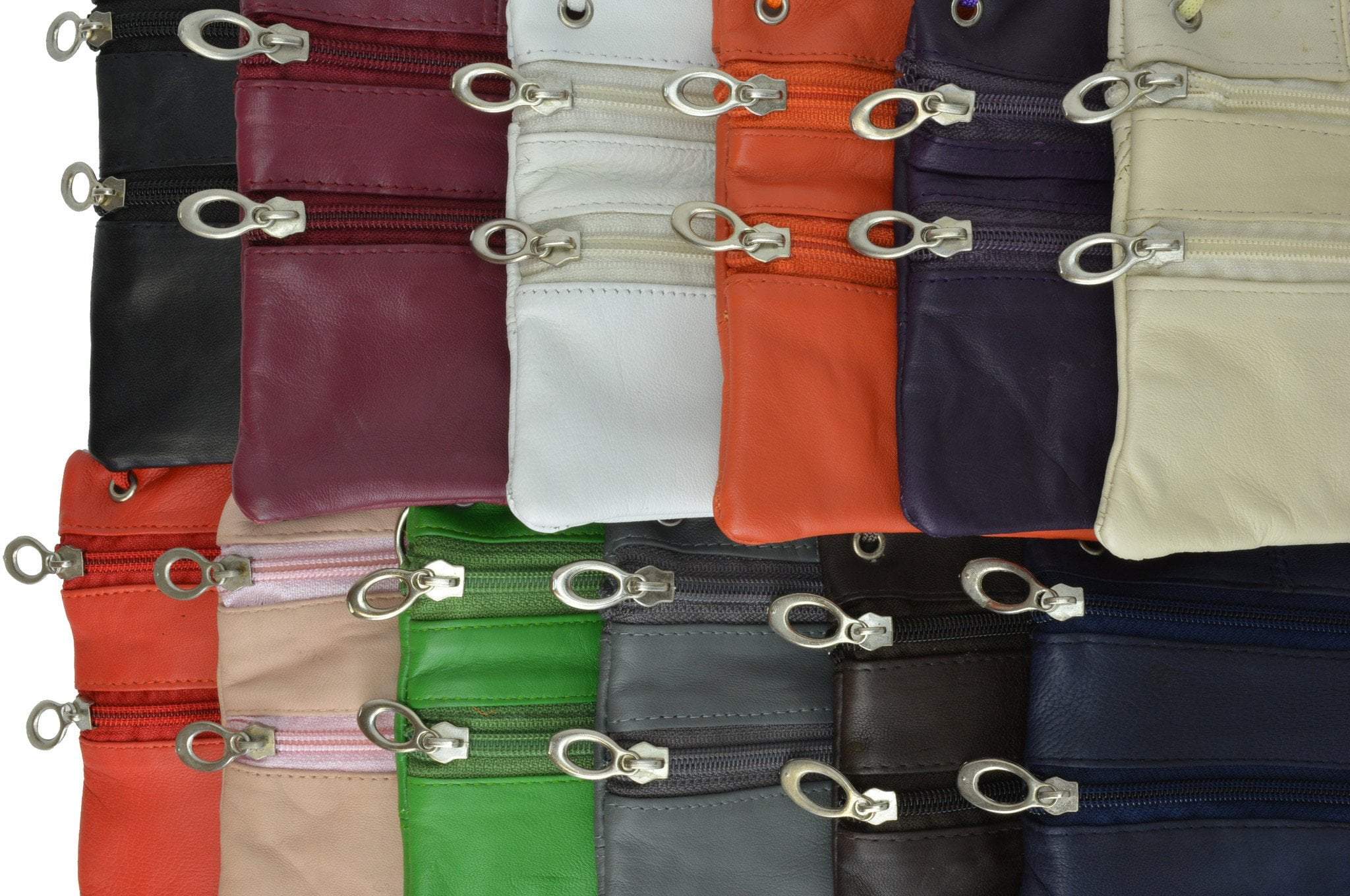 Material: Genuine LeatherSize: 5"; x 7" approxOther features: Two zippered pockets; One snap close pocketOur...
