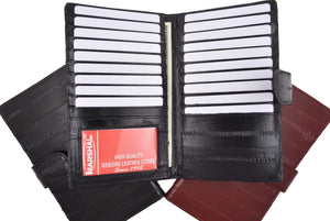 Material: Genuine Eel Skin Size: 3"; x 4"; (Folded) approx Credit Card Slots: 14+ I.D....