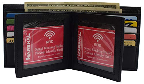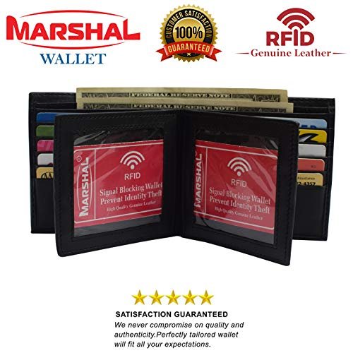 Brand: MarshalFeatures: Genuine Leather Hipster Bifold Wallet RFID Blocking Technology to protect your cards from...
