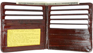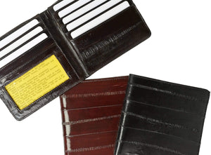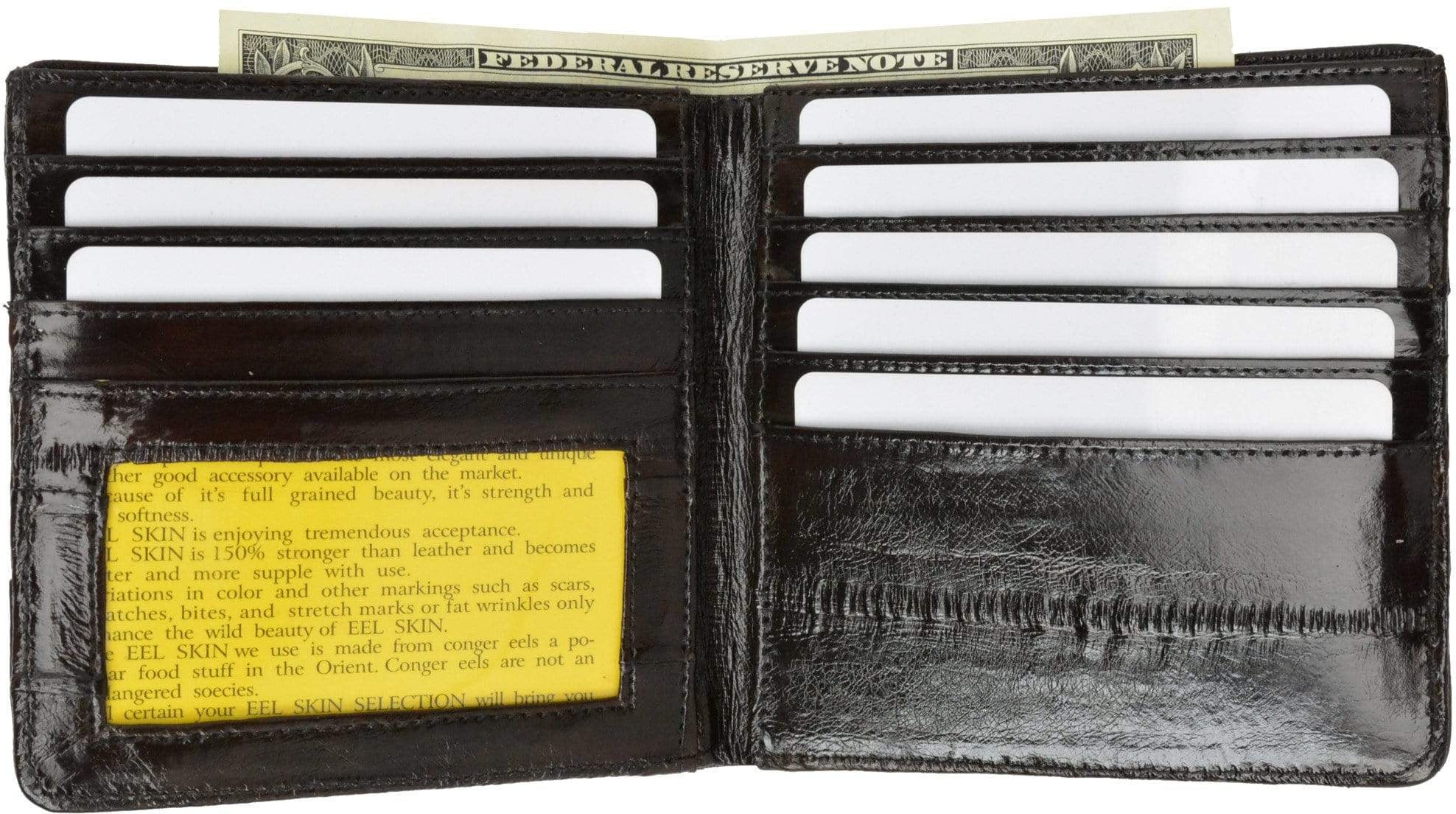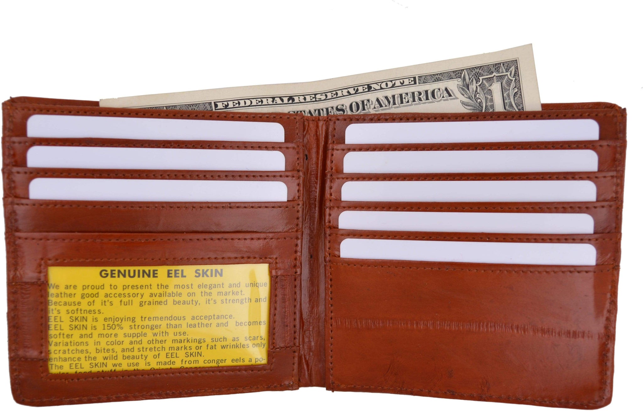 Material: Genuine Eel Skin Bi-fold Hipster walletSize: 8.5"; x 3.5"; (Opened) and 4" x 3.5"...