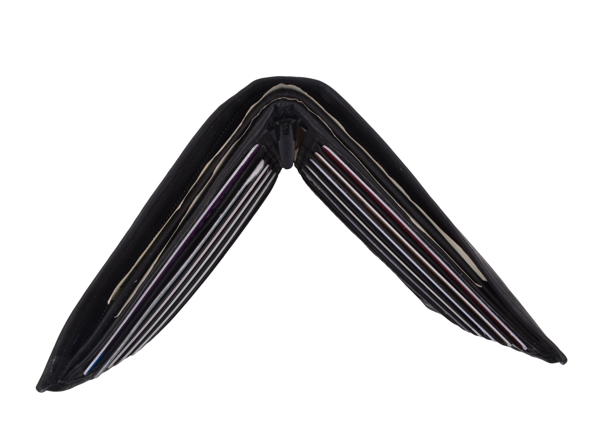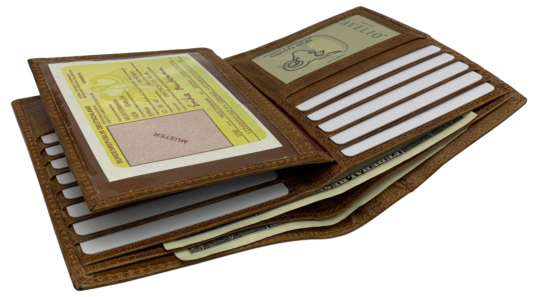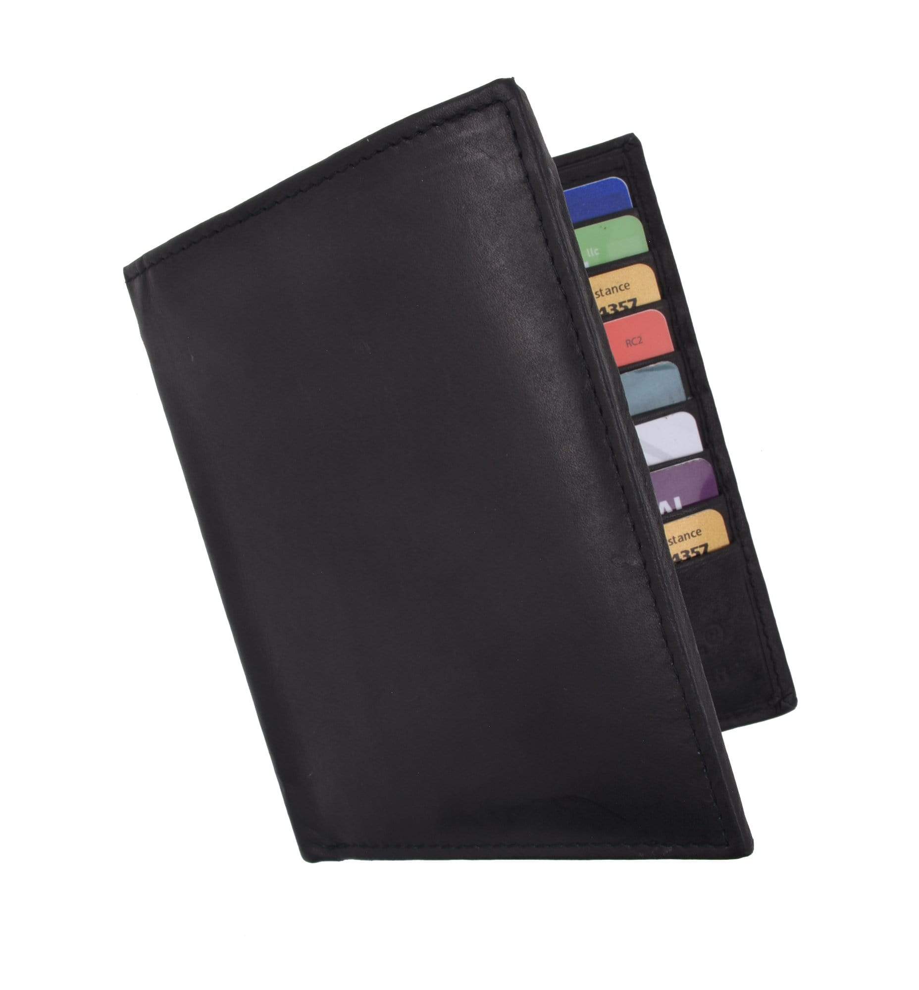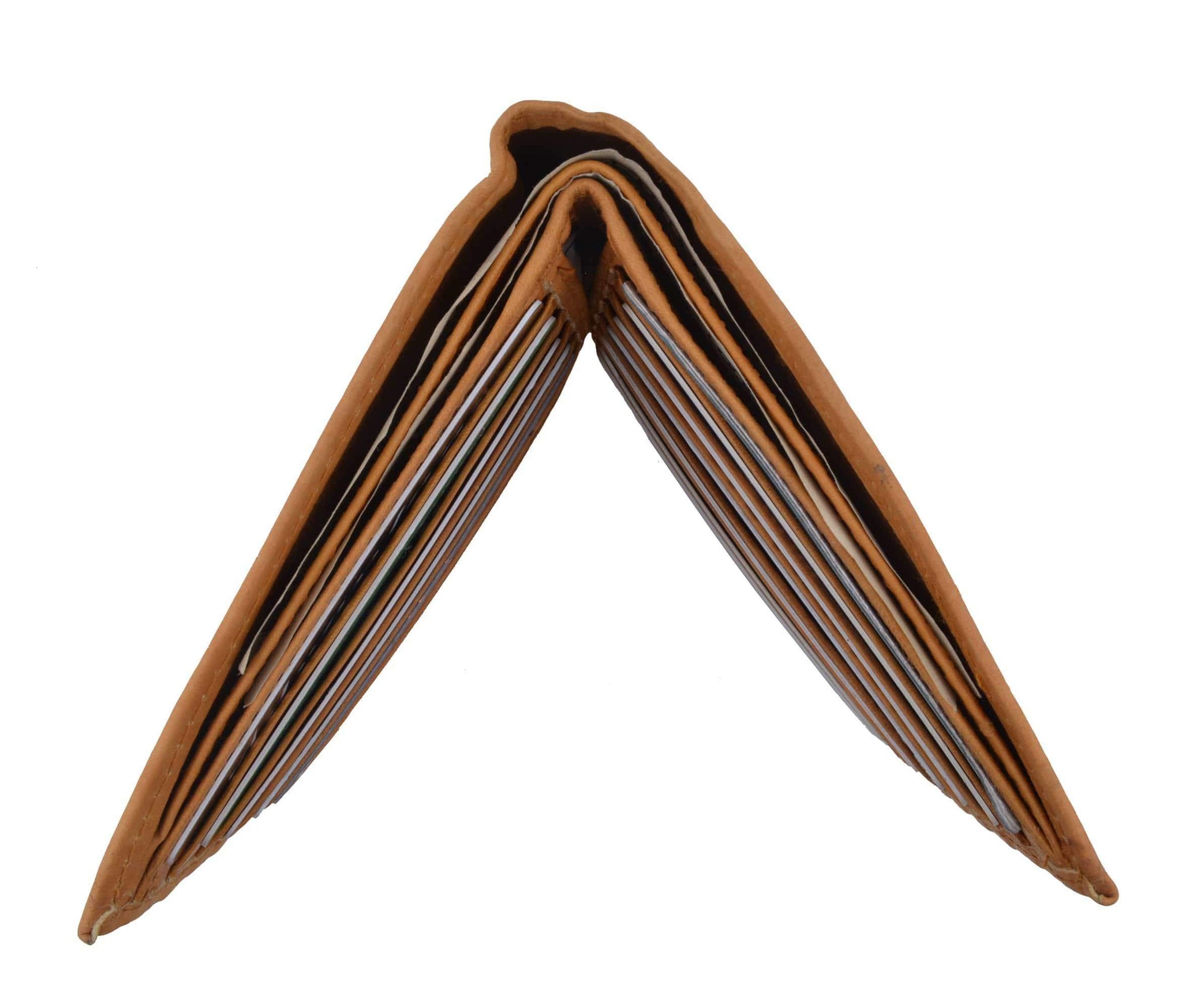 Material: Genuine Leather Bi-foldCredit Card Slots: 12+I.D. Window: YesCurrency Pocket: Two separate dividersOther features: Slim...