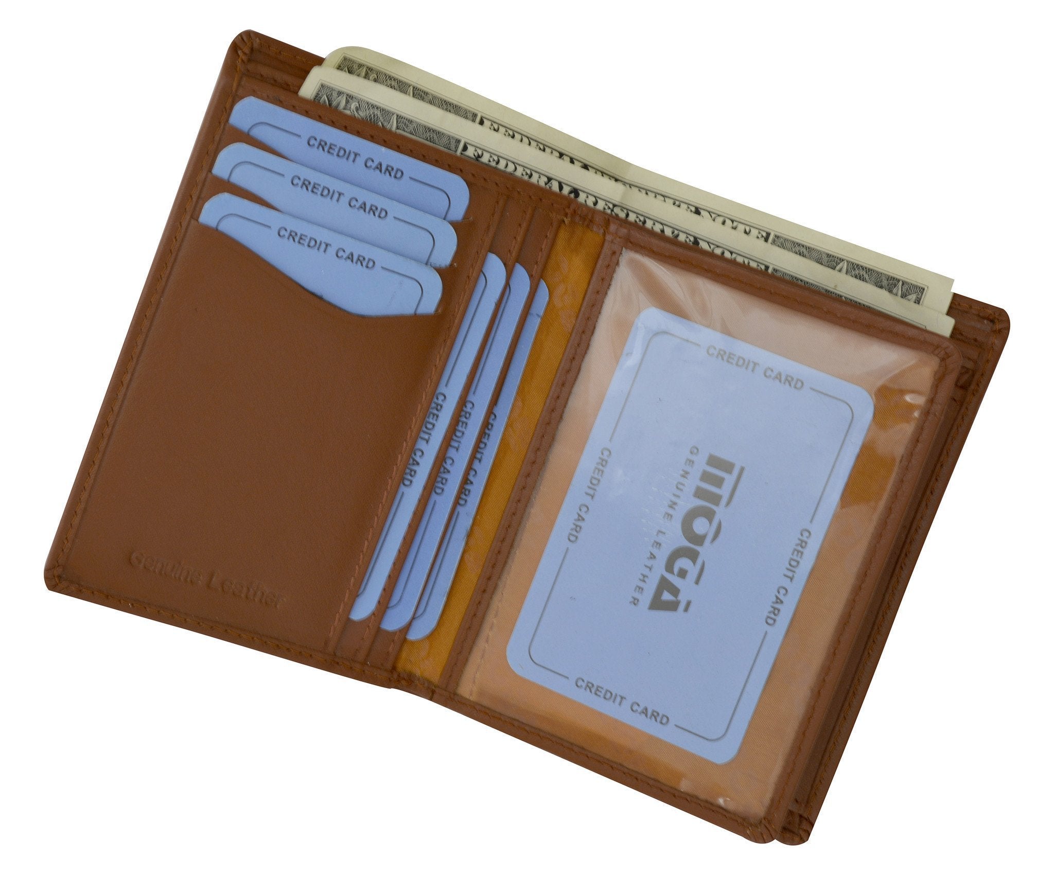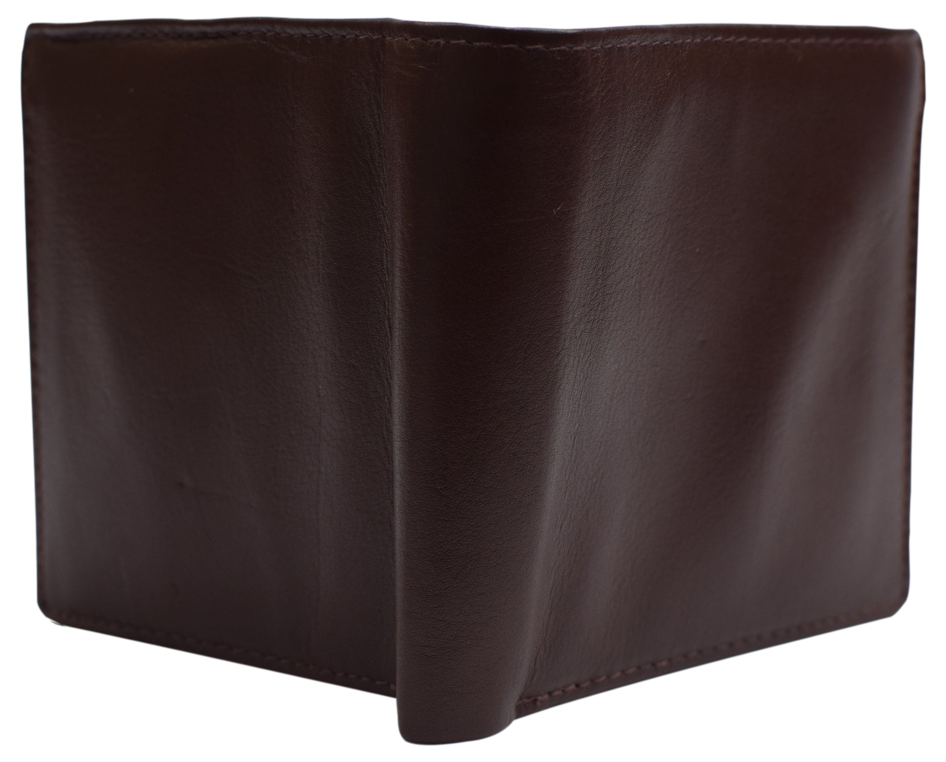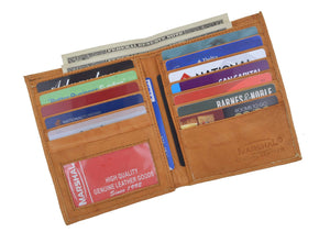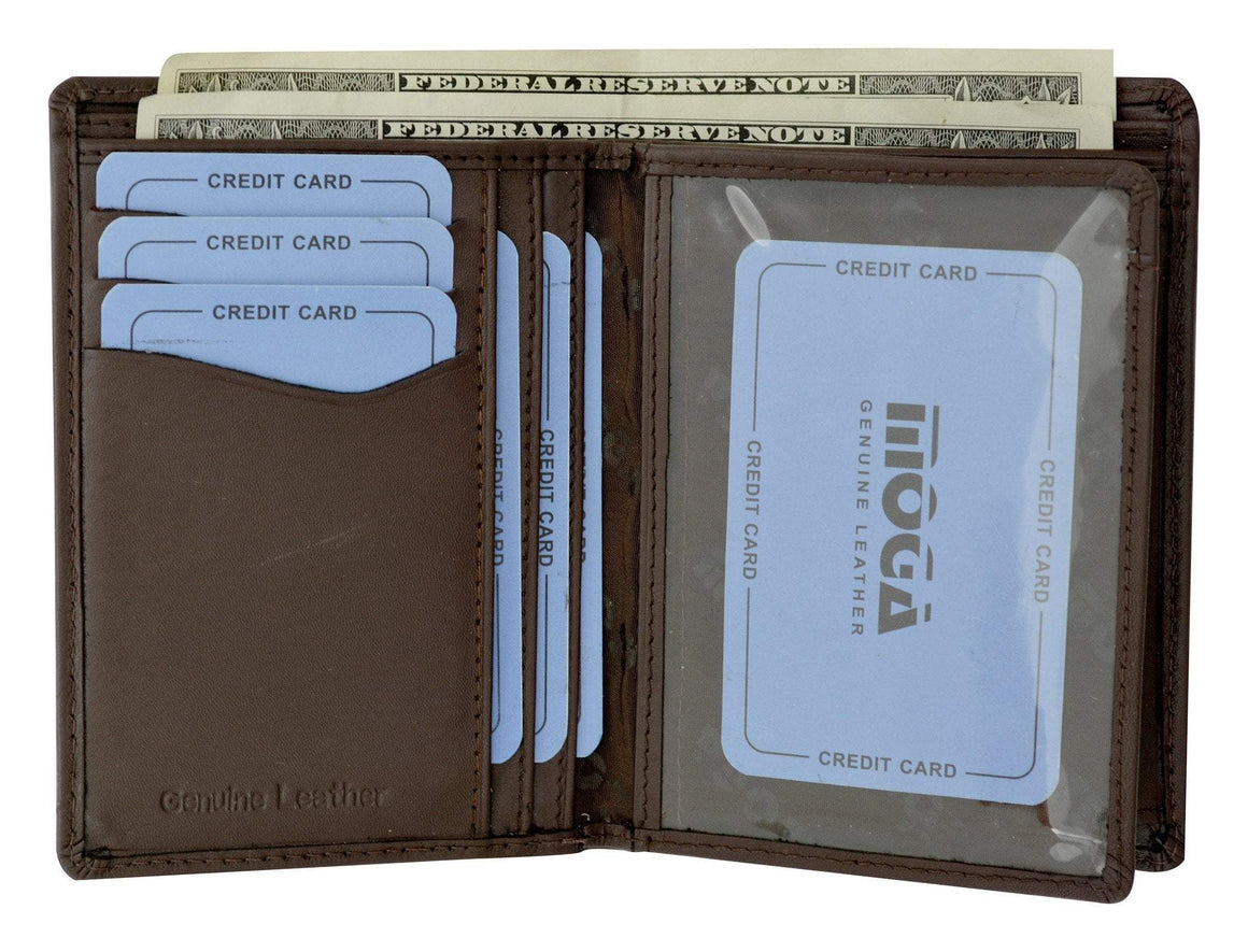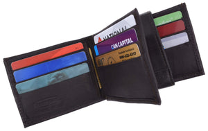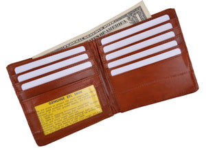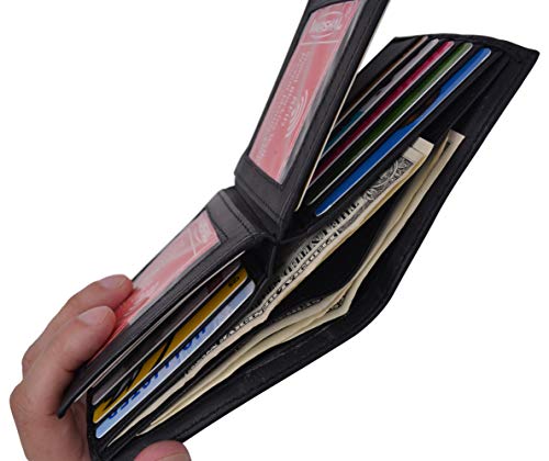 Genuine Cowhide Leather Bifold Wallet 9 Credit Card Slots One ID Window 2 Bill Compartments...
