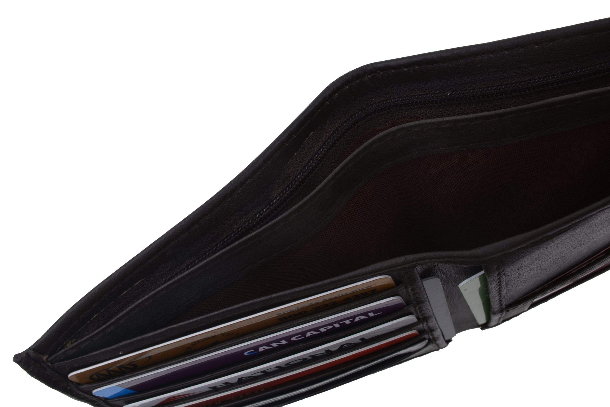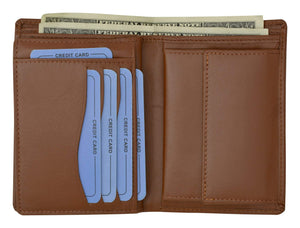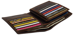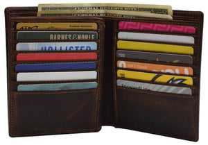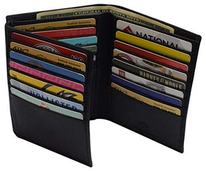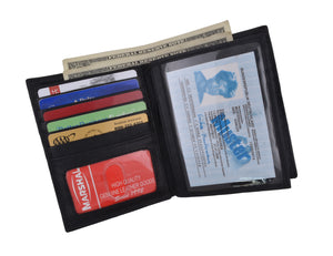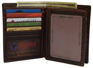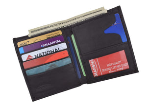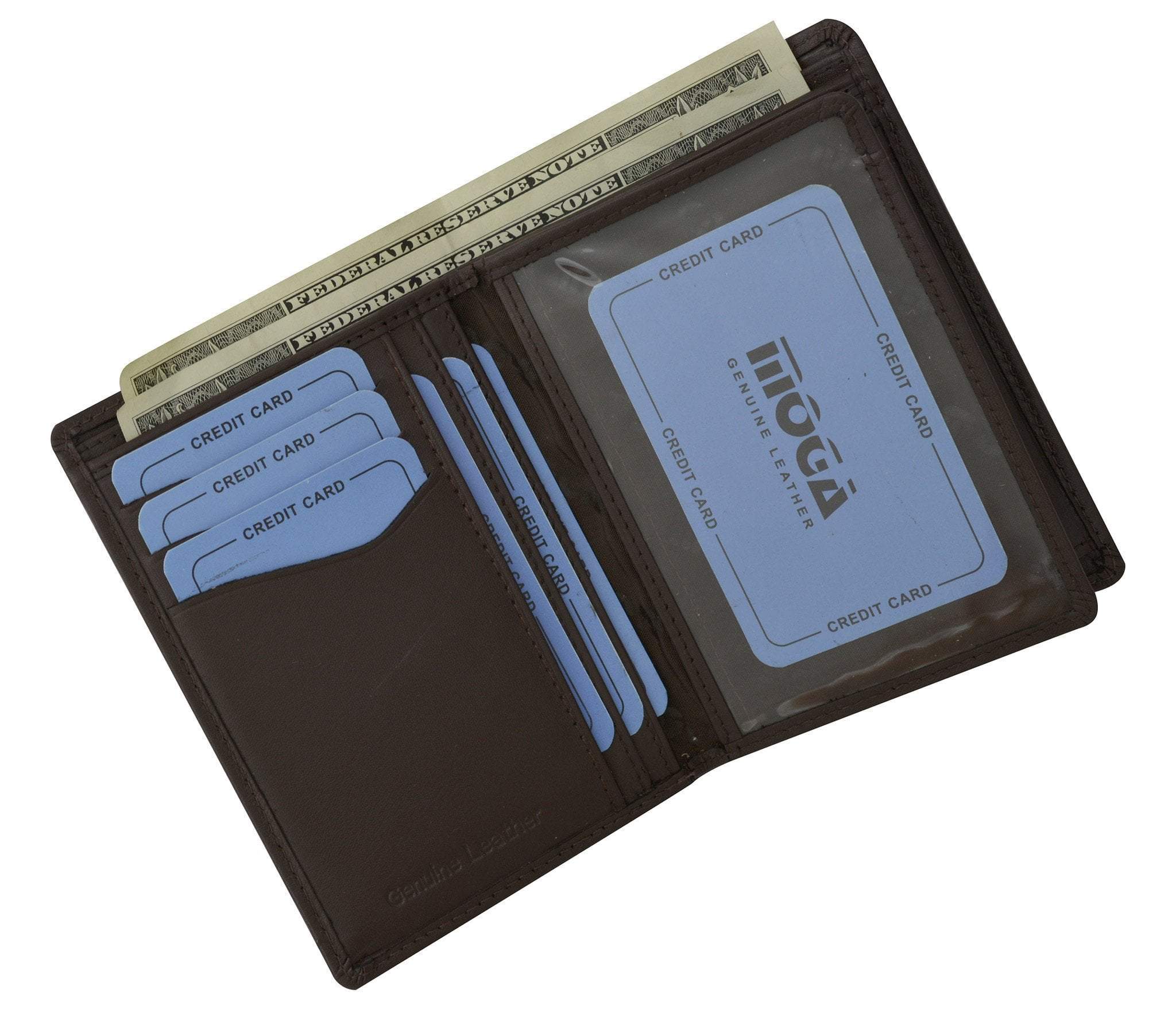 Genuine Cowhide Leather Bifold Wallet 9 Credit Card Slots One ID Window 2 Bill Compartments...