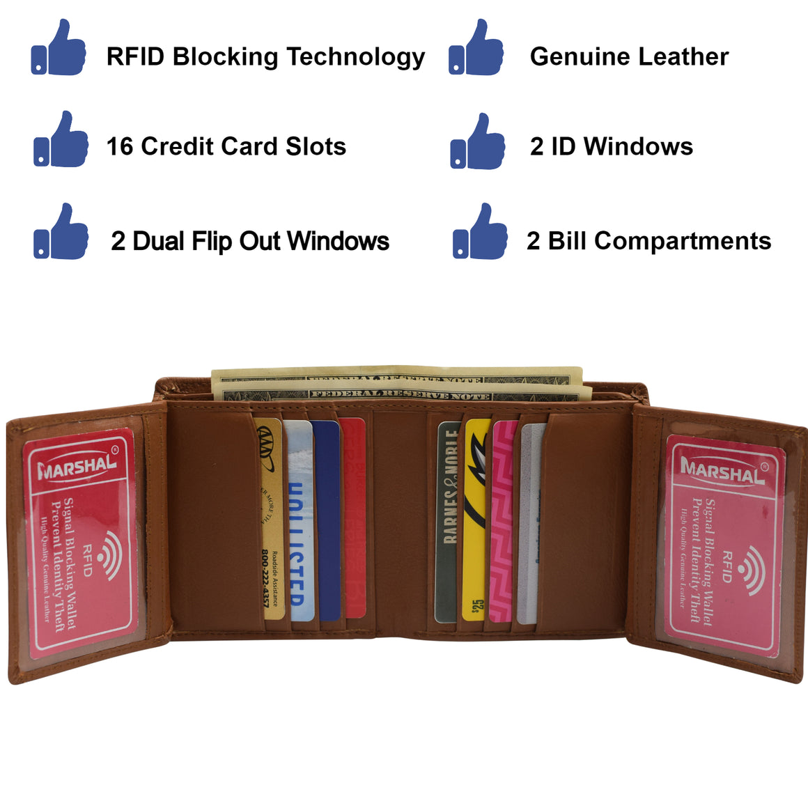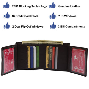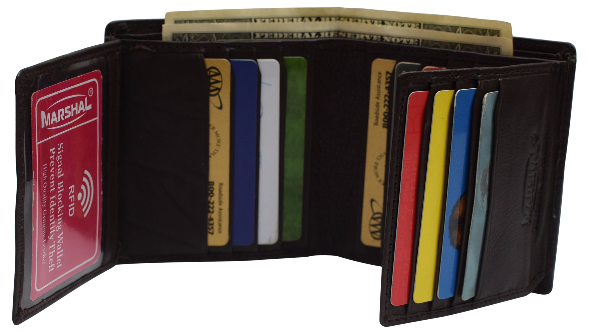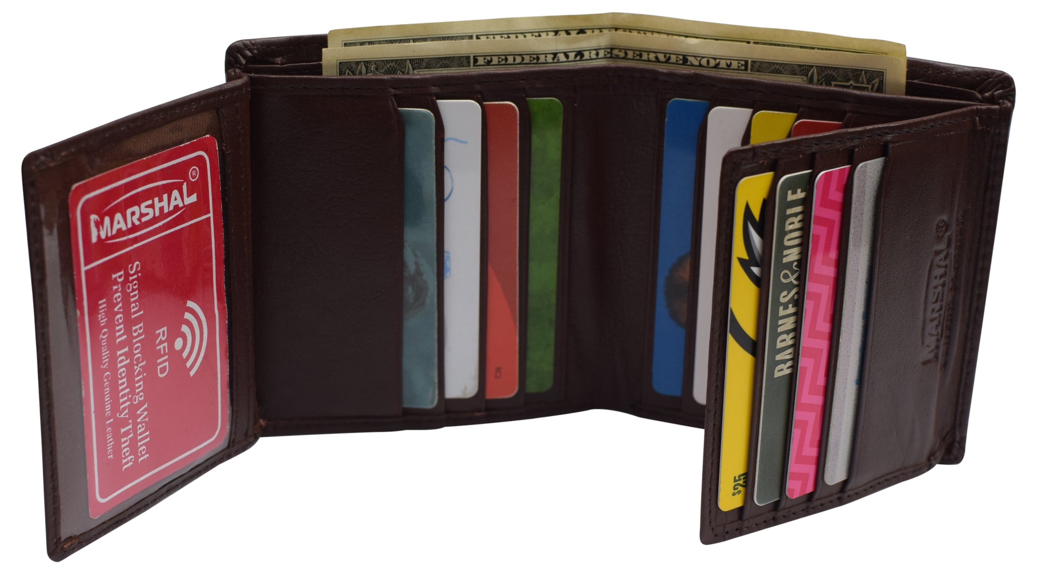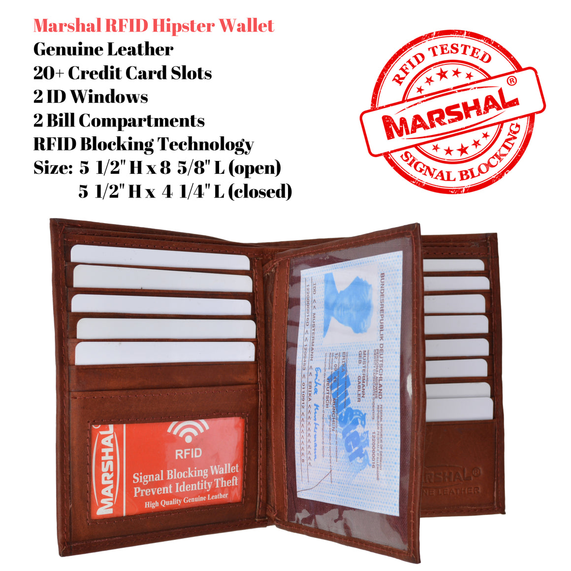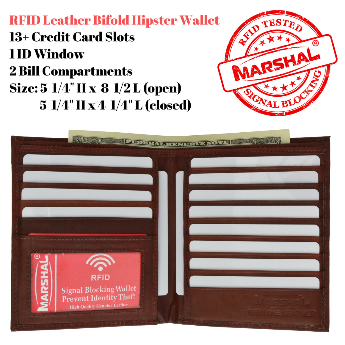 Brand: MarshalMen's Genuine Leather Bifold European Hipster Wallet Details: RFID Blocking Technology 13 Credit card slots...