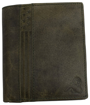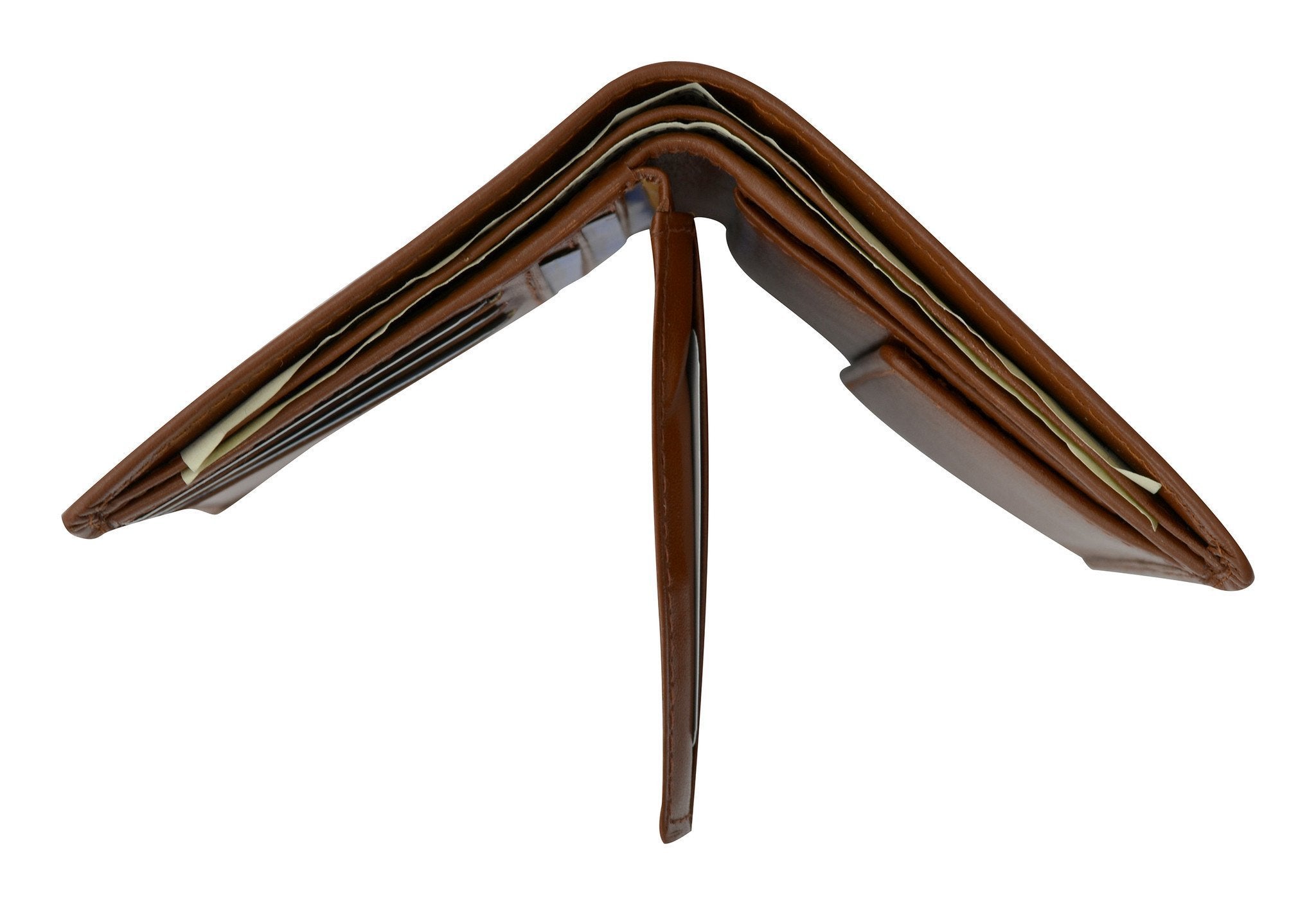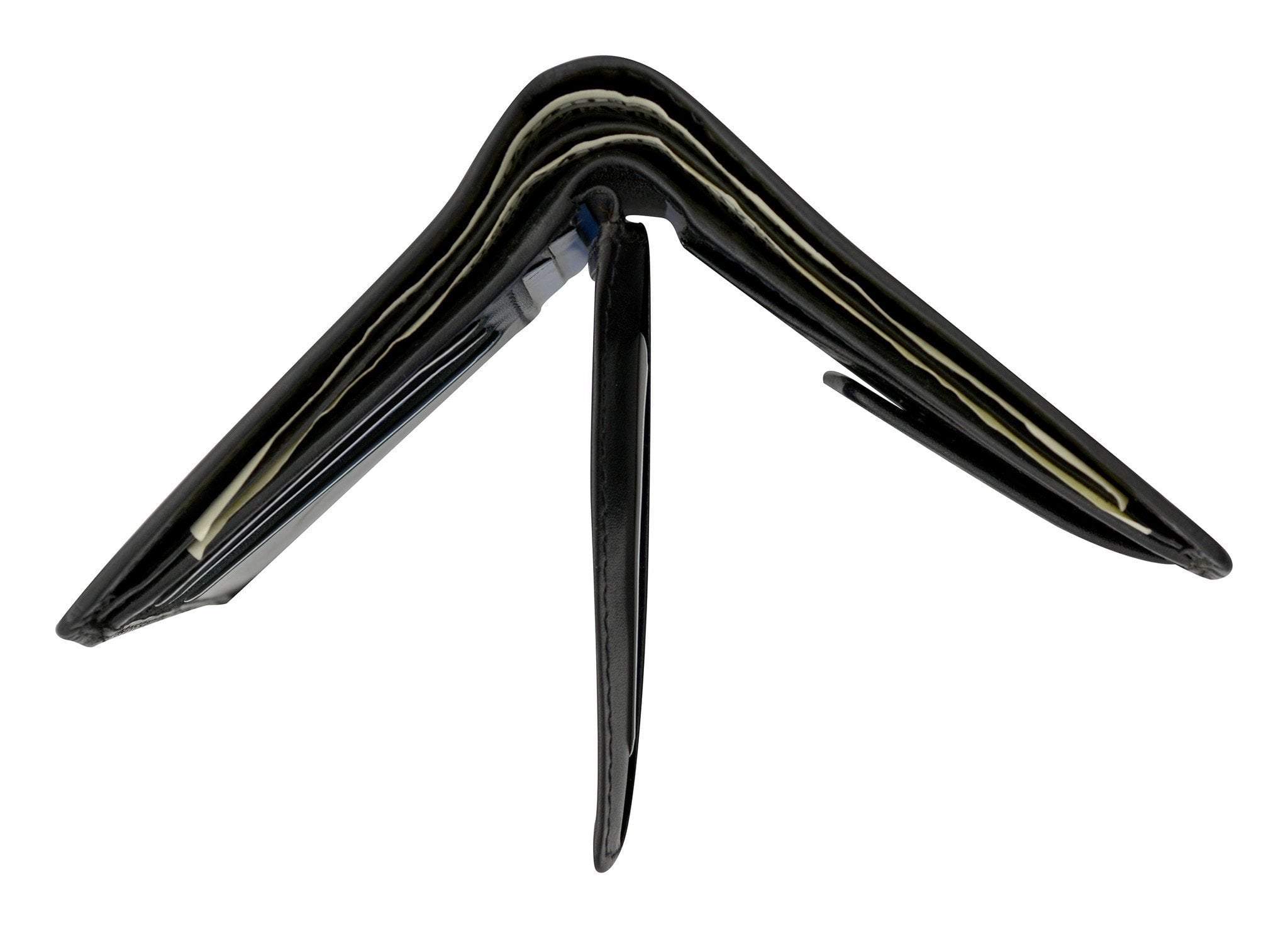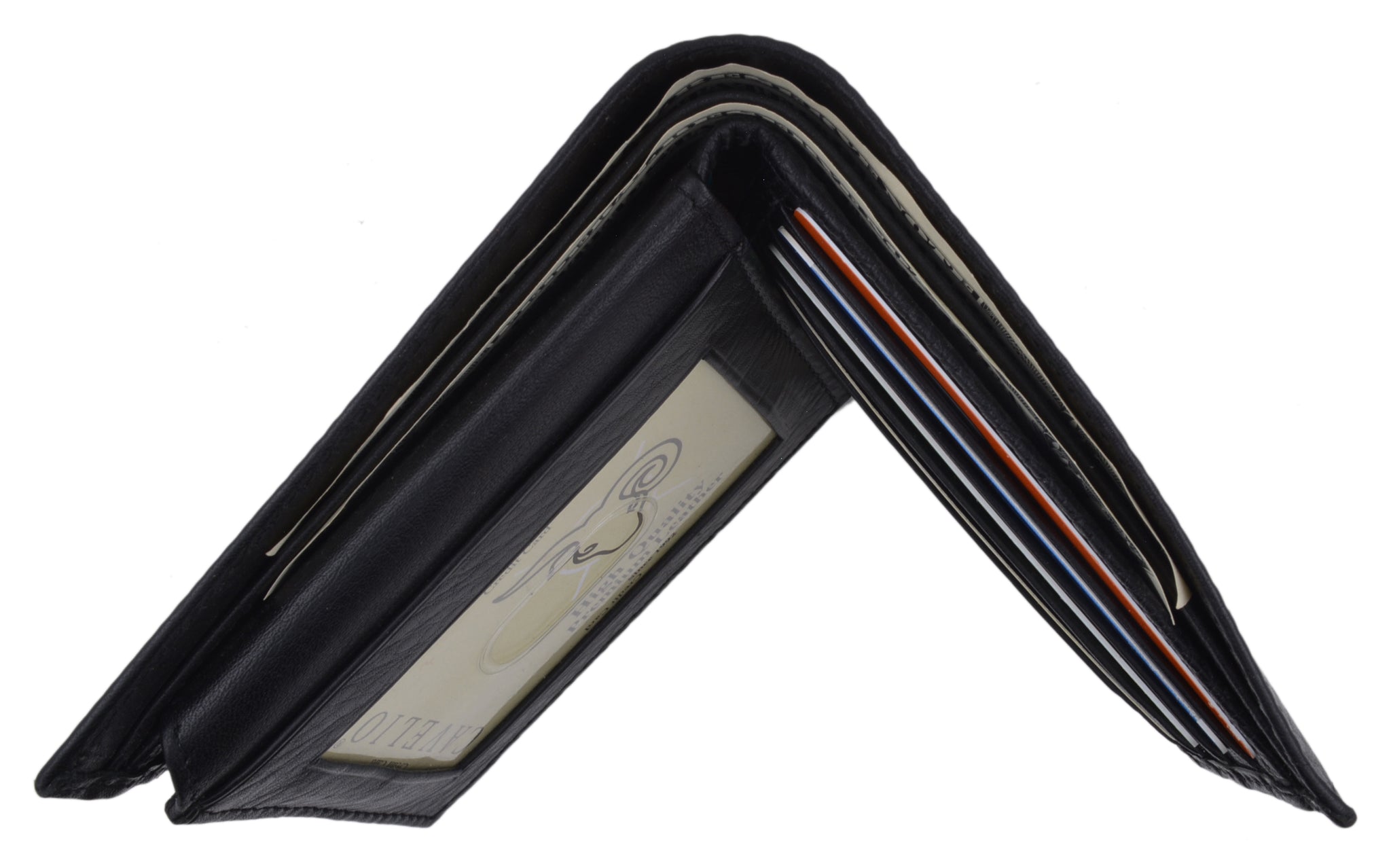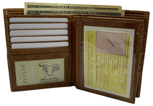 Genuine Leather Hipster Bifold Wallet 2 Main Currency Compartment. 13 Card Slots, 1 Clear I.D....