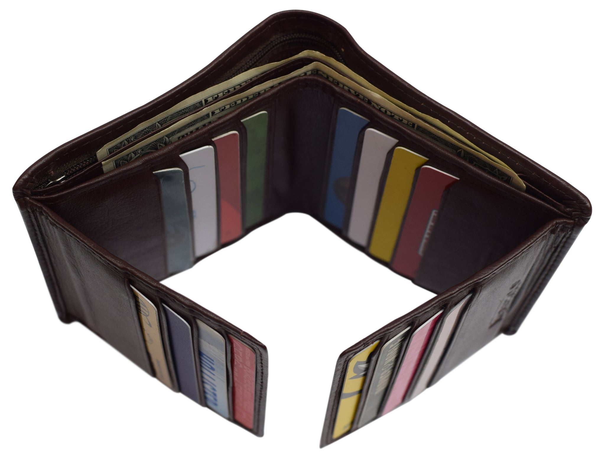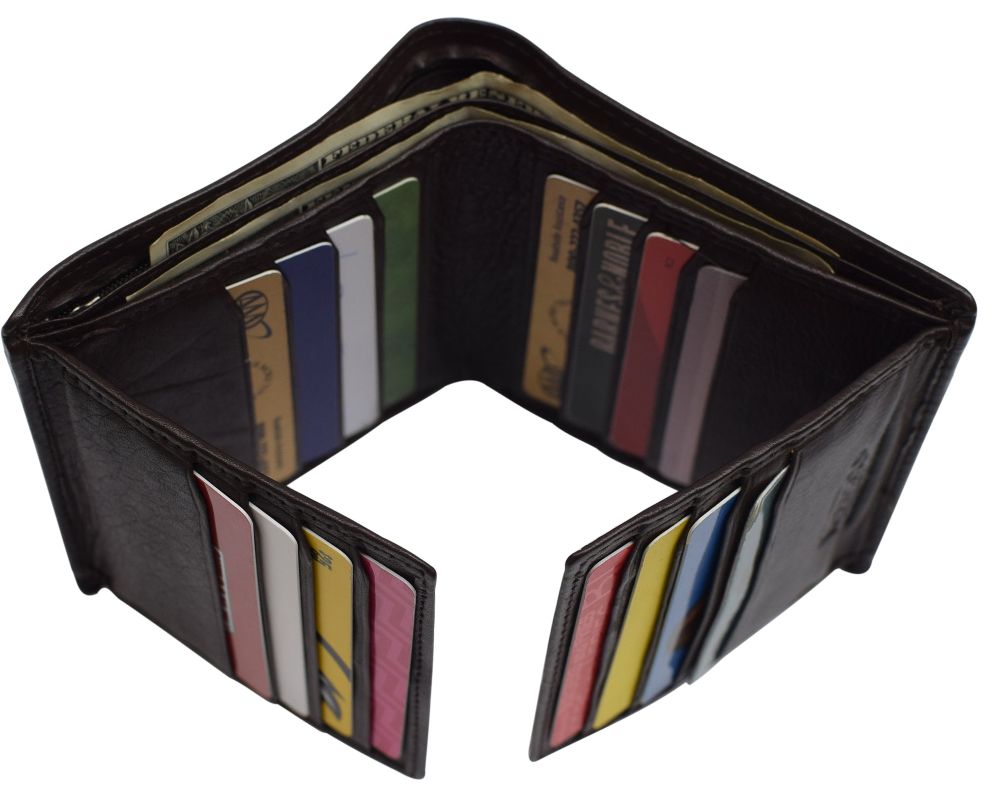 Genuine Leather Tri-fold European Wallet10+ Credit Card SlotsPocket with snap enclosure excellent for coins3 ID WindowsBill...