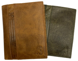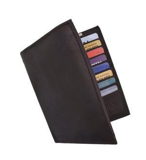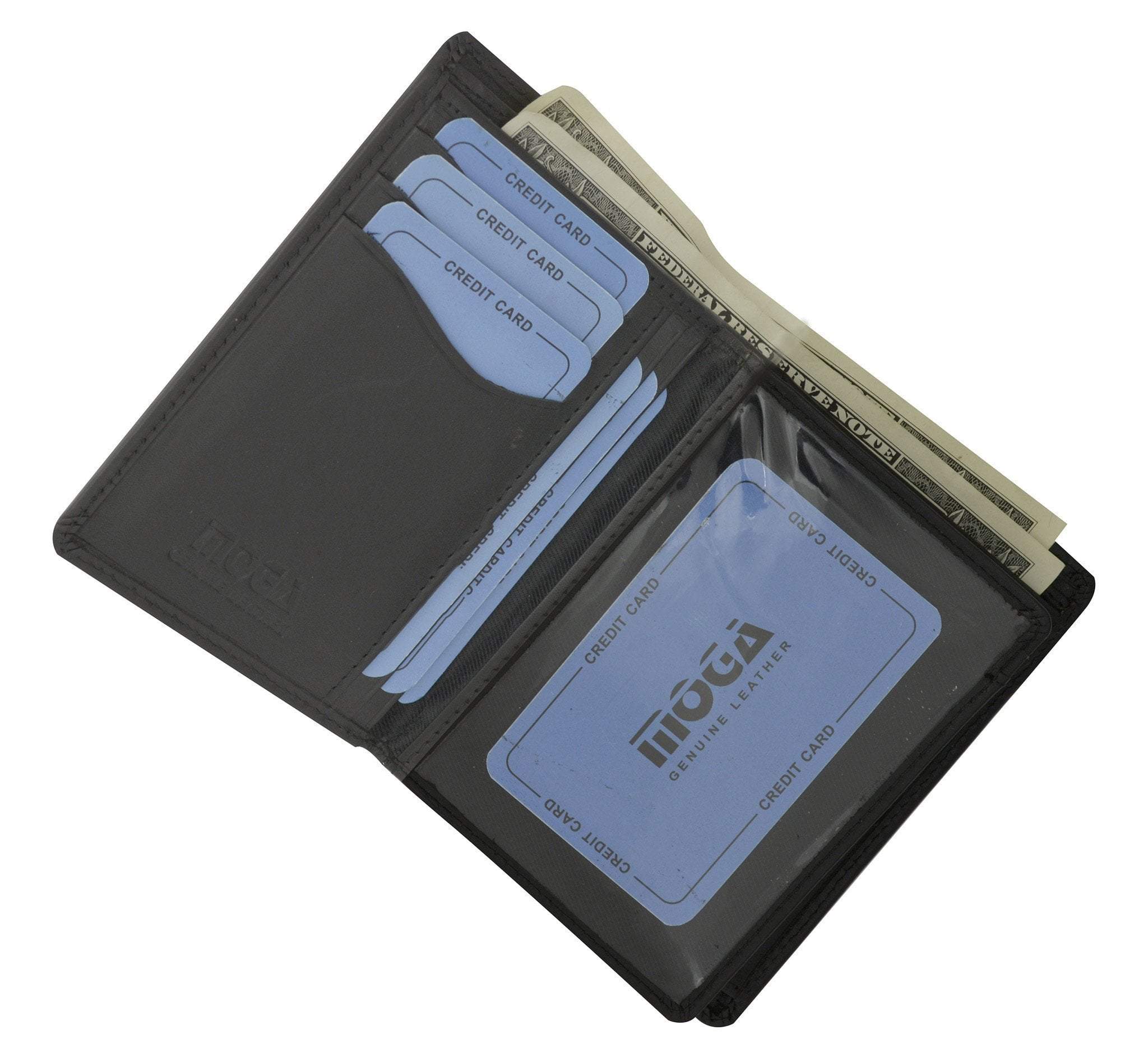 Material: Genuine leatherSize: 4.25"; x 5.25" approxCredit Card Slots: 7+I.D. Window: YesCurrency Pocket: Divider; Hideaway...