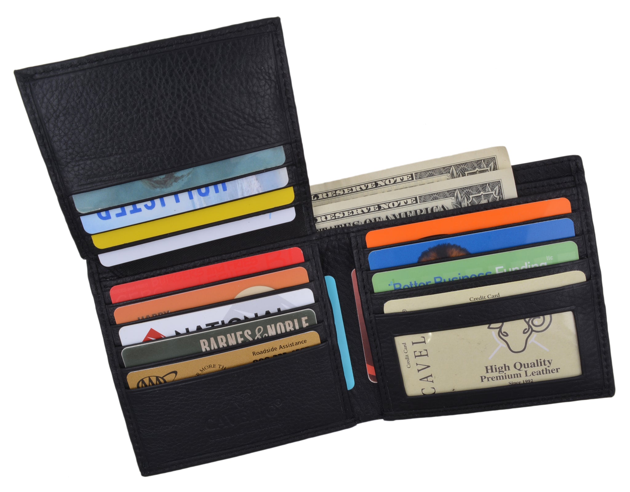 Brand: CavelioDetails: Men's Hipster Genuine Leather Bifold Wallet 11 Credit Card Slots, 2 Large Side...