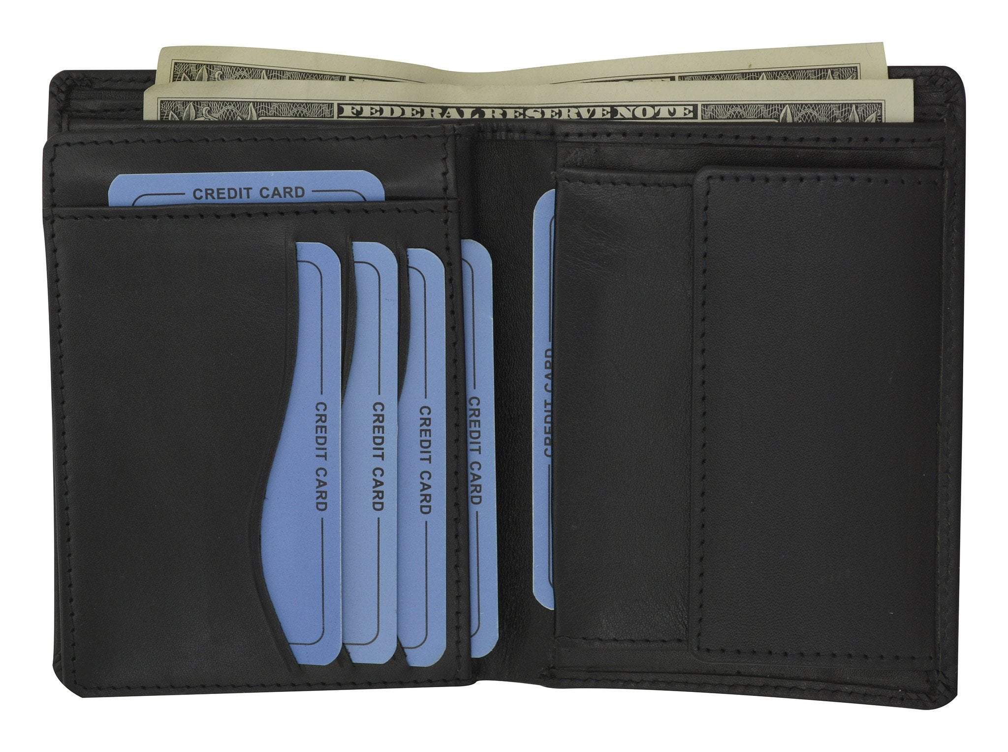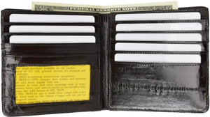 Material: Genuine Leather Bi-foldCredit Card Slots: 8+I.D. Window: Yes (3; Internal; Dual-flap)Currency Pocket: Divider; Hideaway...
