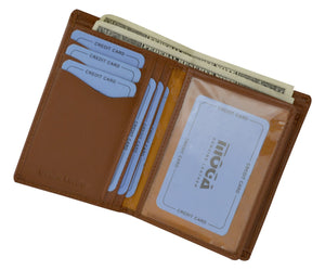 Material: Genuine LeatherSize: 3.5"; x 5";Credit Card Slots: 6+I.D. Window: YesCurrency Pocket: DividerOther features: Interior...