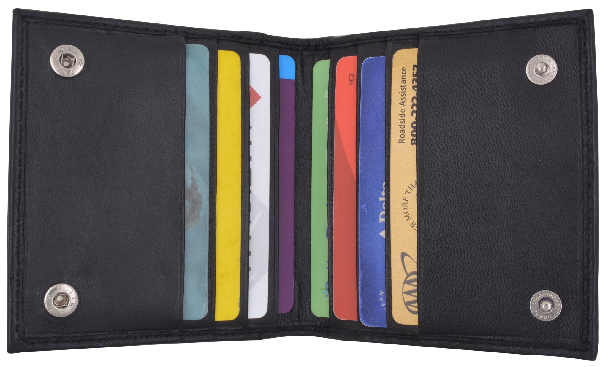 Material: Genuine Leather Bi-foldSize: 4.5"; x 3.5"; (Folded)Credit Card Slots: 9+I.D. Window: YesCurrency Pocket: Divider;...
