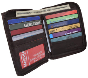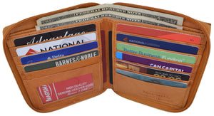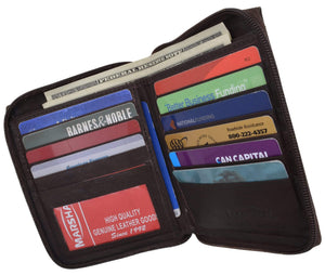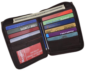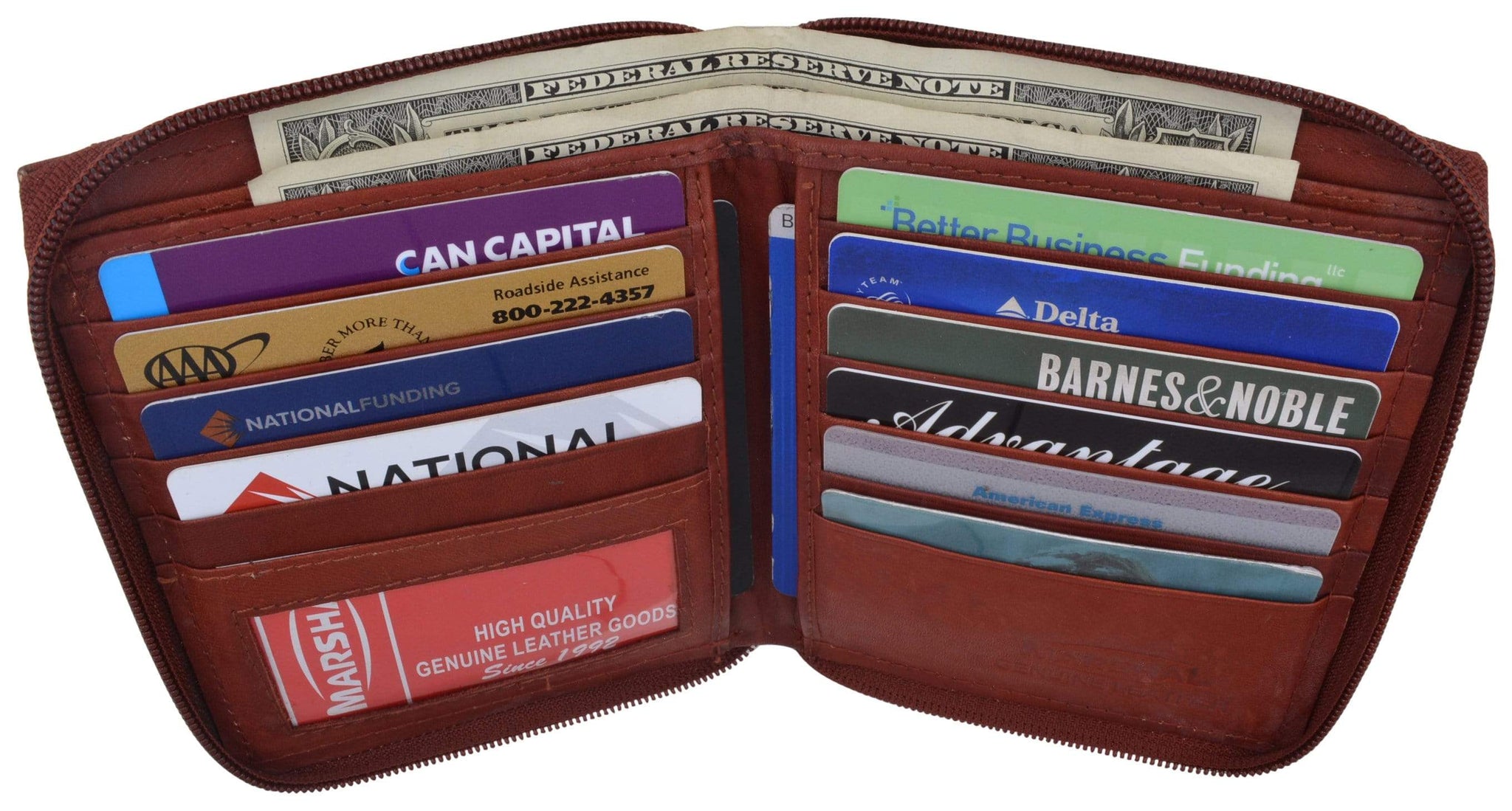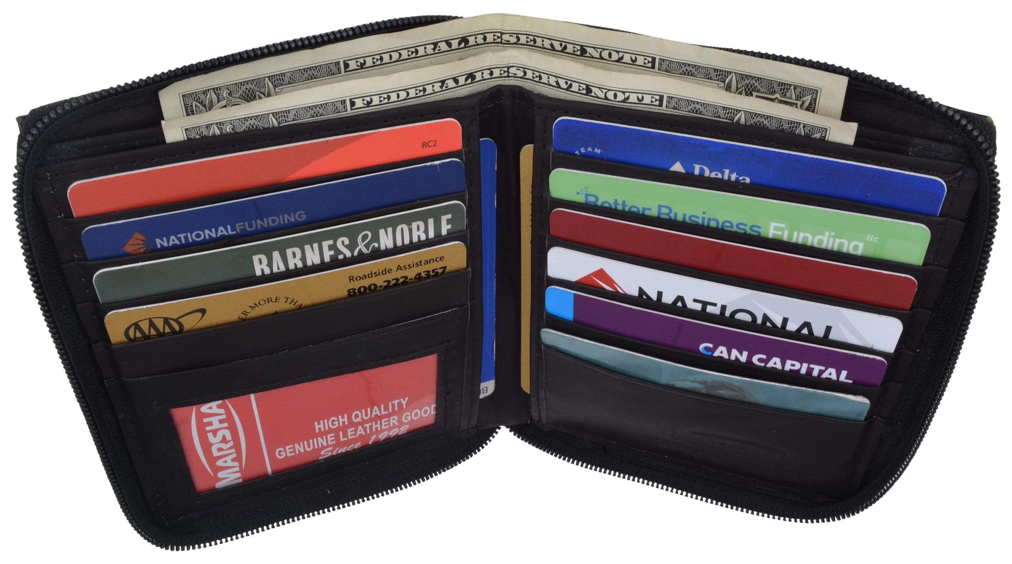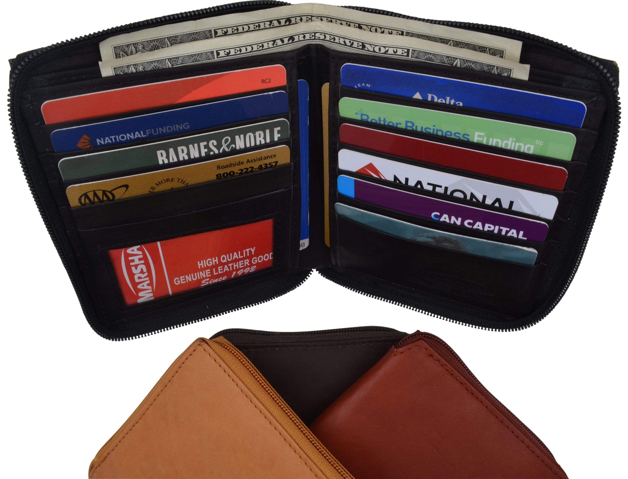 Material: Genuine Leather Bi-foldCredit Card Slots: 10+I.D. Window: Yes (Internal)Currency Pocket: DividerOther features: All-around zipper...