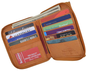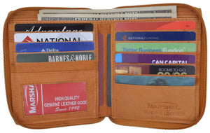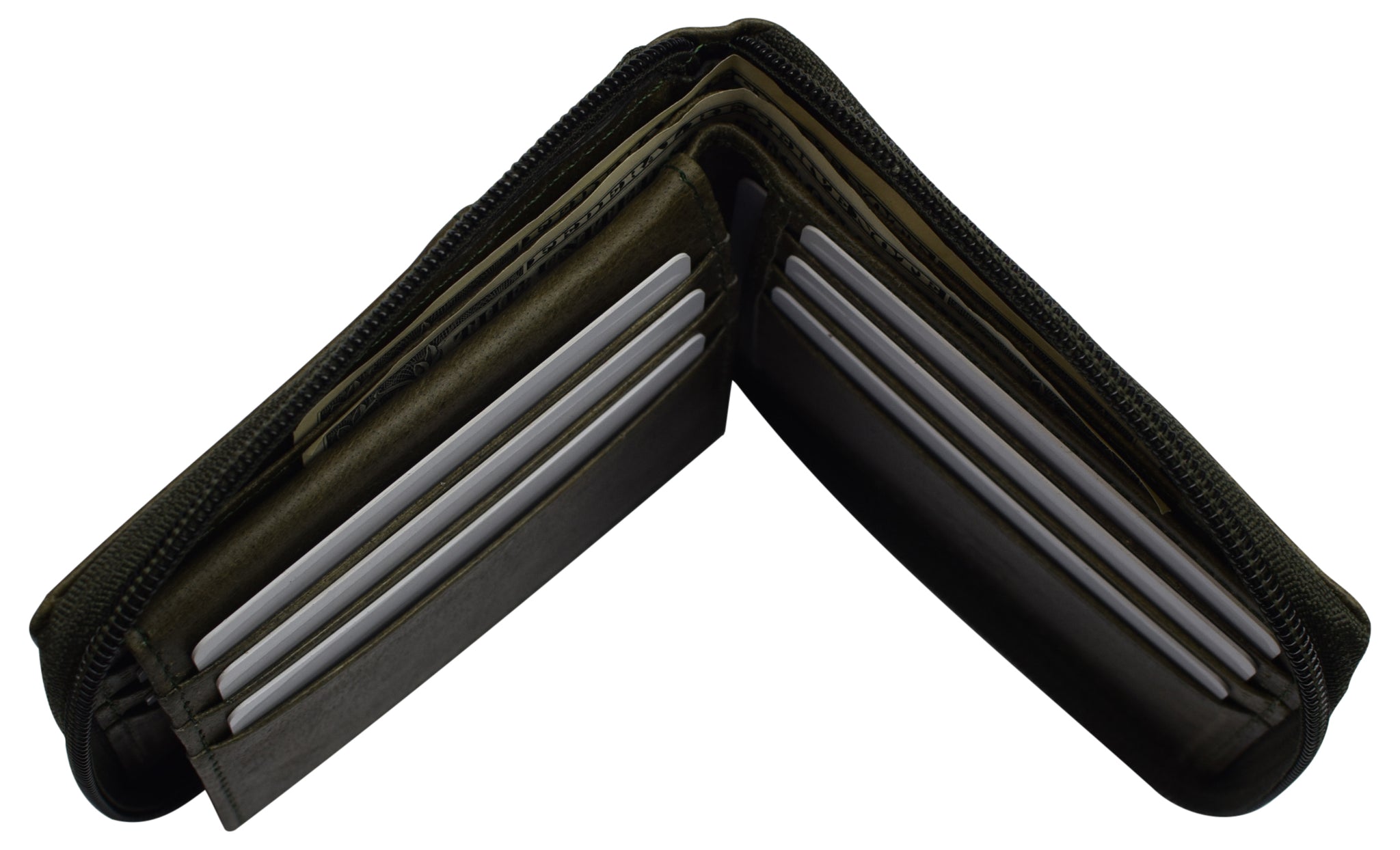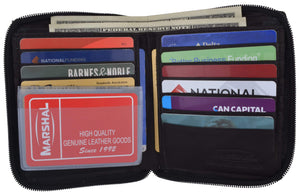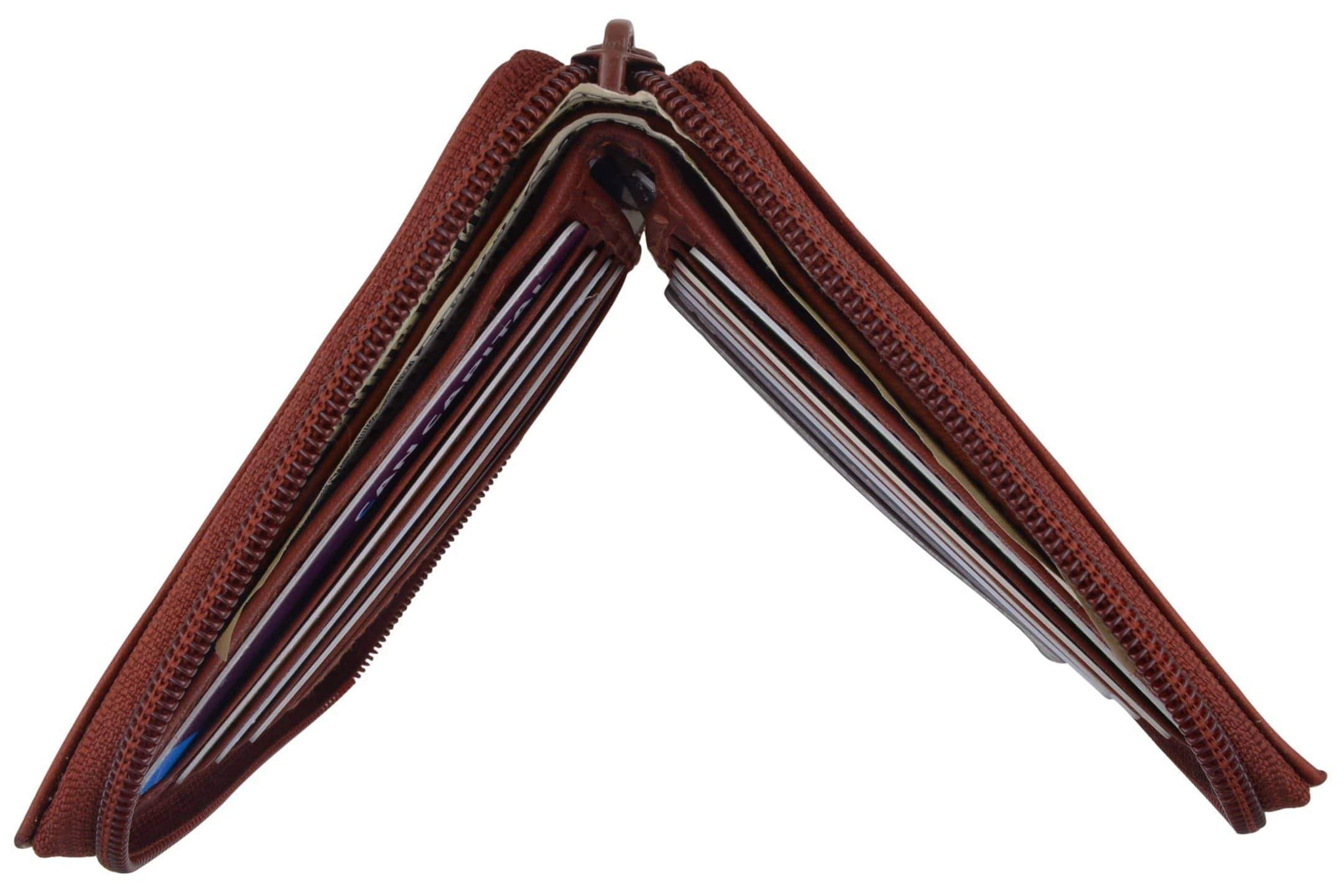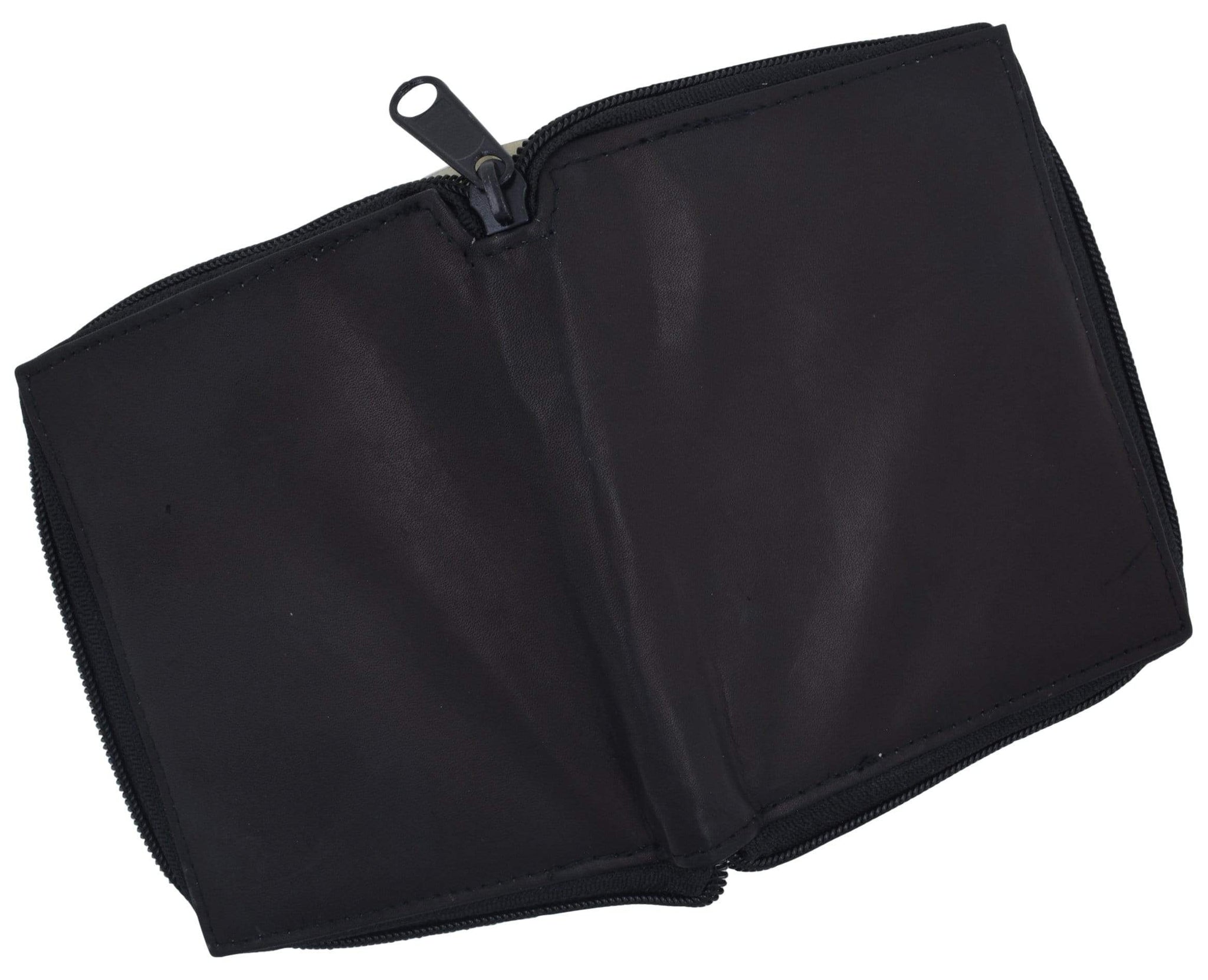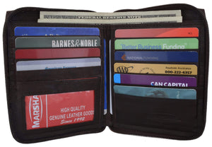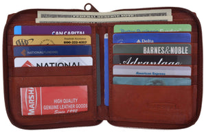 Material: Genuine Leather Bi-foldCredit Card Slots: 10+I.D. Window: Yes (Internal)Currency Pocket: DividerOther features: All-around zipper...