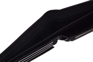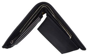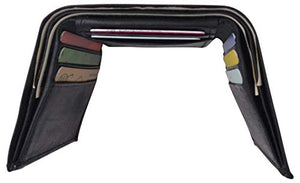 Material: Genuine Leather Bi-foldCredit Card Slots: 15+I.D. Window: YesCurrency Pocket: Divider; Hideaway zippered pocketOther features:...