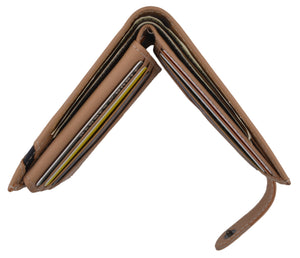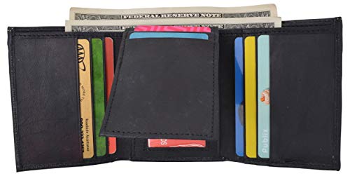 Genuine Leather Trifold Wallet for Kids8+ Credit Card Slots2 ID WindowsBill CompartmentCoin PocketPlastic Insert for...