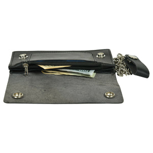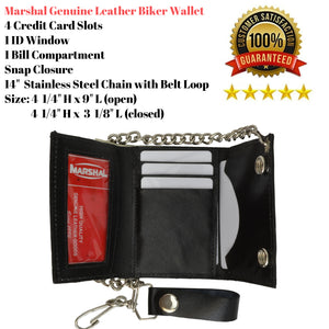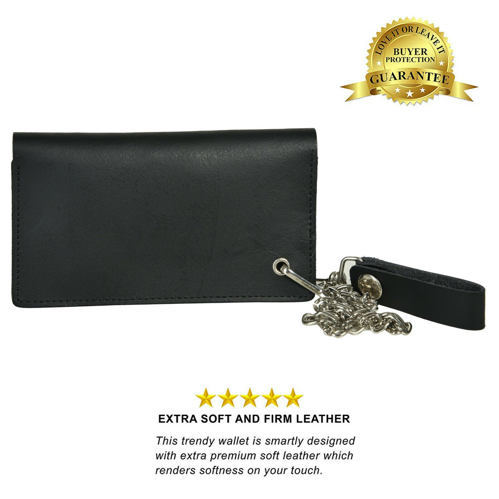 Material: Genuine Leather Biker's Wallet with Chain Inside Details: Card and ID slots. Money Bills...