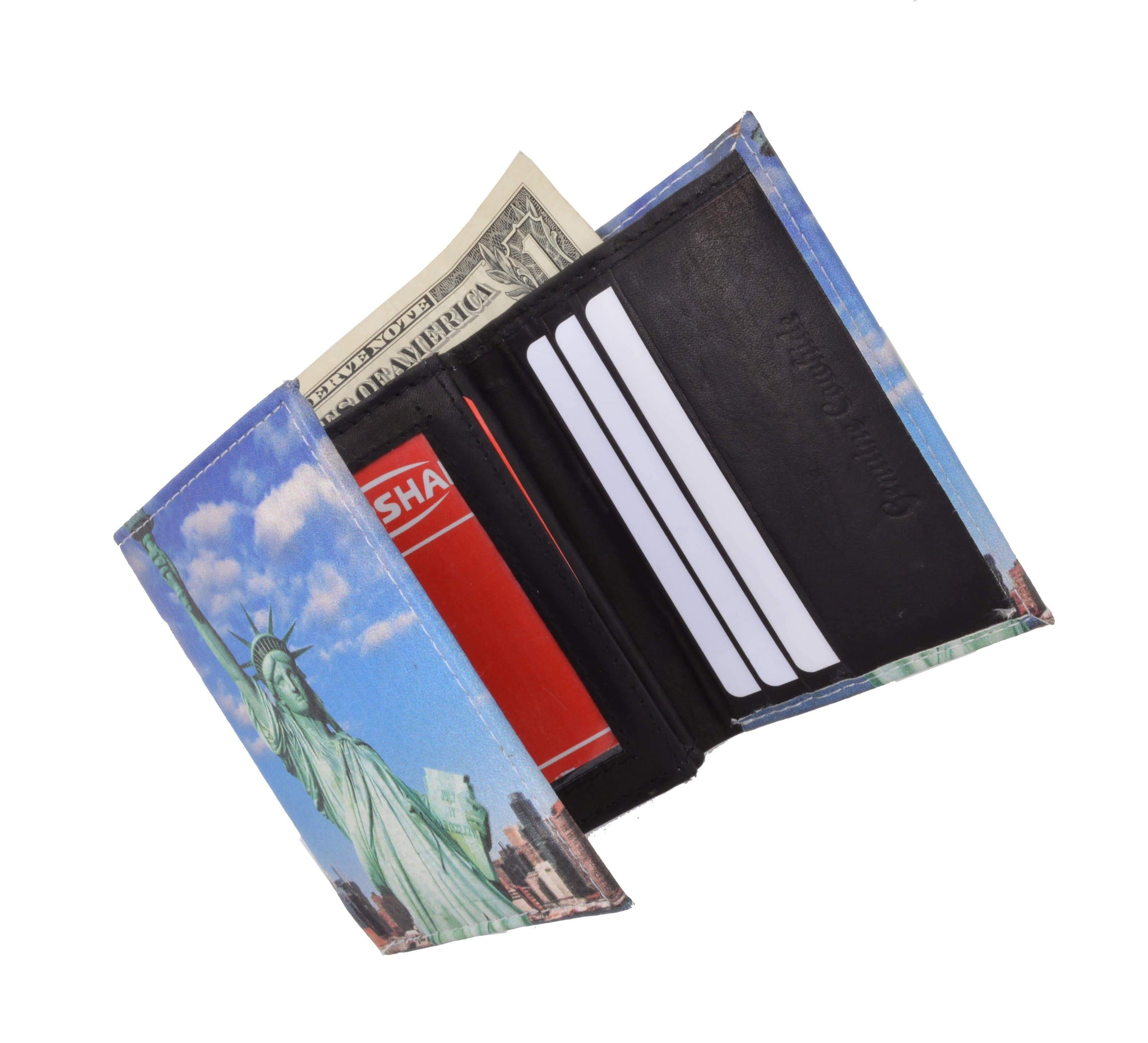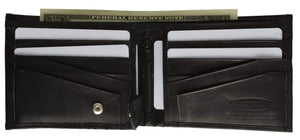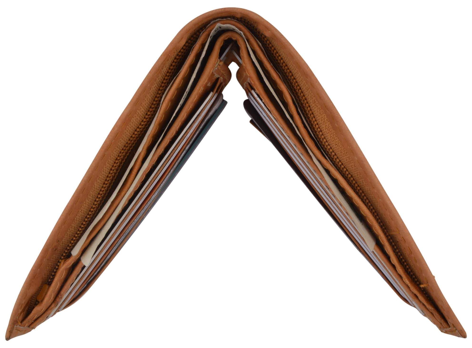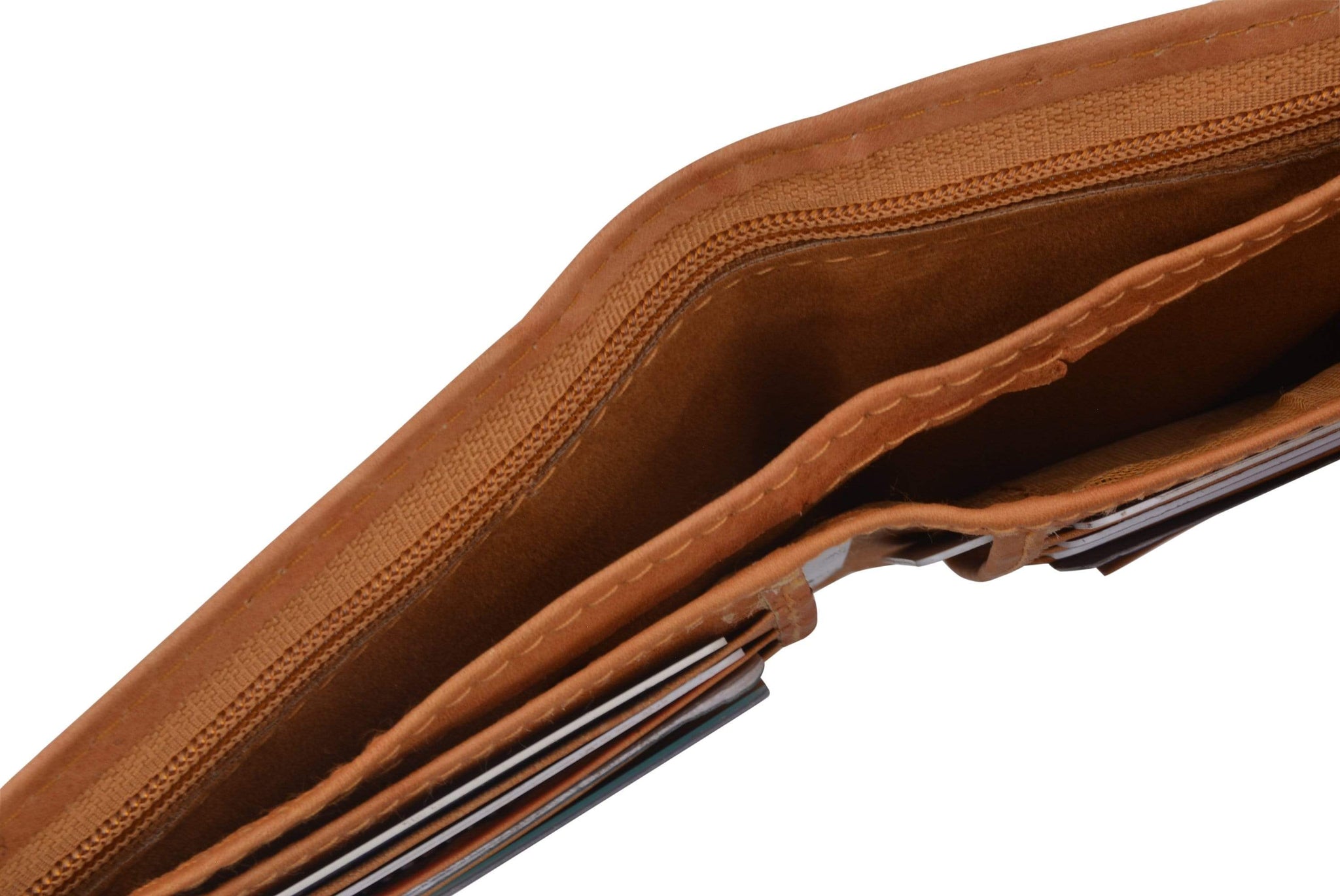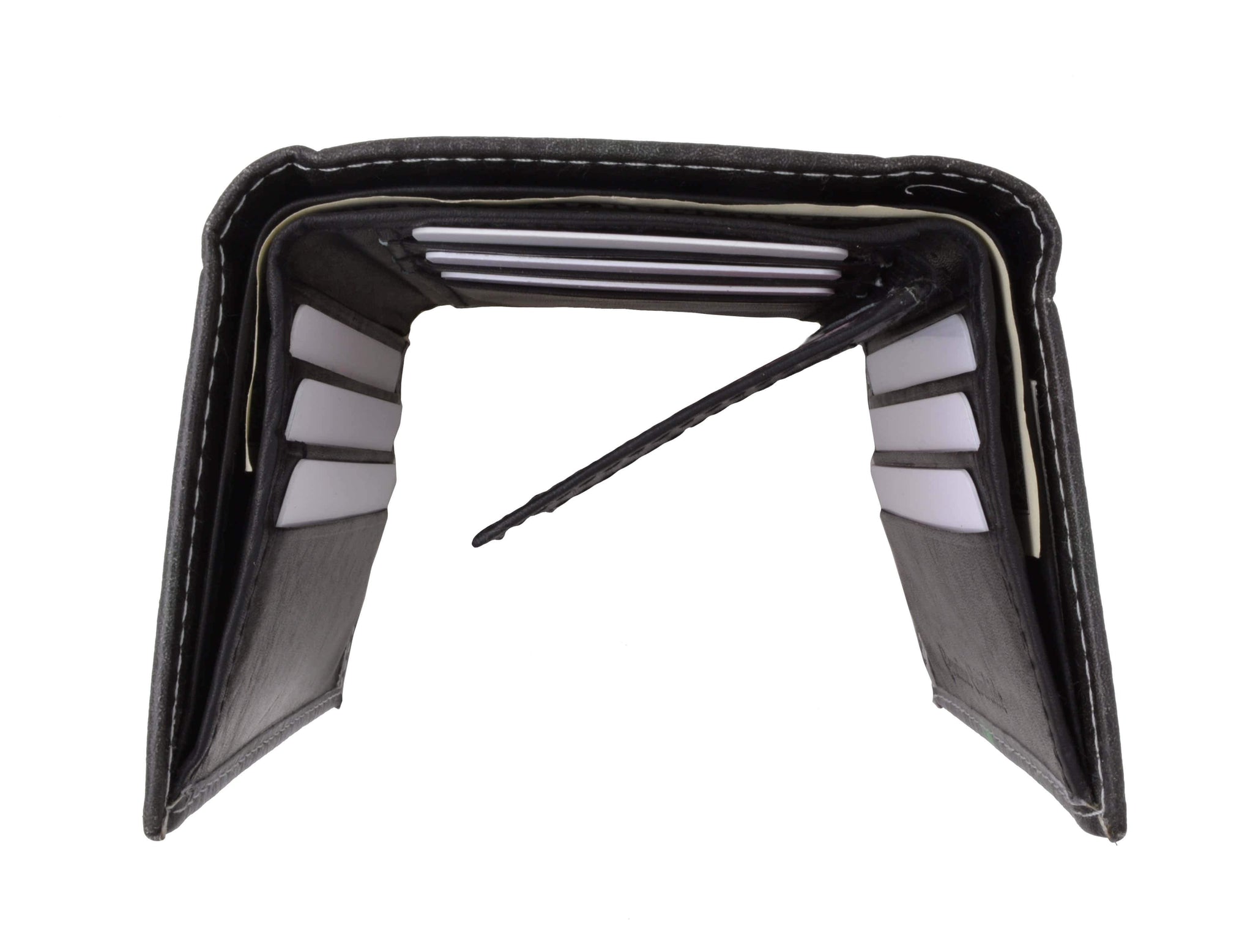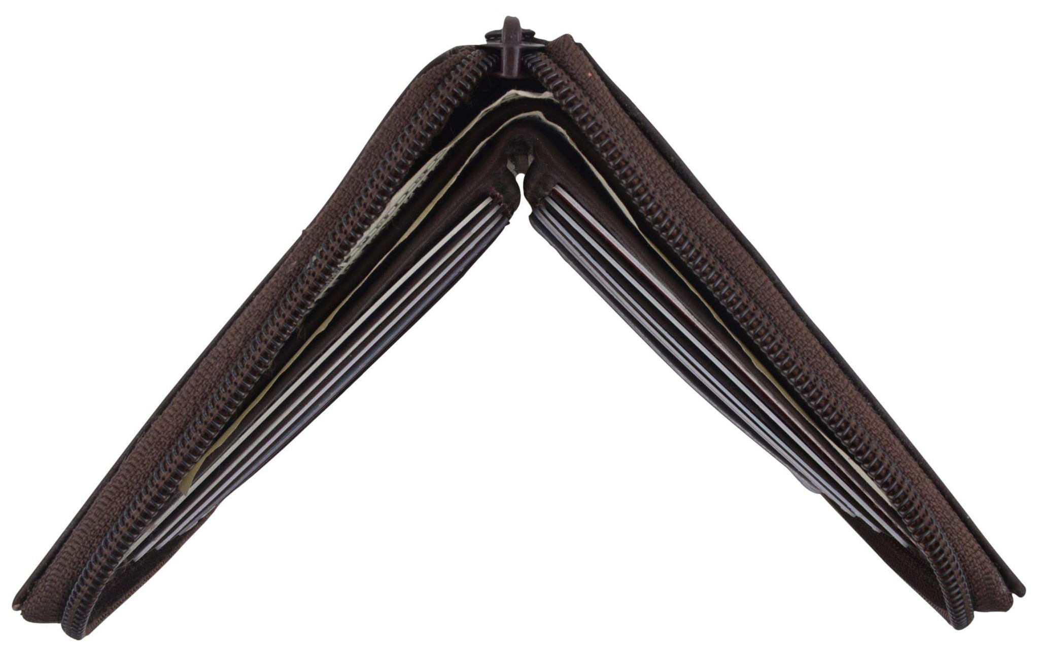 Genuine Leather Trifold Wallet 2 Currency Compartments and a bill length zip pocket inside the...