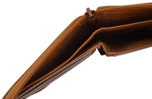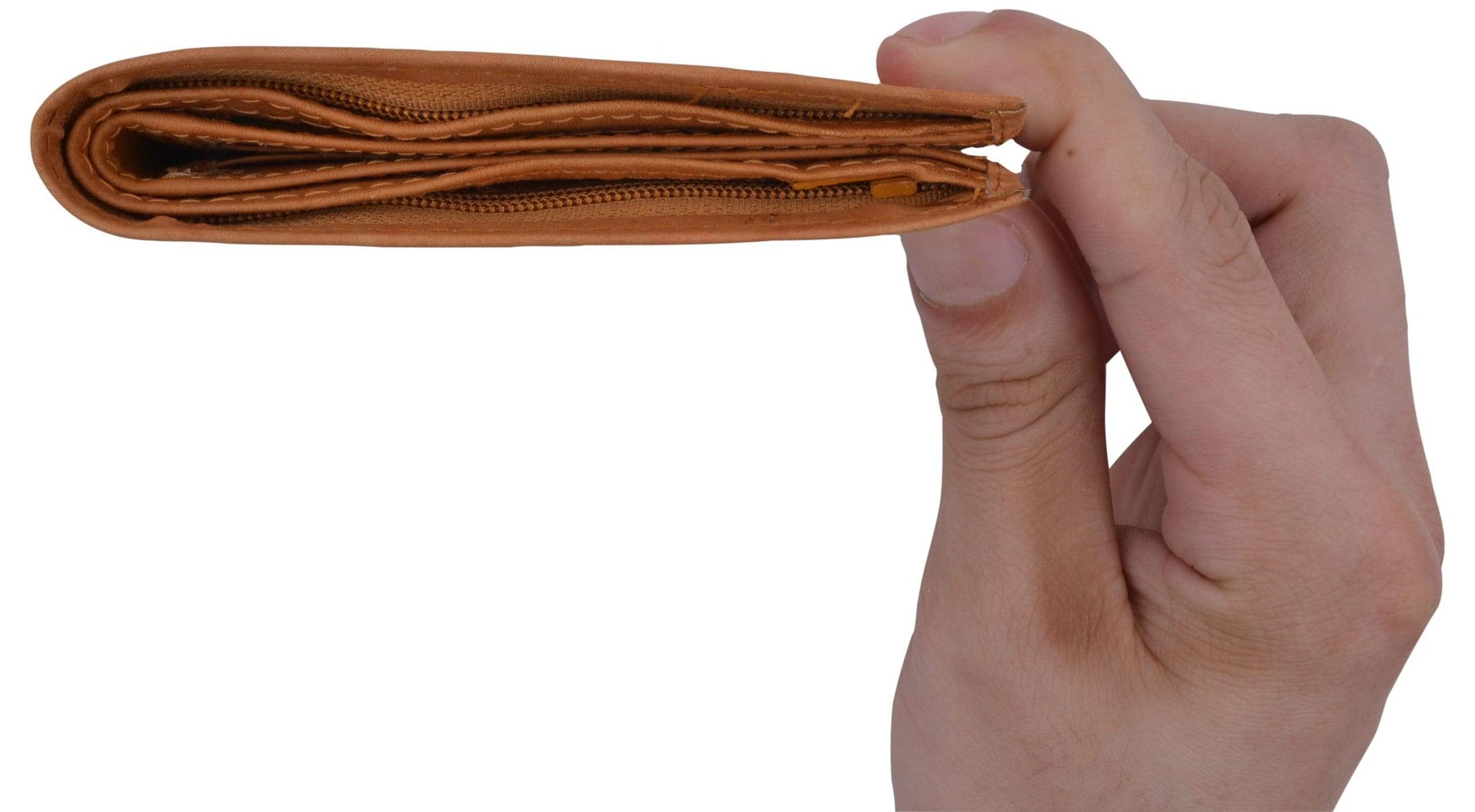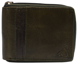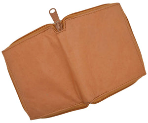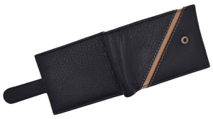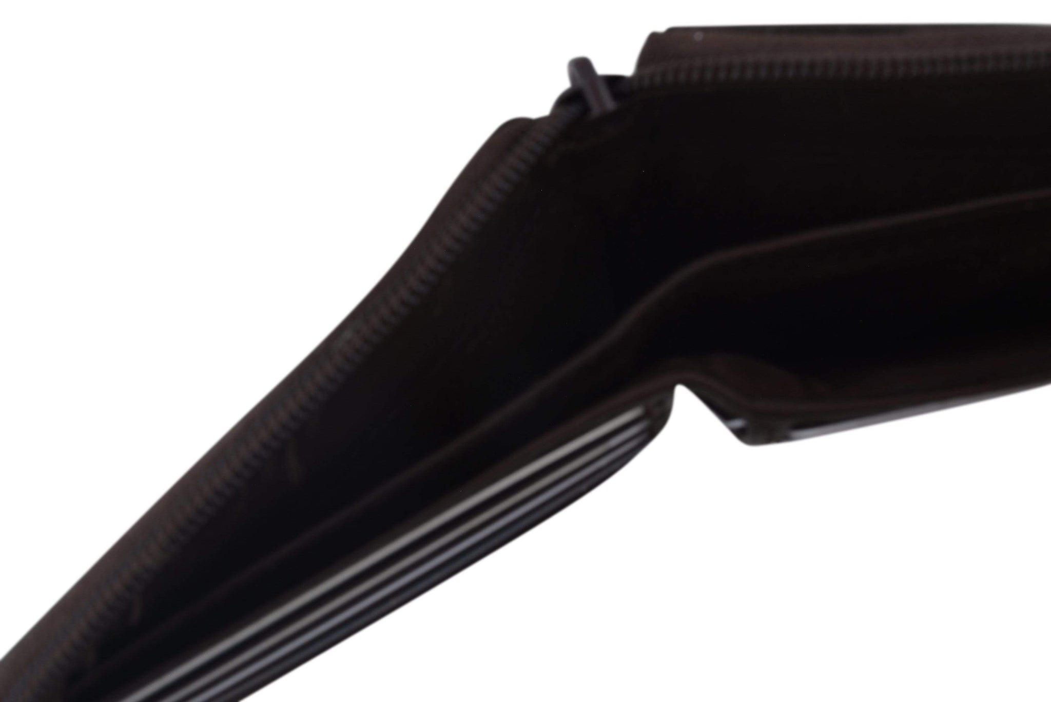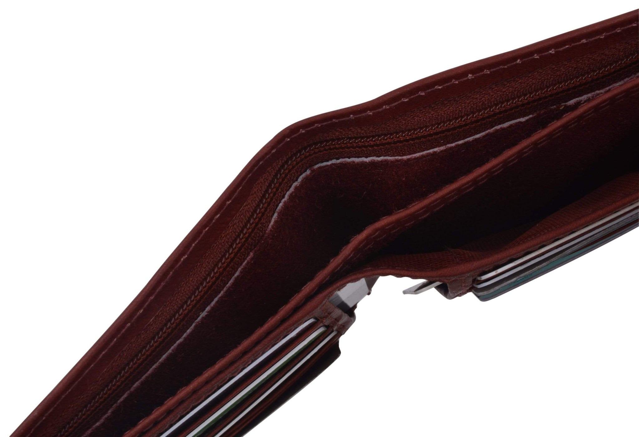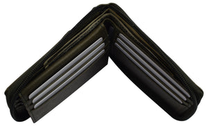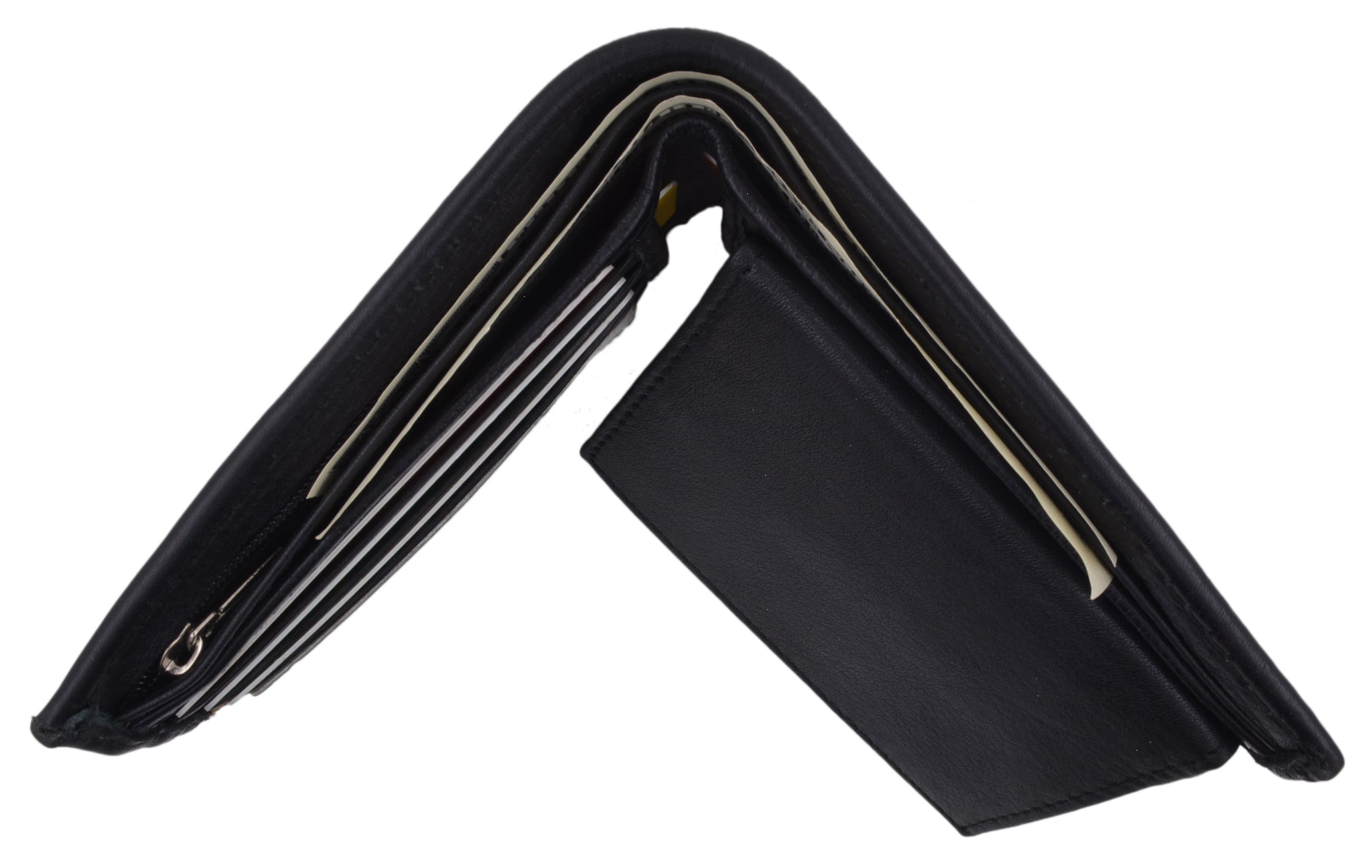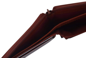 Genuine Leather Trifold Wallet 2 Currency Compartments and a bill length zip pocket inside the...