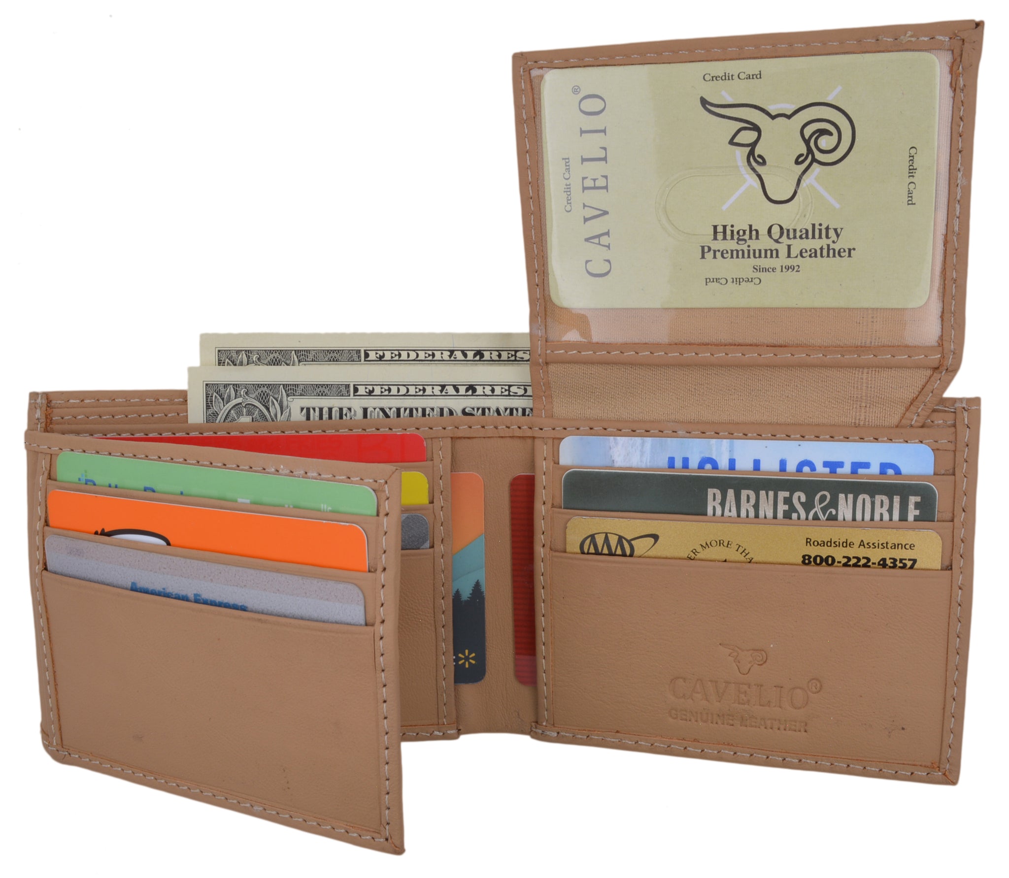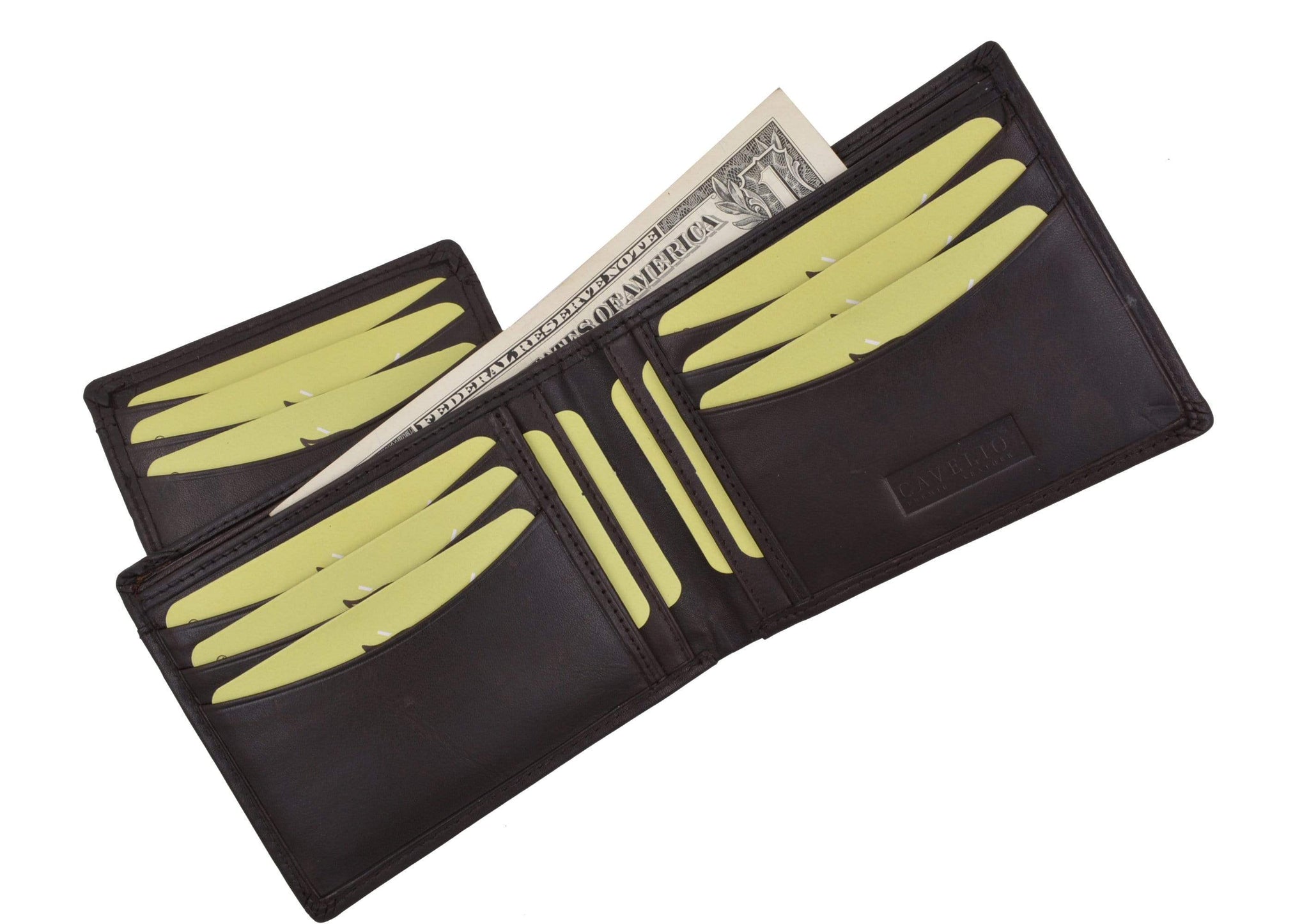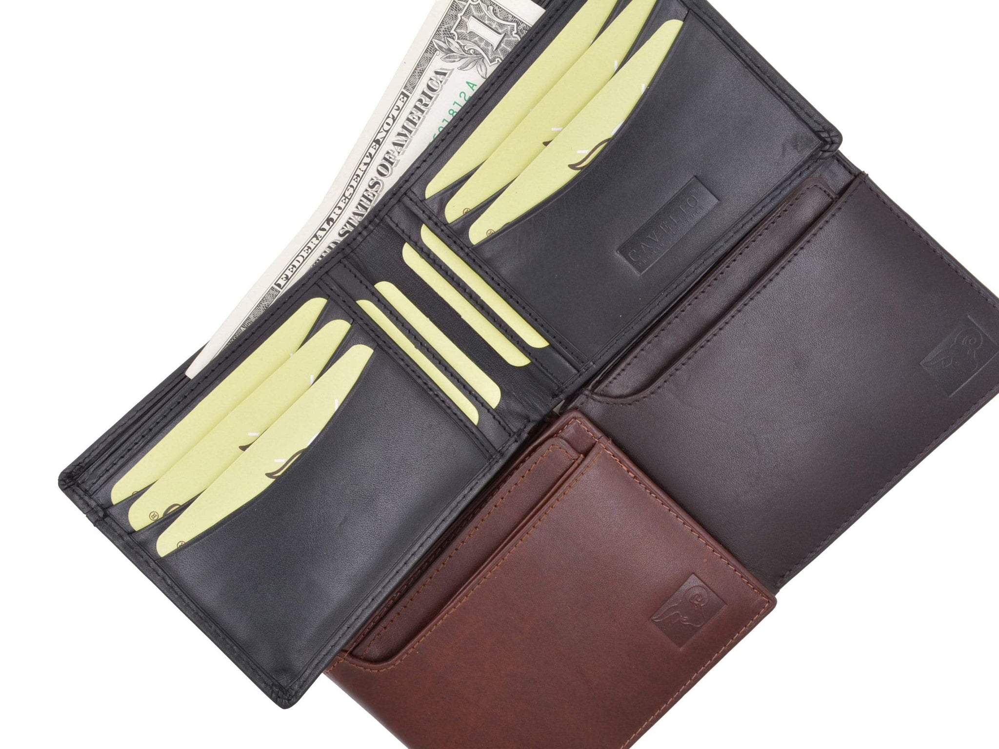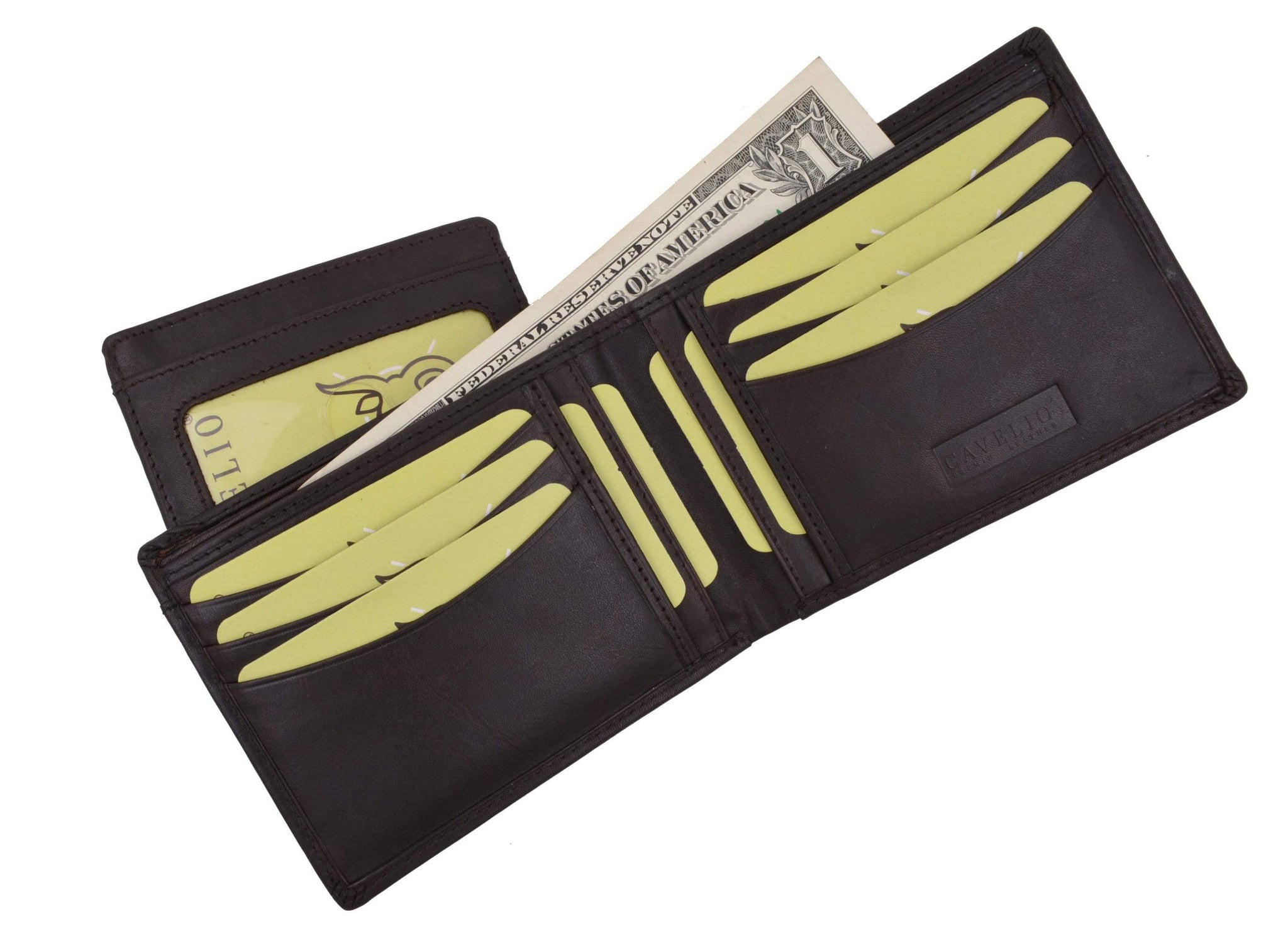 Brand: CavelioDetails: Genuine Leather Mens Bifold Wallet 11 Credit Card Slots 3 ID Windows 2...