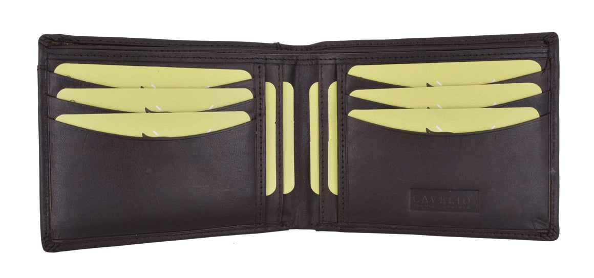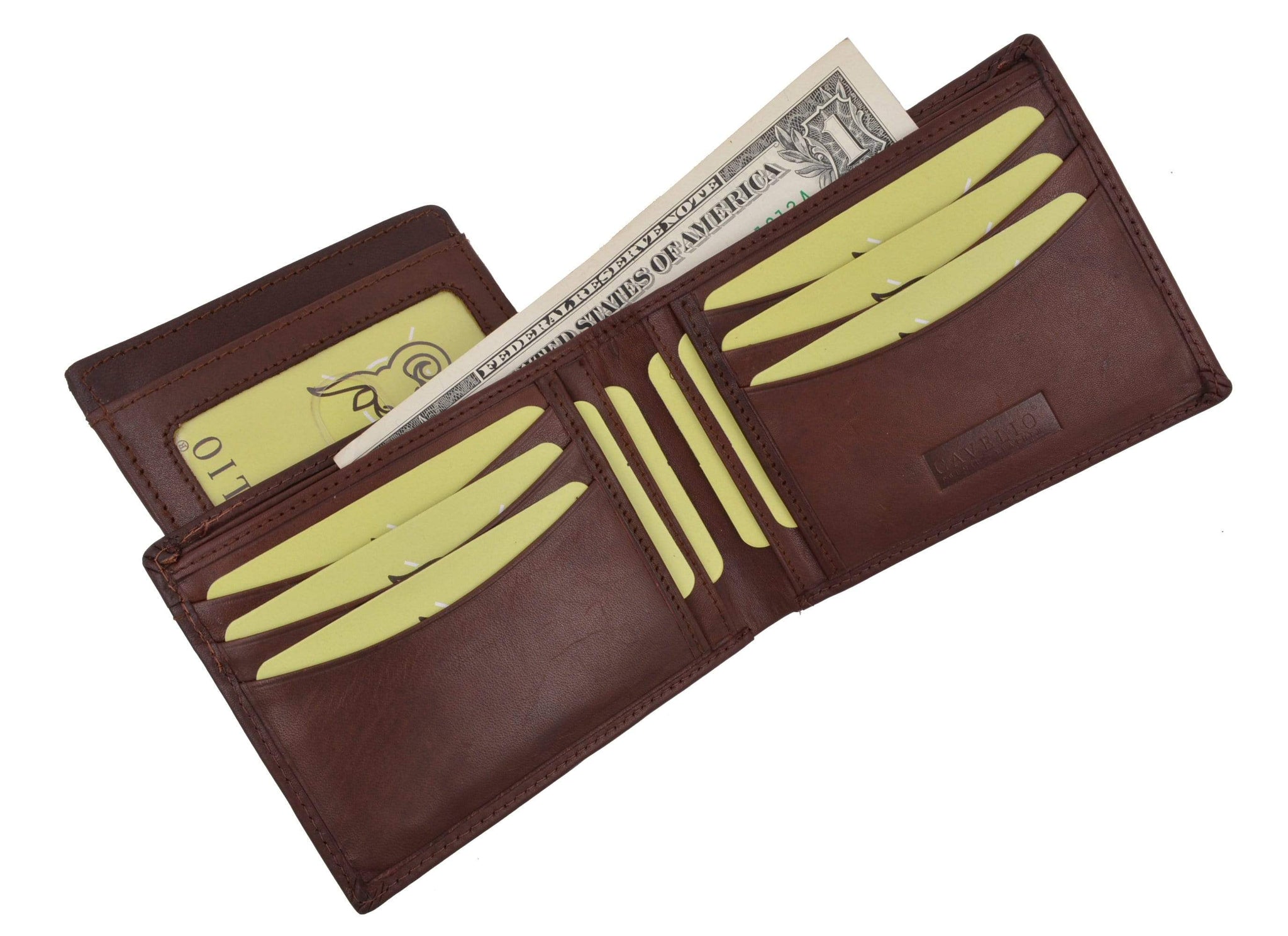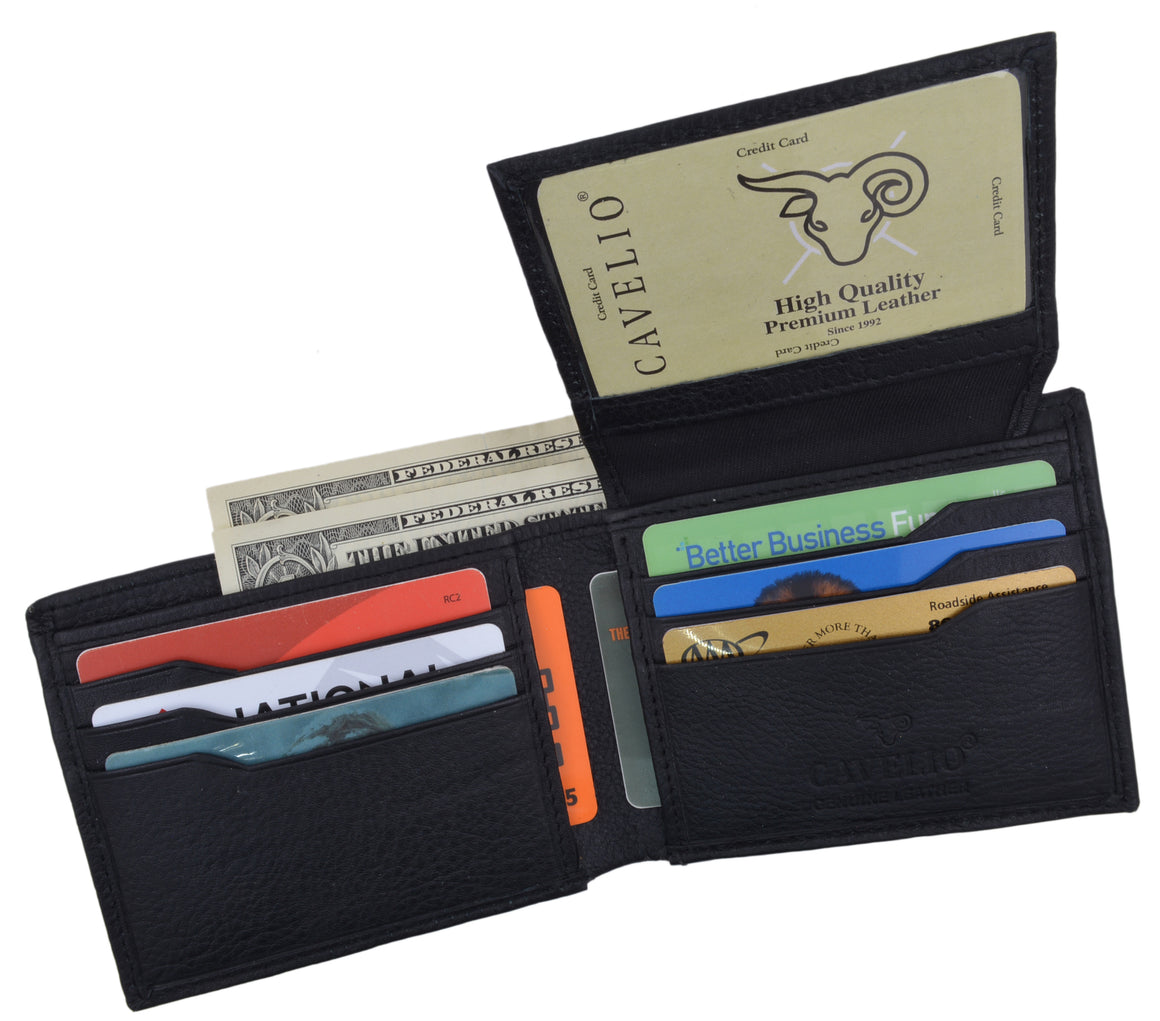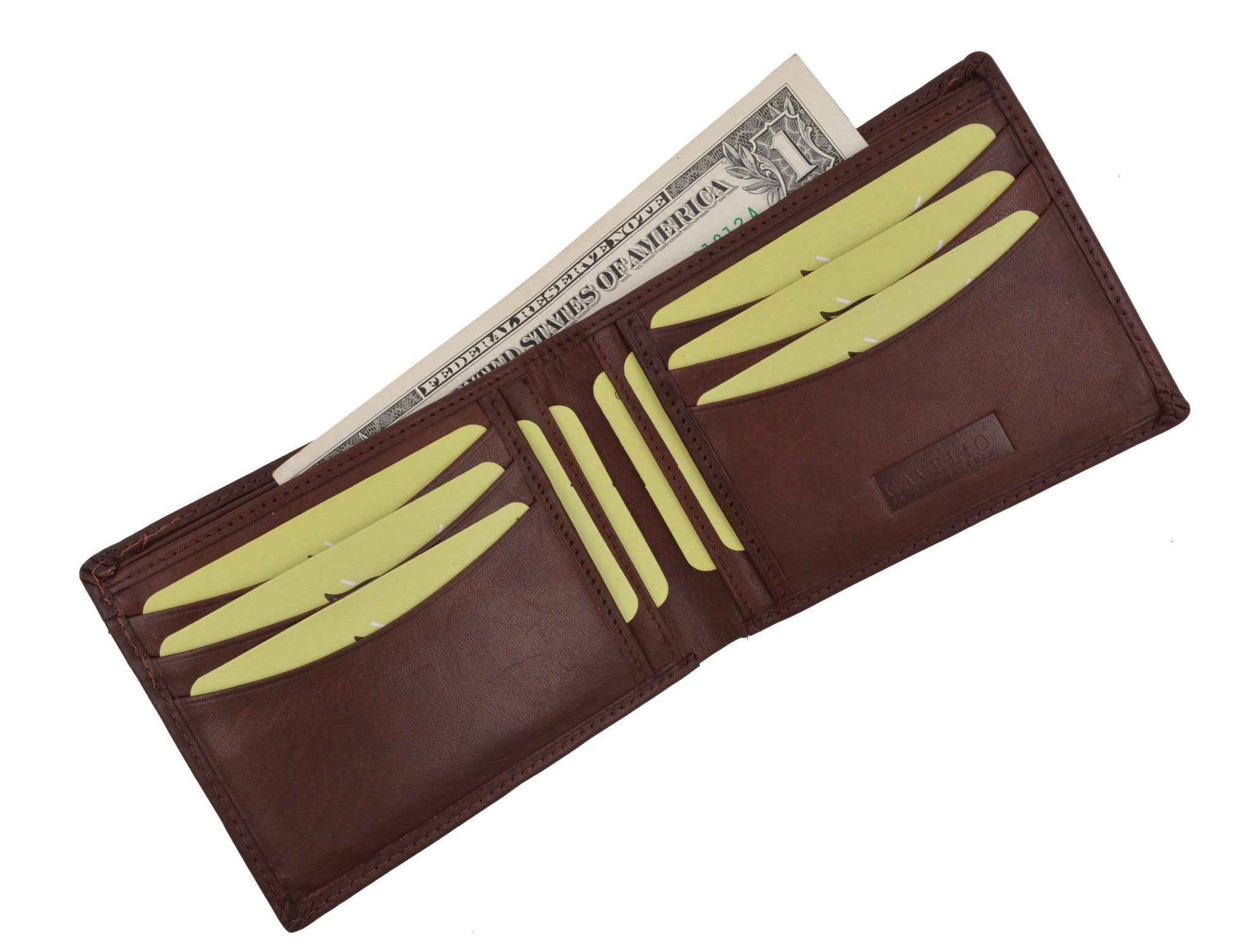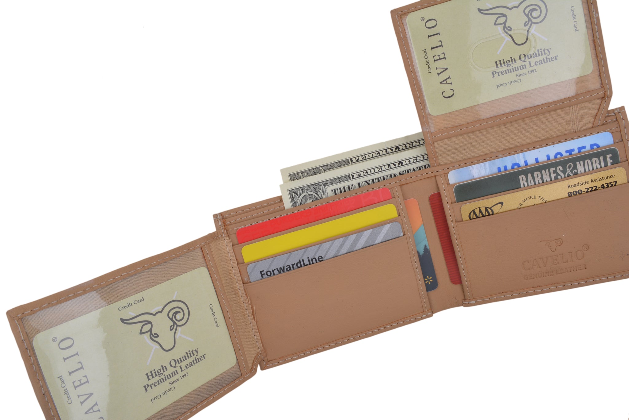 Brand: CavelioDetails: Genuine Leather Mens Bifold Wallet 11 Credit Card Slots 3 ID Windows 2...