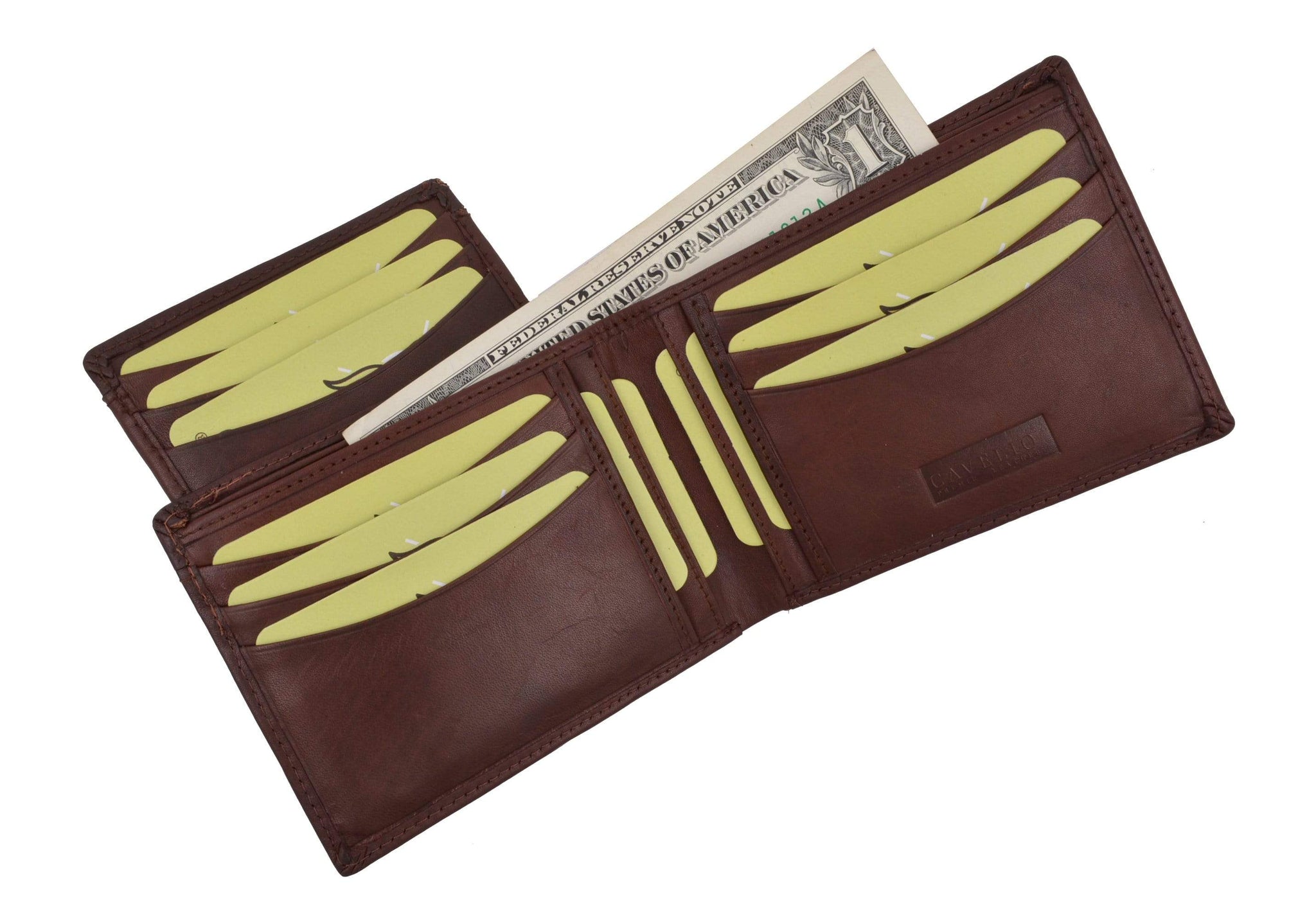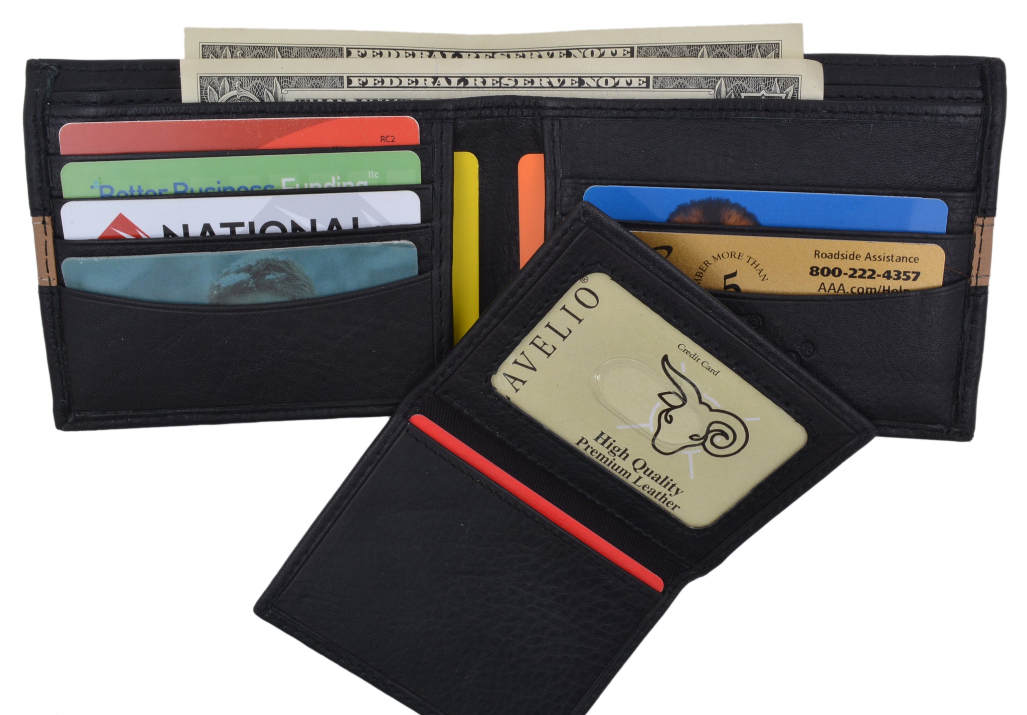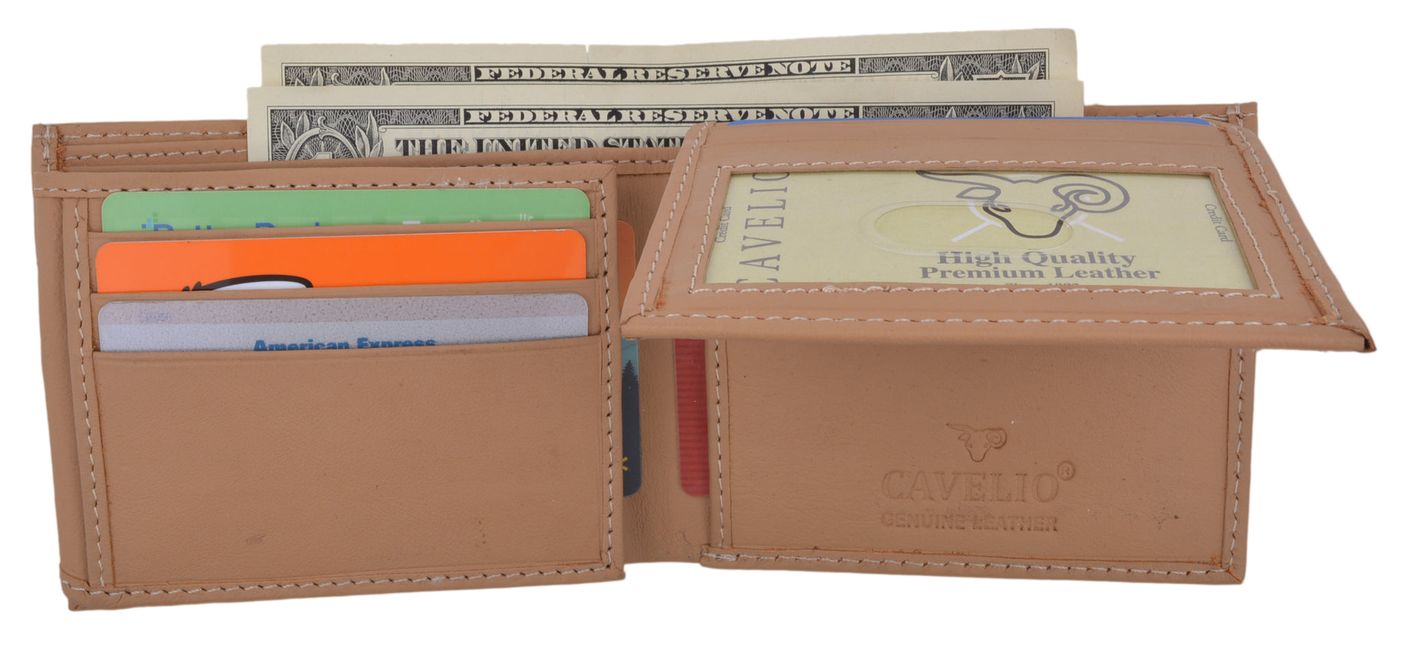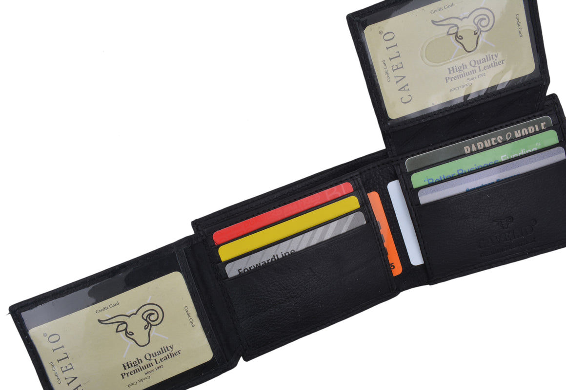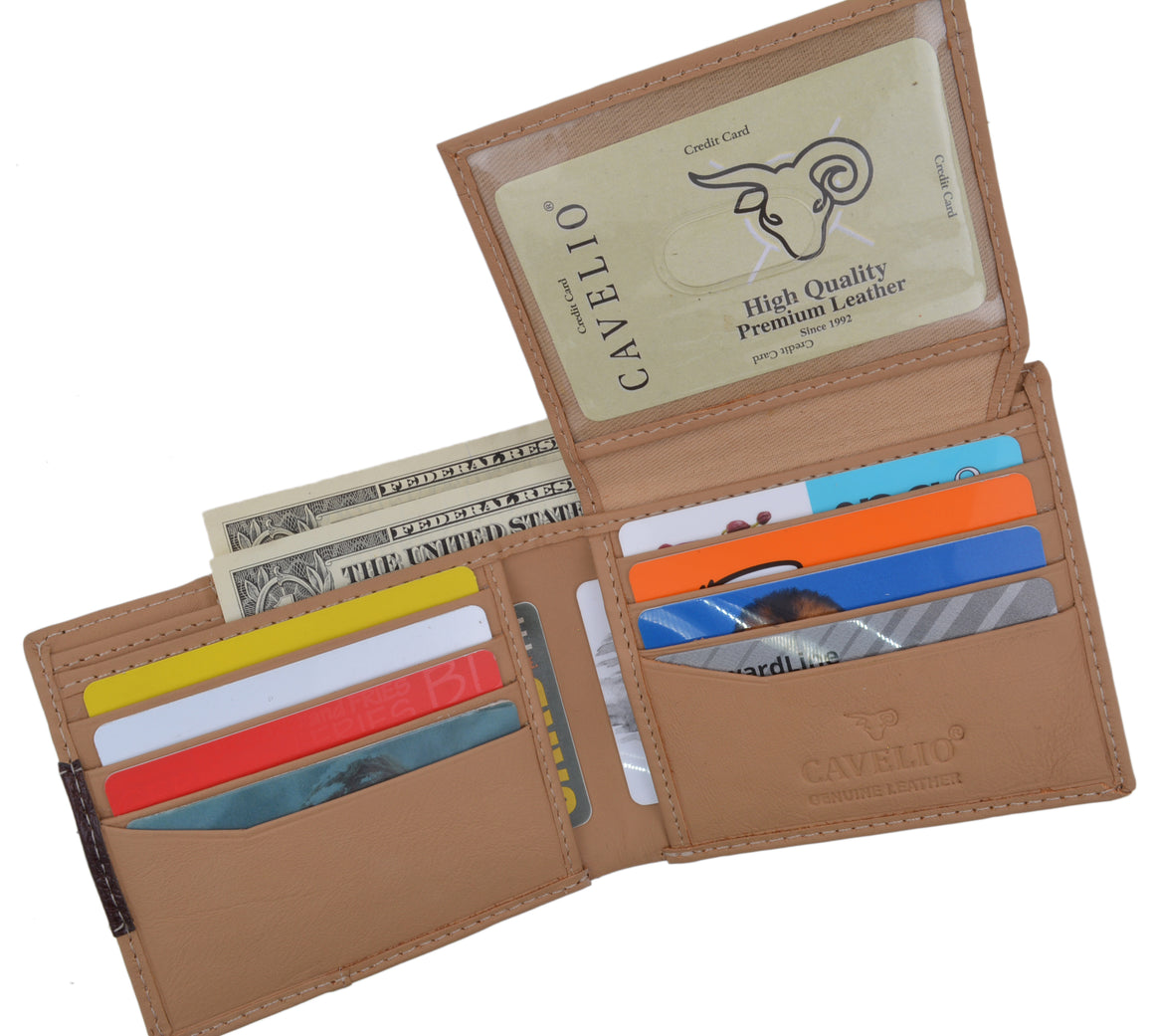 Brand: CavelioDetails: Genuine Leather Mens Bifold Wallet 11 Credit Card Slots 3 ID Windows 2...