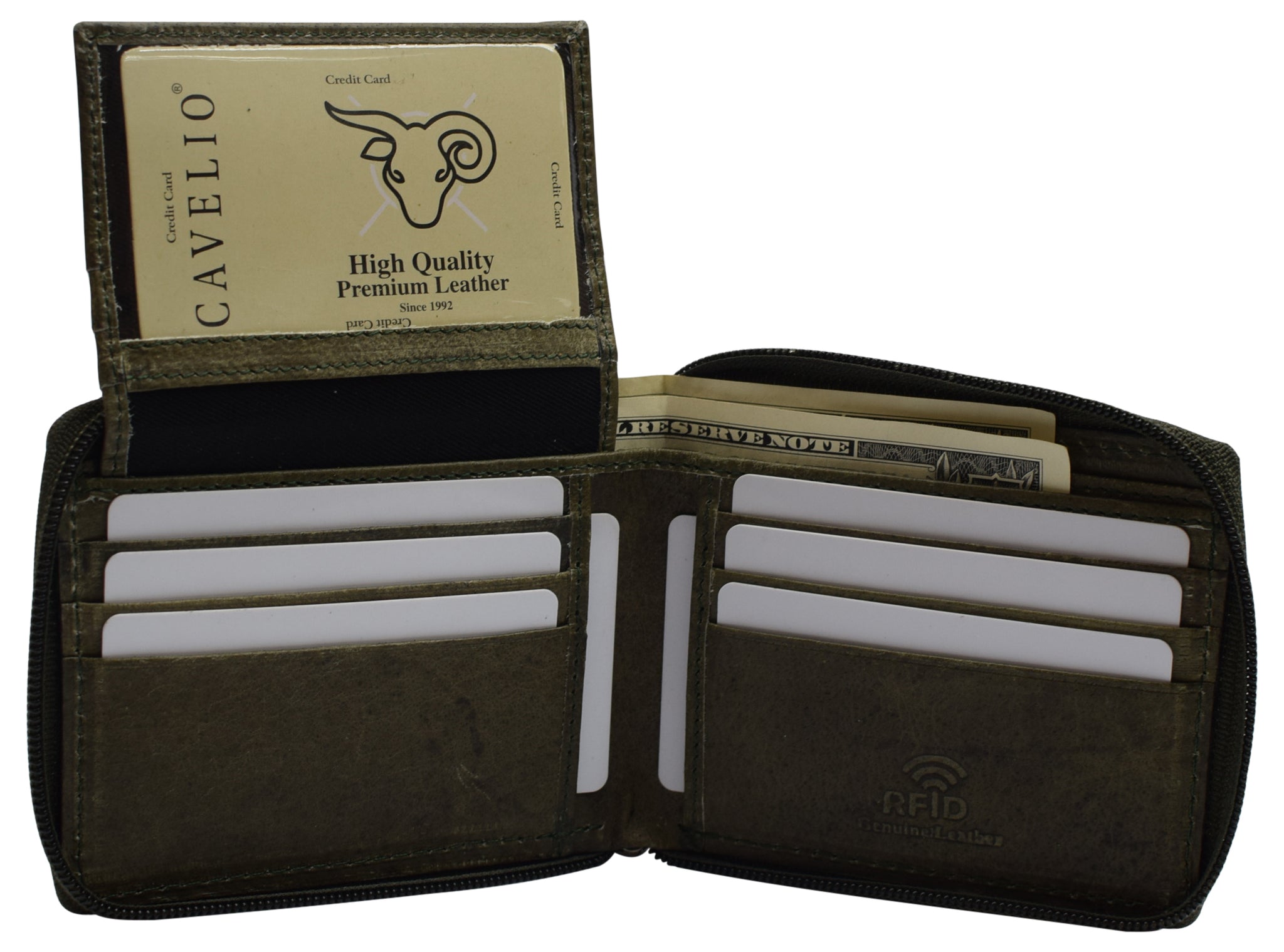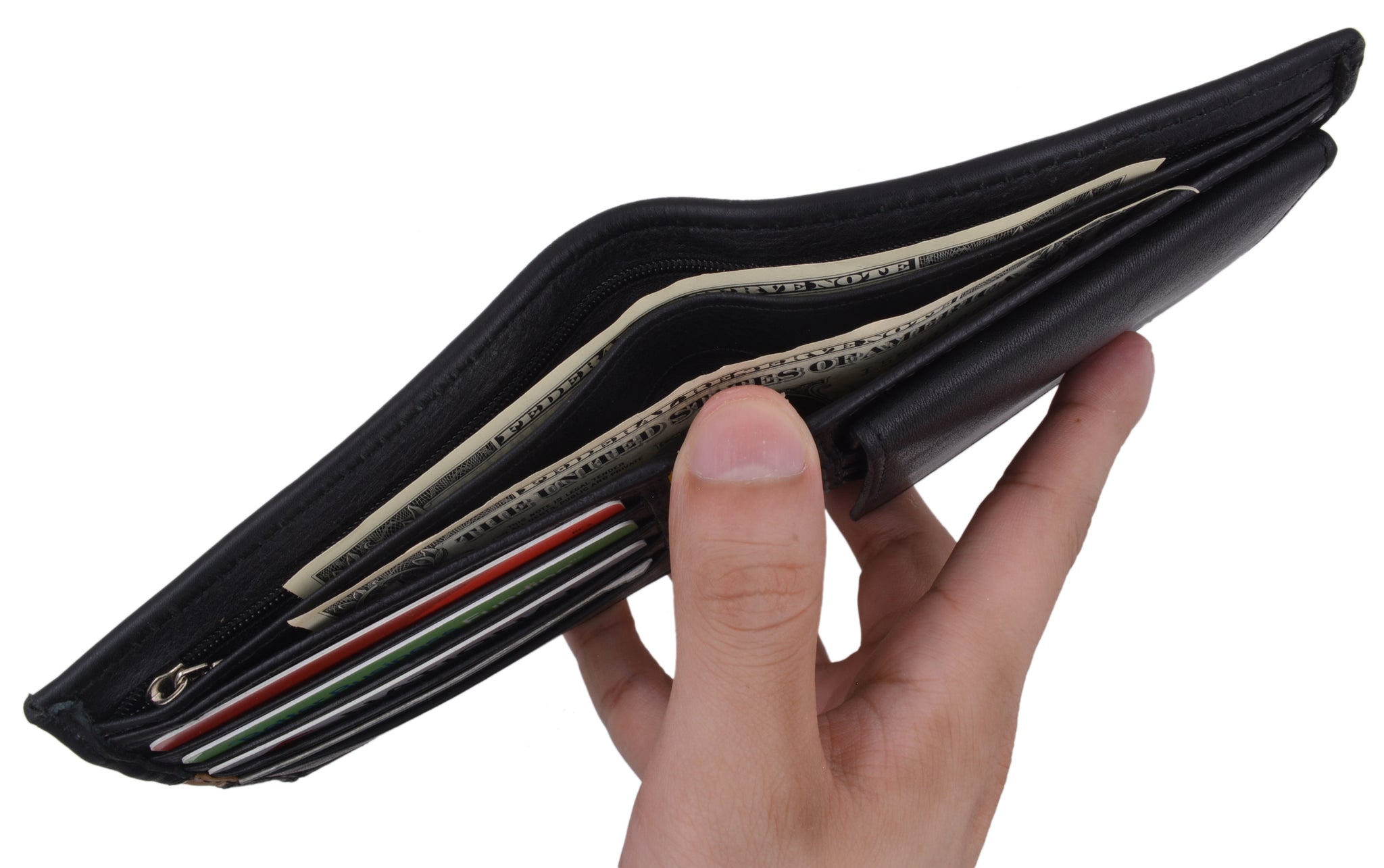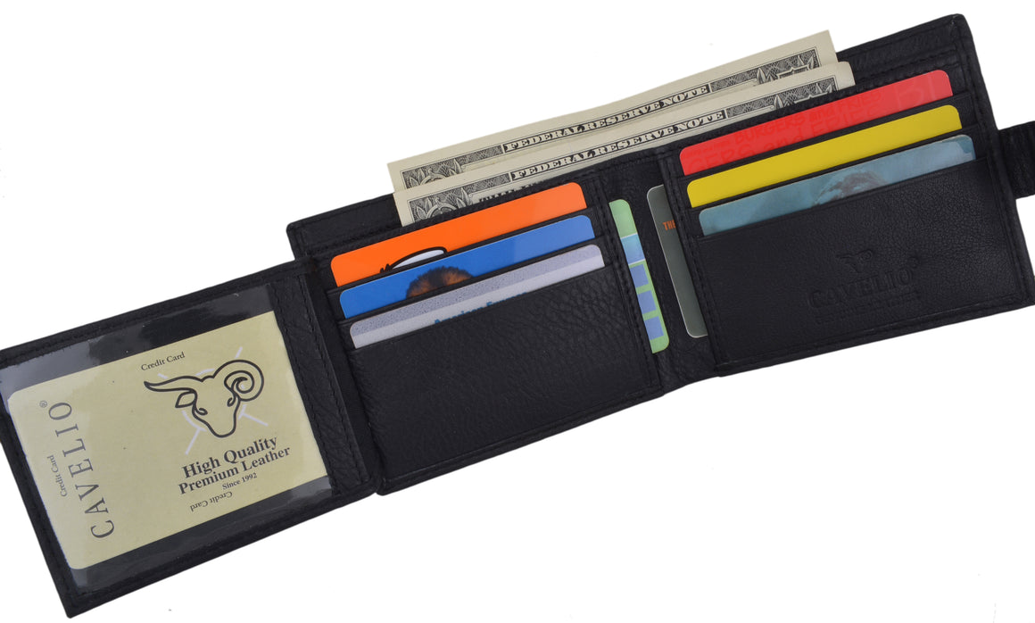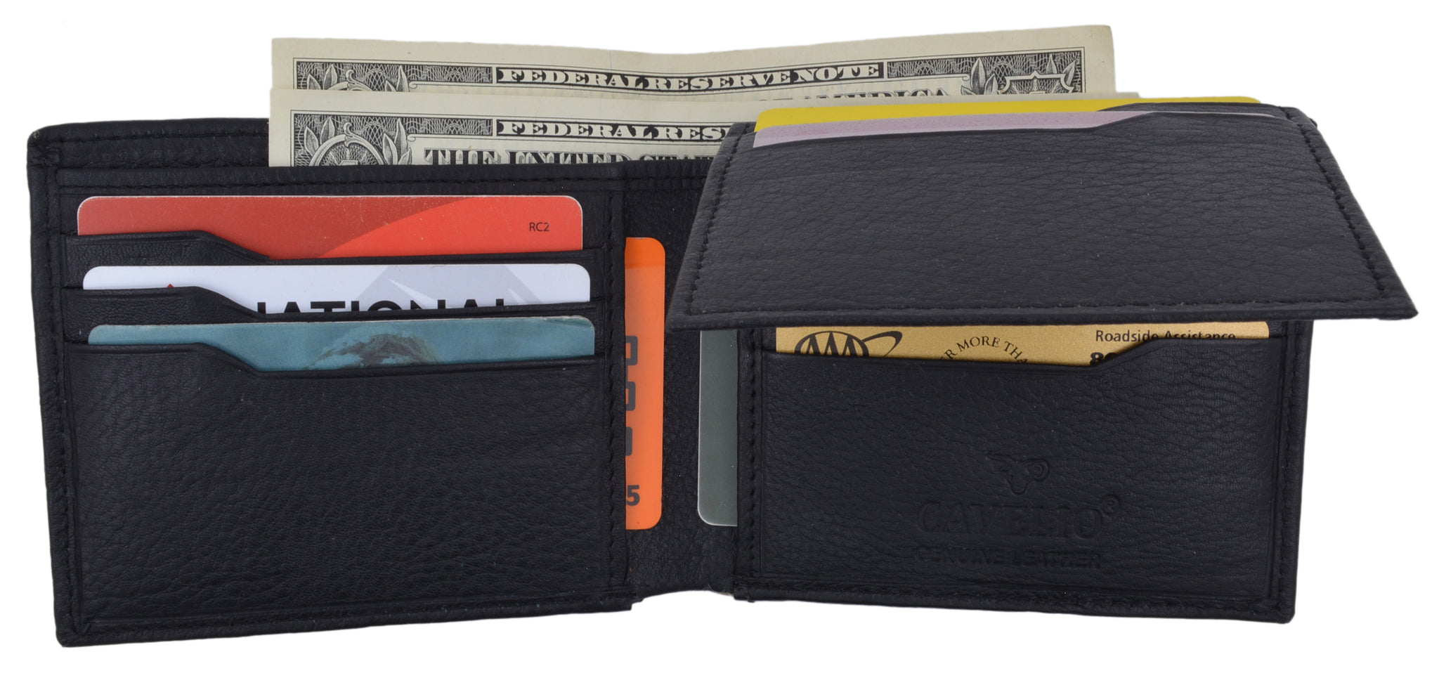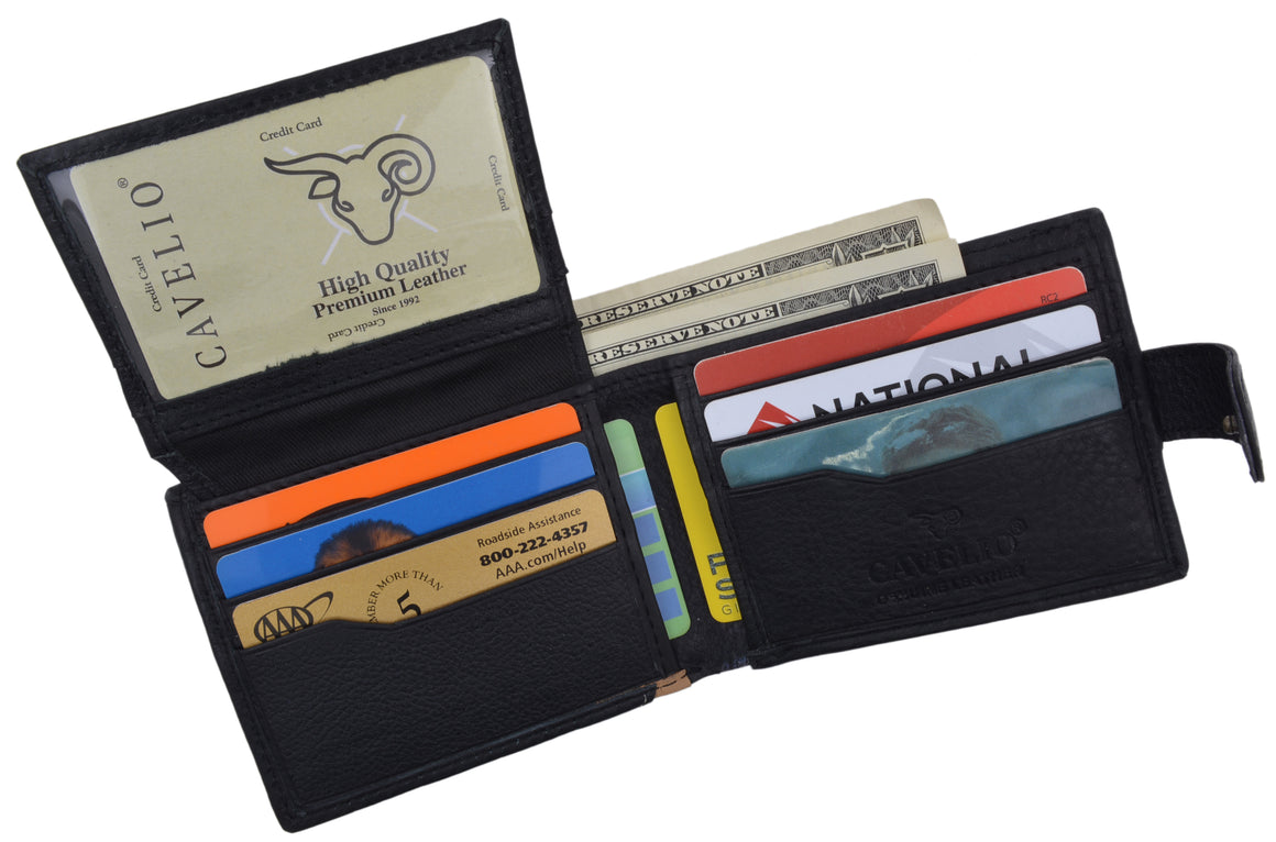 Brand: CavelioDetails: Genuine Leather Mens Bifold Wallet 11 Credit Card Slots 3 ID Windows 2...