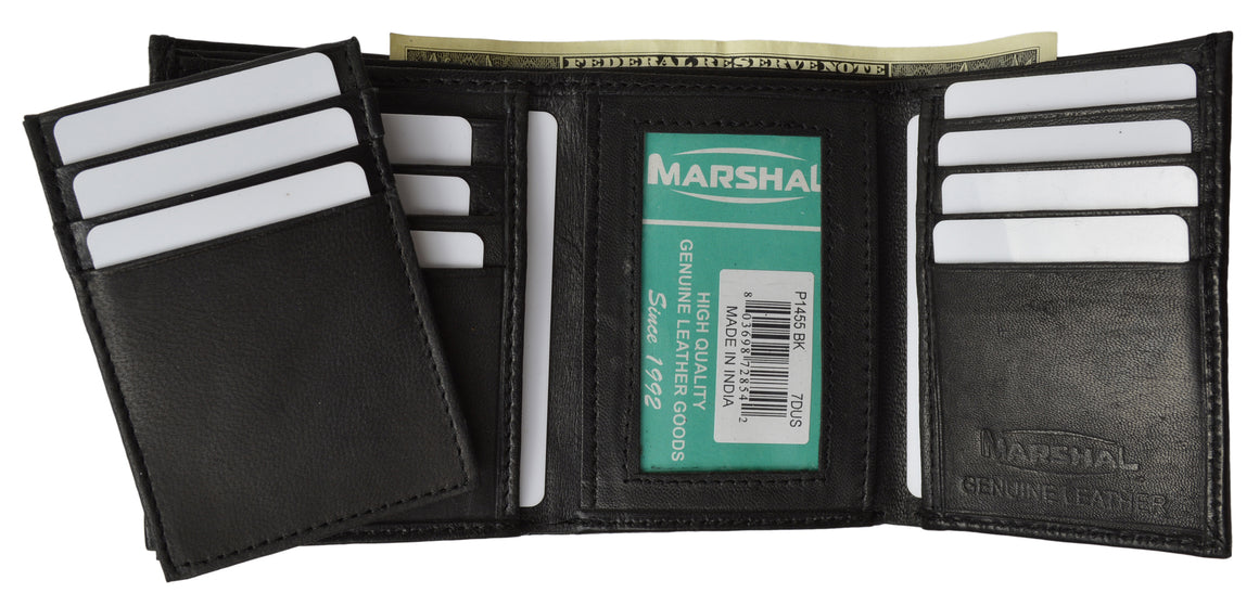 Brand: Marshal Details: Material: Premium Genuine Leather Size: Approx. 4.1/8" x 3.1/4", when closed. Color: Black Card...
