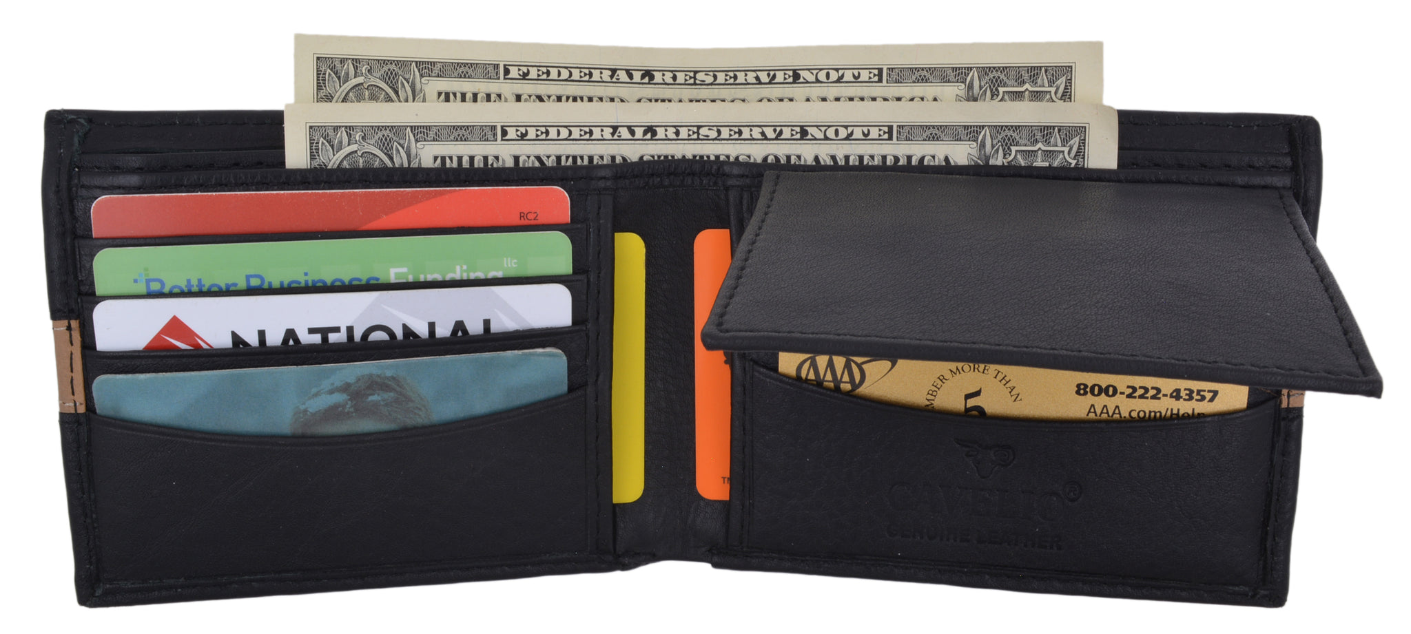 Brand: CavelioDetails: Men's Bifold Leather Wallet 11 Credit Card Slots, 1 ID Window 2 Bill...