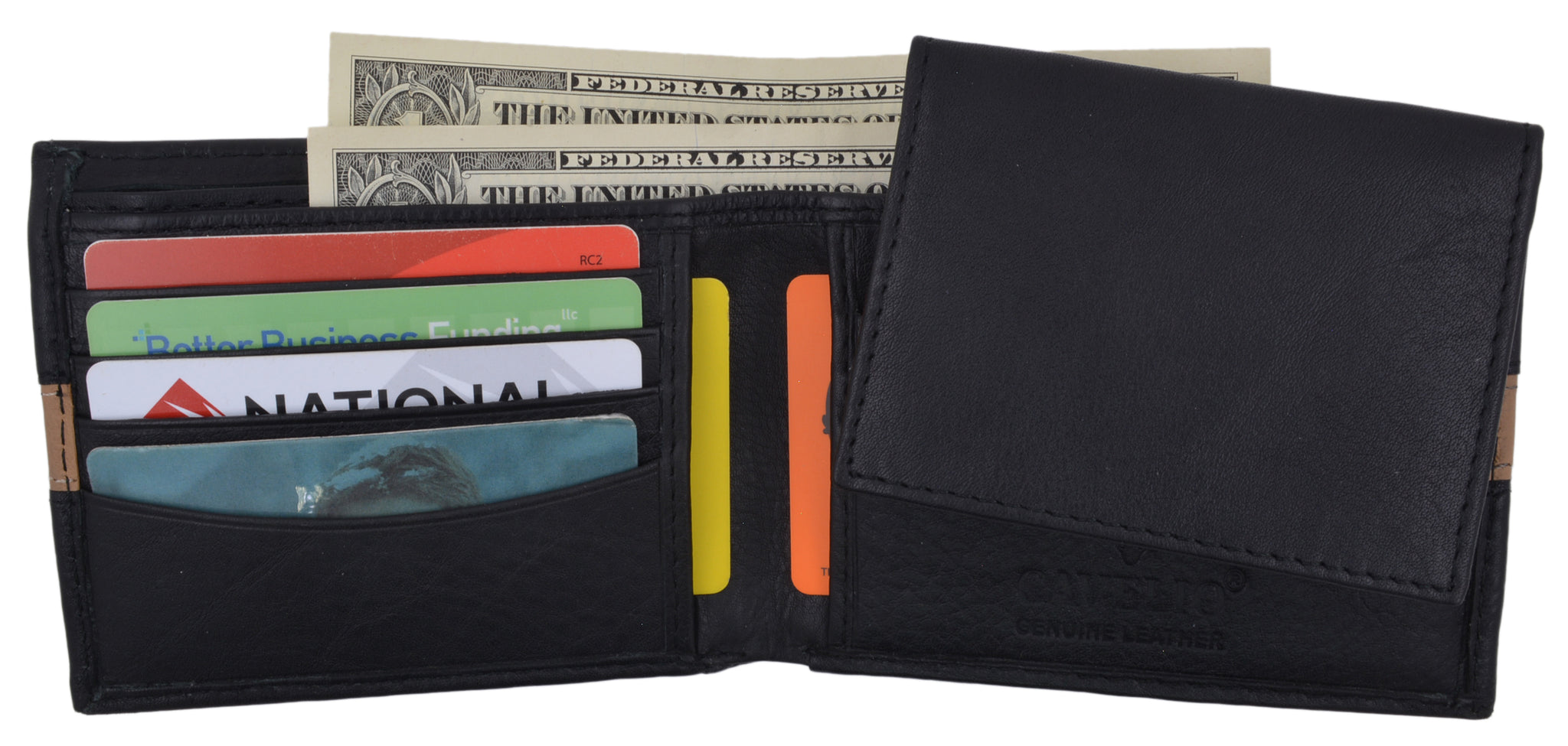 Brand: CavelioDetails: Men's Bifold Genuine Leather Wallet 8 Credit Card Slots Removable ID Card Holder...