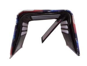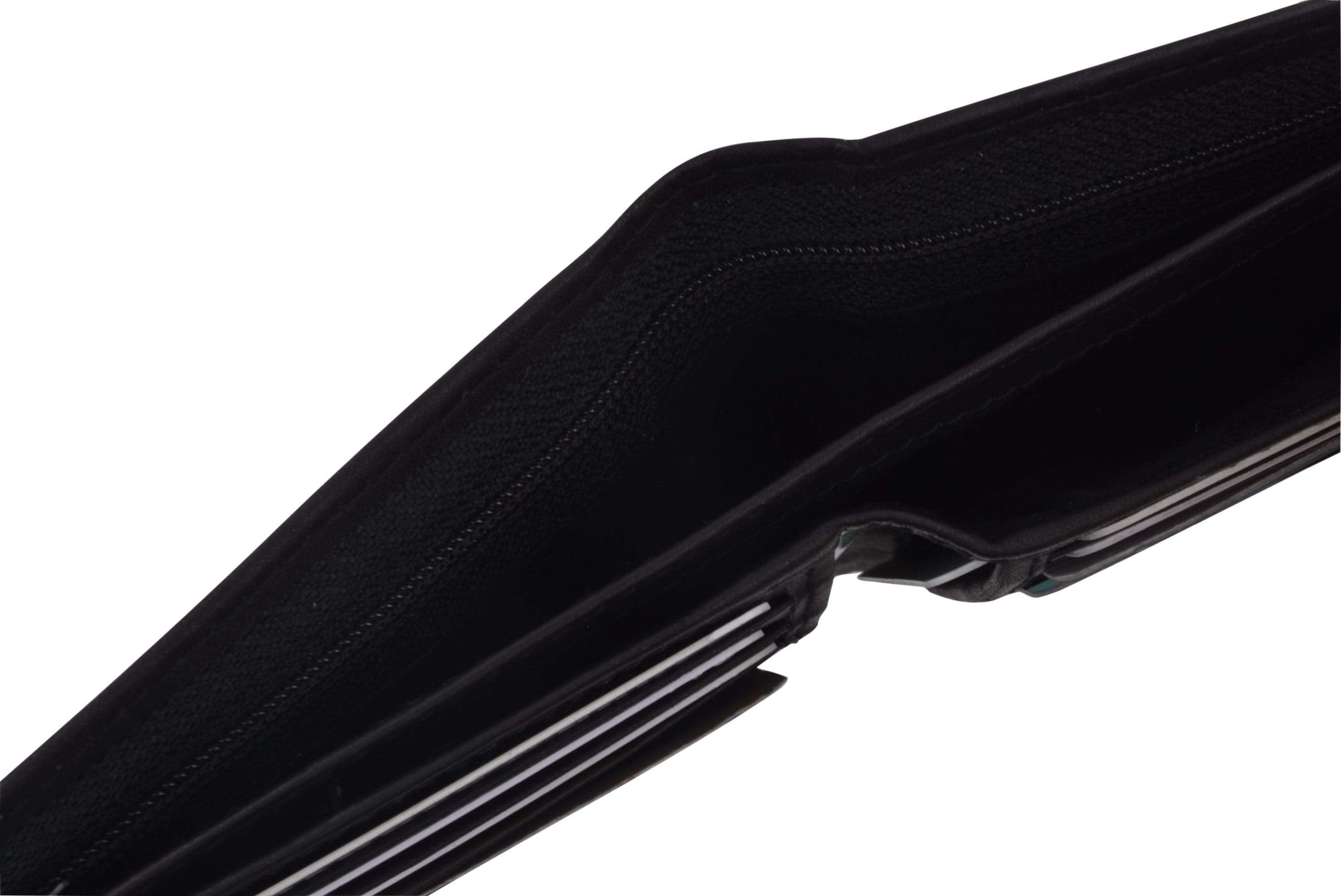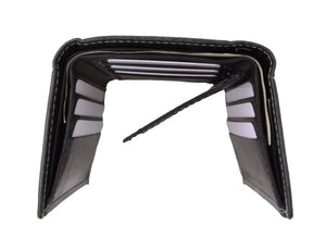 Material: Genuine Leather Bi-foldCredit Card Slots: 8+Currency Pocket: Divider; Hideaway zippered pocketOther features: Slots on...