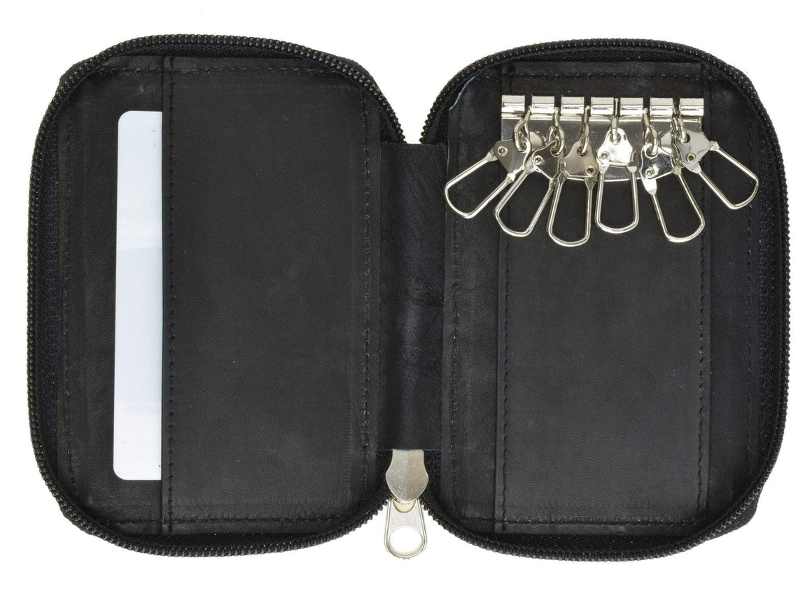 Material: Genuine Leather8 spots for key attachmentCredit Card SlotSize: 4.5" X 3.25" (folded) approxOther features: Zippered...