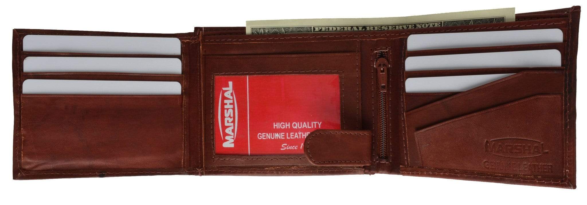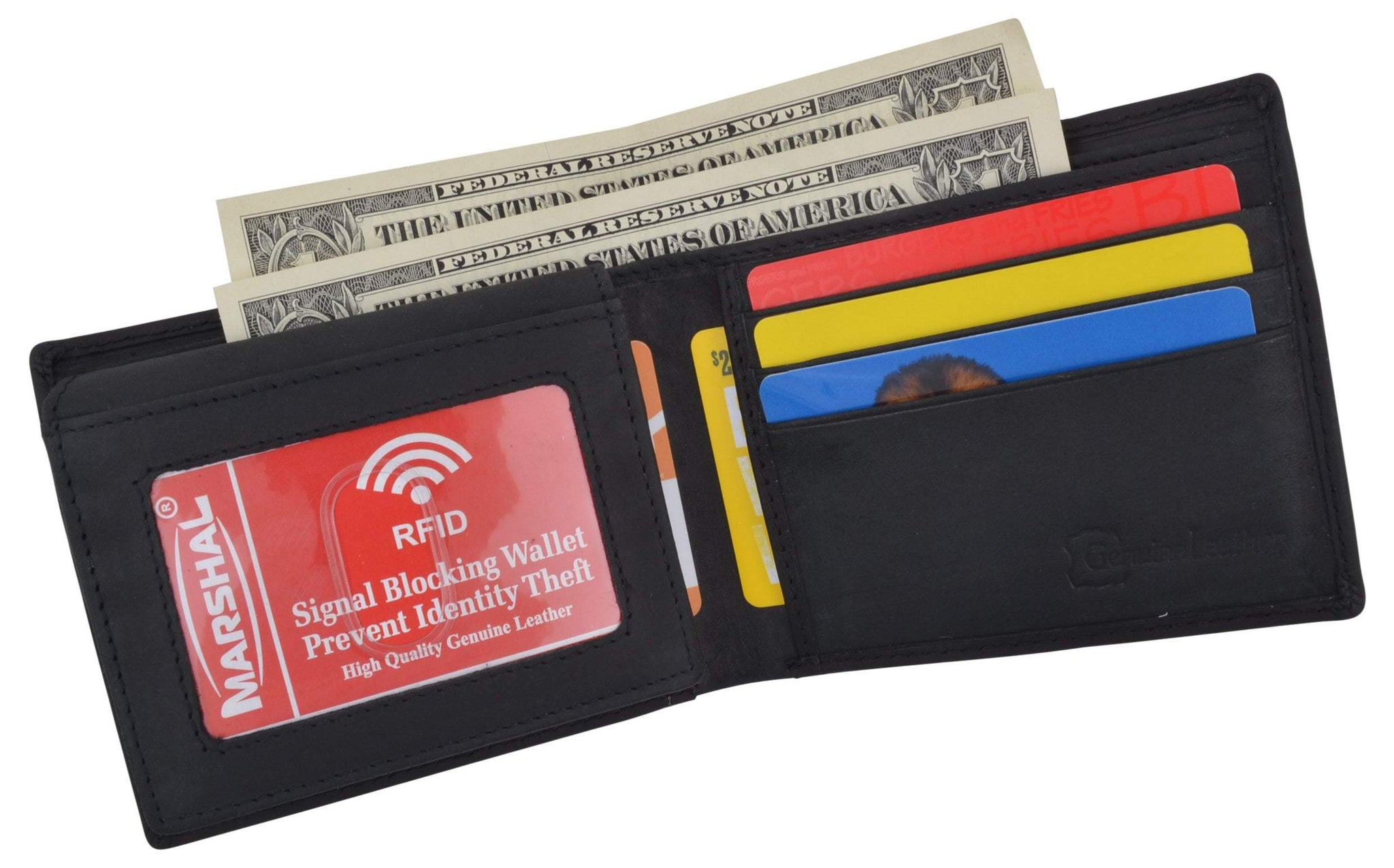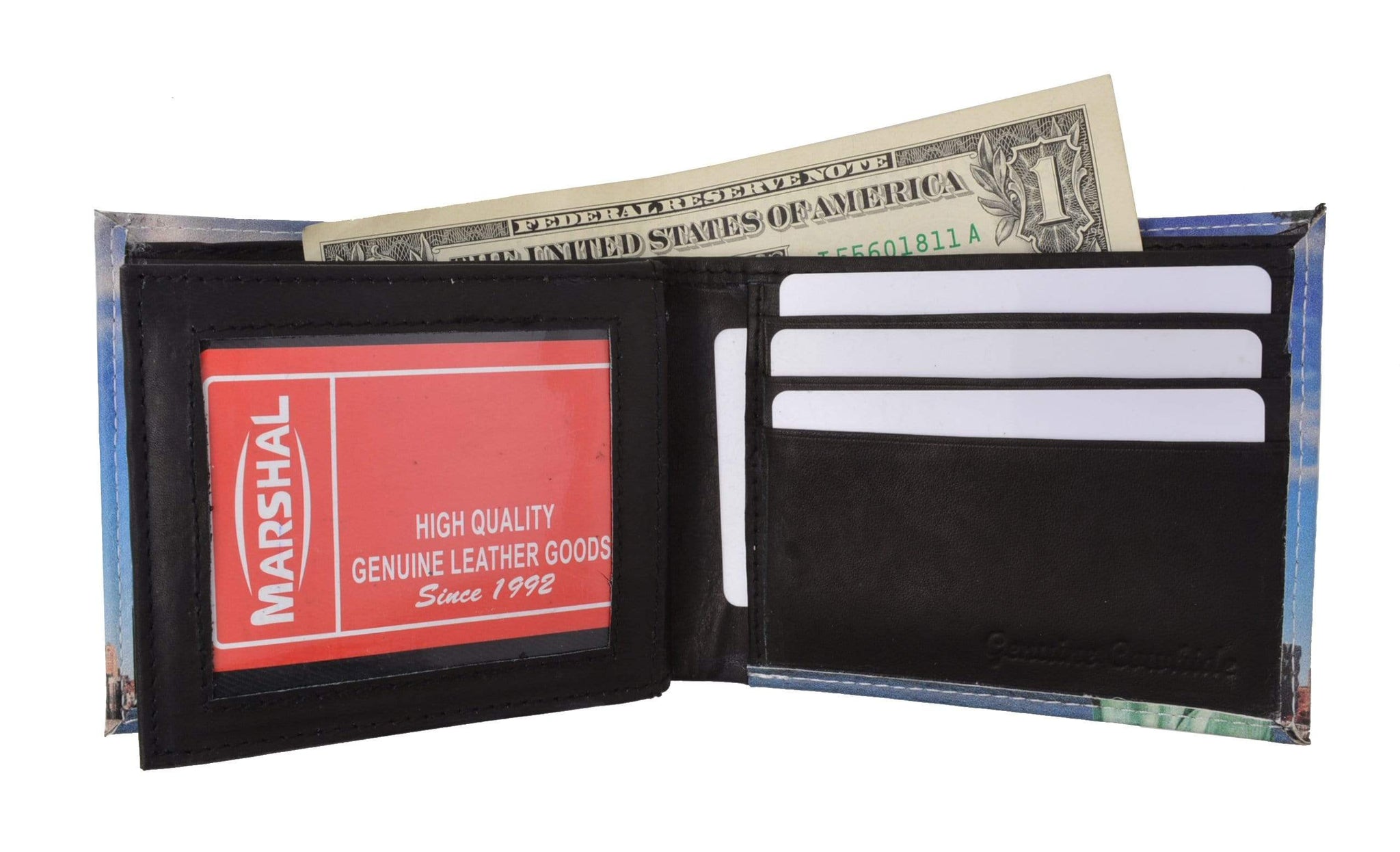 Brand: Marshal Details: Genuine Cowhide Leather Bifold Wallet 5 Credit Card Slots, ID Window, Coin...