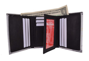 Material: Genuine Leather Tri-foldCredit Card Slots: 6+I.D. Window: Yes (Internal)Currency Pocket: DividerOther features: Hidden credit...