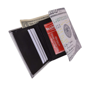 Brand: MarshalDetails: Material: Genuine LeatherSize: Approx. 6.1" X 3.6", when closed.Color: BlackCard Slots: 3 Card slotsMoney...