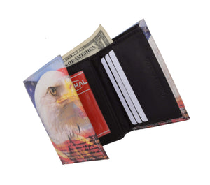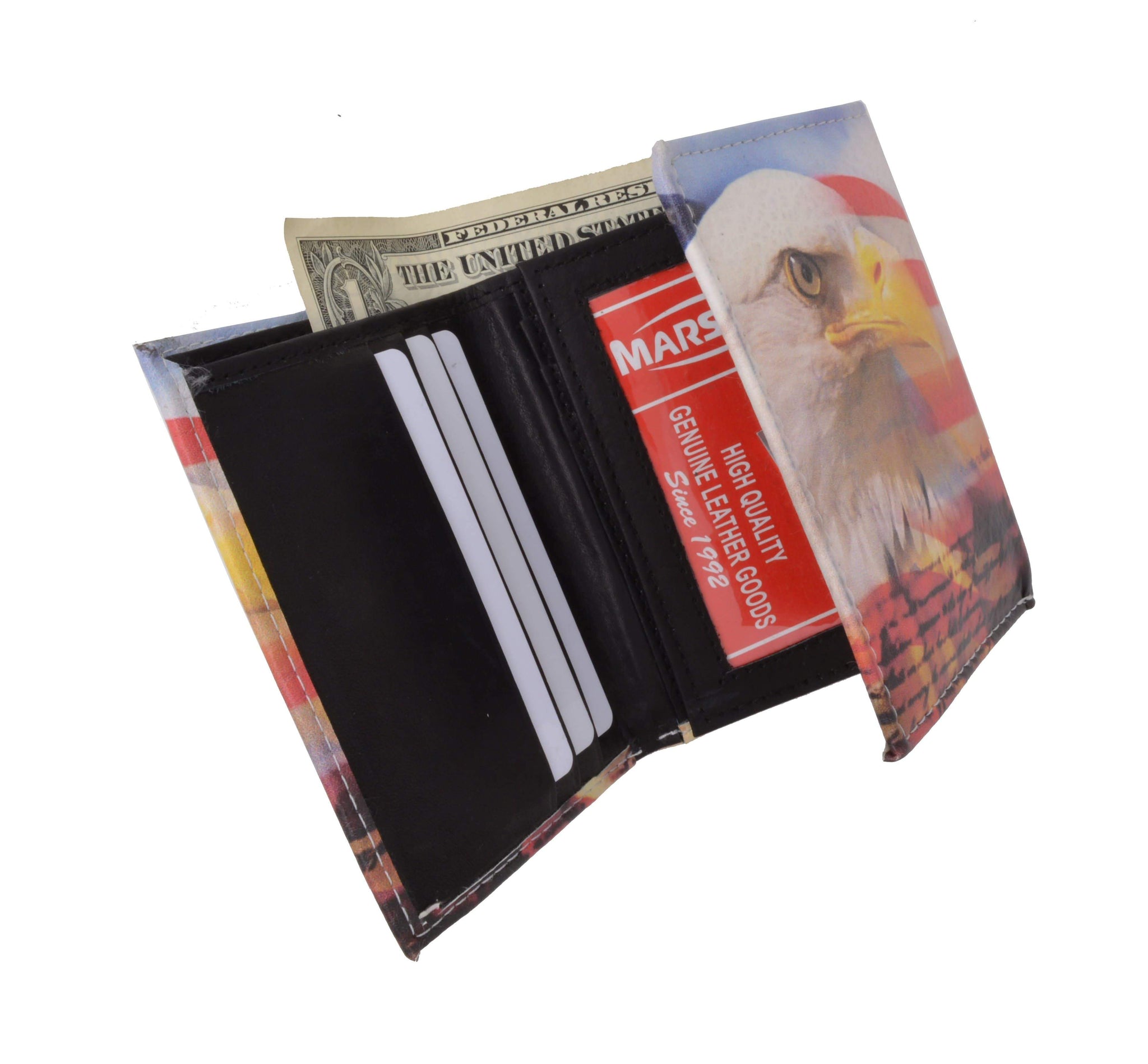 Material: Genuine Leather Tri-foldCredit Card Slots: 8+I.D. Window: Yes ( 2 I.D. Windows)Currency Pocket: DividerOther...
