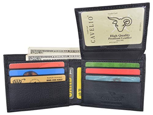 Brand: CavelioDetails: Genuine Leather Mens Bifold Wallet 11 Credit Card Slots 3 ID Windows 2...